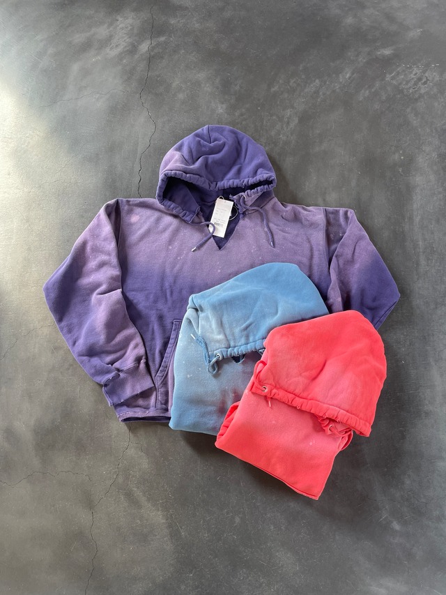 johnbullの新しいデニムラインである、denim delight daysより10oz裏毛のベーシックなスウェットパーカーに製品染め加工し、更に随所にカットオフ加工を施し、ヴィンテージの雰囲気を表現したパーカーのご紹介です。 発色の良い色味で、春先のスタイリングの挿しになるアイテム、重ね着で楽しめるデザインが魅力です。 サイズL ユニセックス cotton100% モデル身長157cm