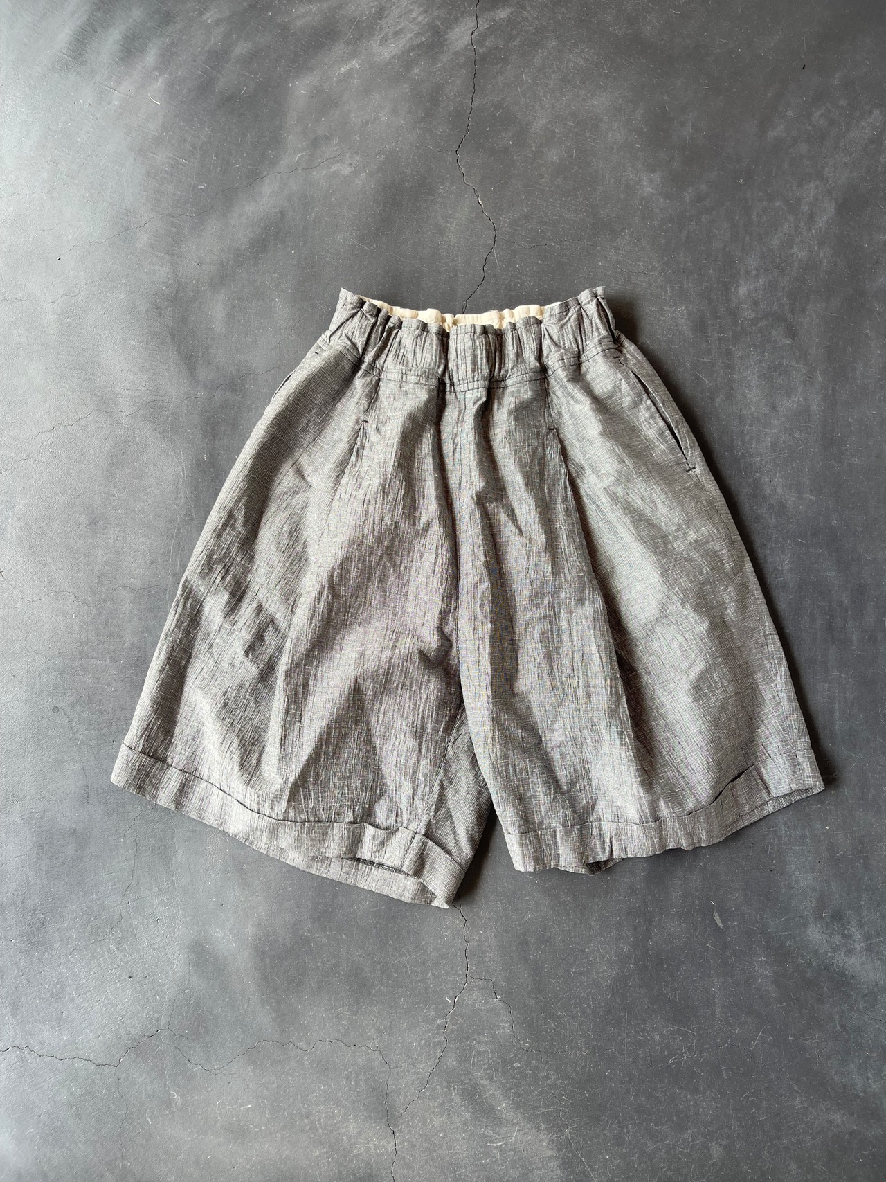 経糸にポリエステルの30dのポリエステル糸 緯糸に異なる糸の先染めの1/60のリネンと80/2の綿糸を2本ずつ交互に配した、
