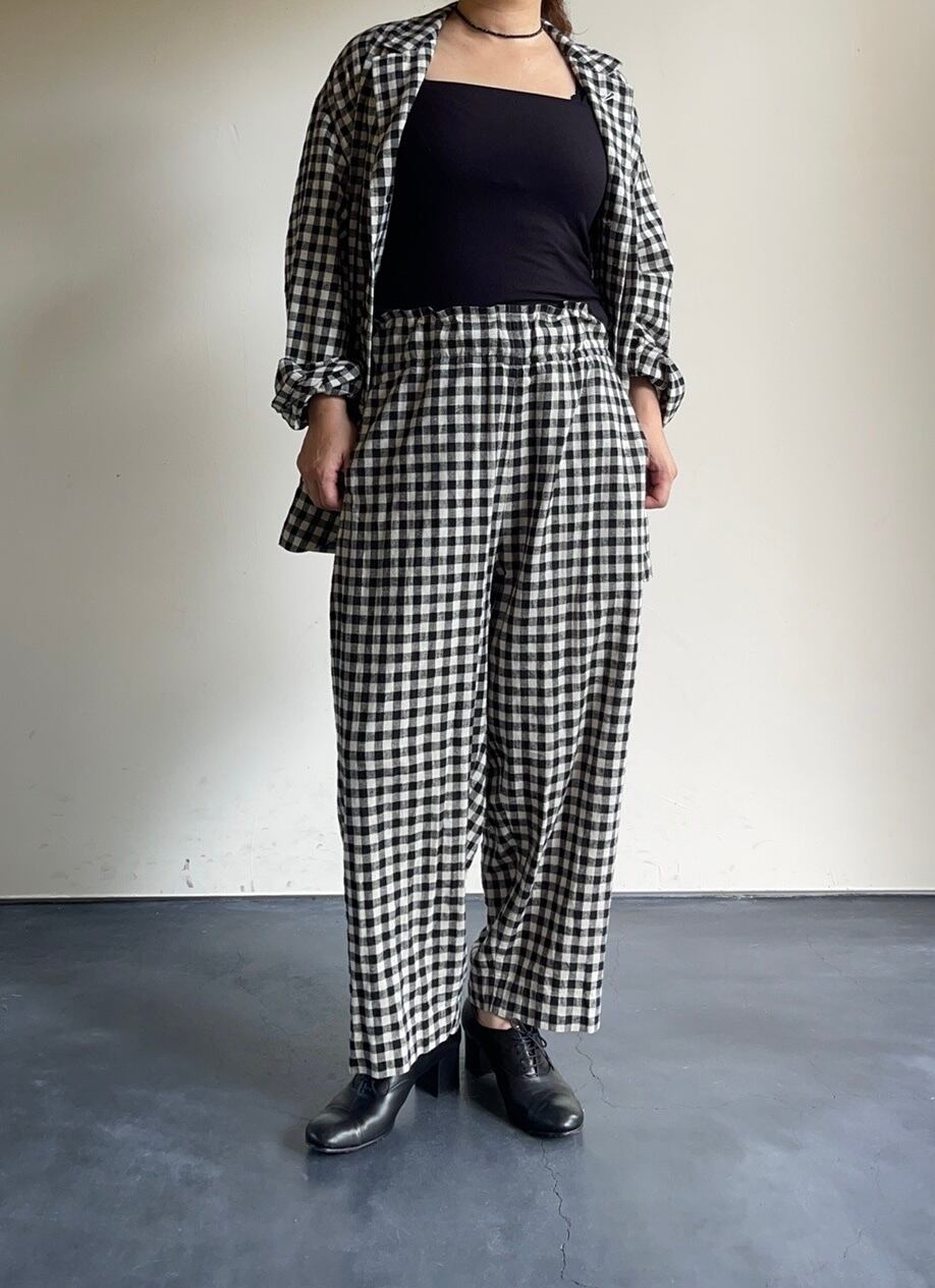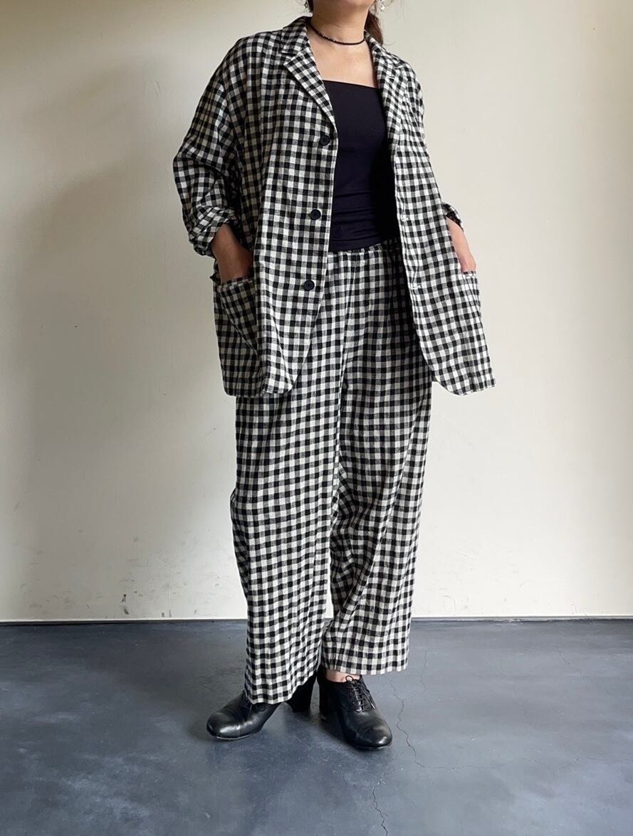 Cotton 86% Linen&Lamie 14%---07 WH×BK block check