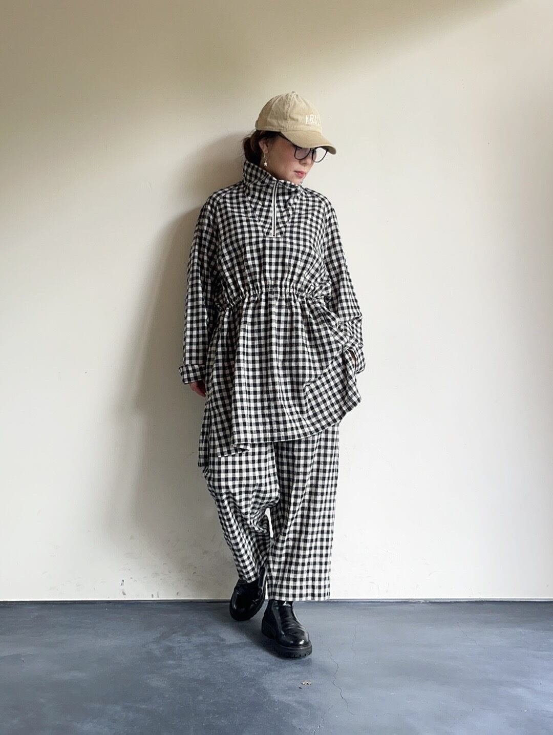 ナチュラルな綿と麻を使っているため織傷に見えるようなフシや飛び込みが見られます。また生産時期や生地のロットによって色が変わります。セットアップでの着用時には色差が気になる場合があることをご了承ください。
