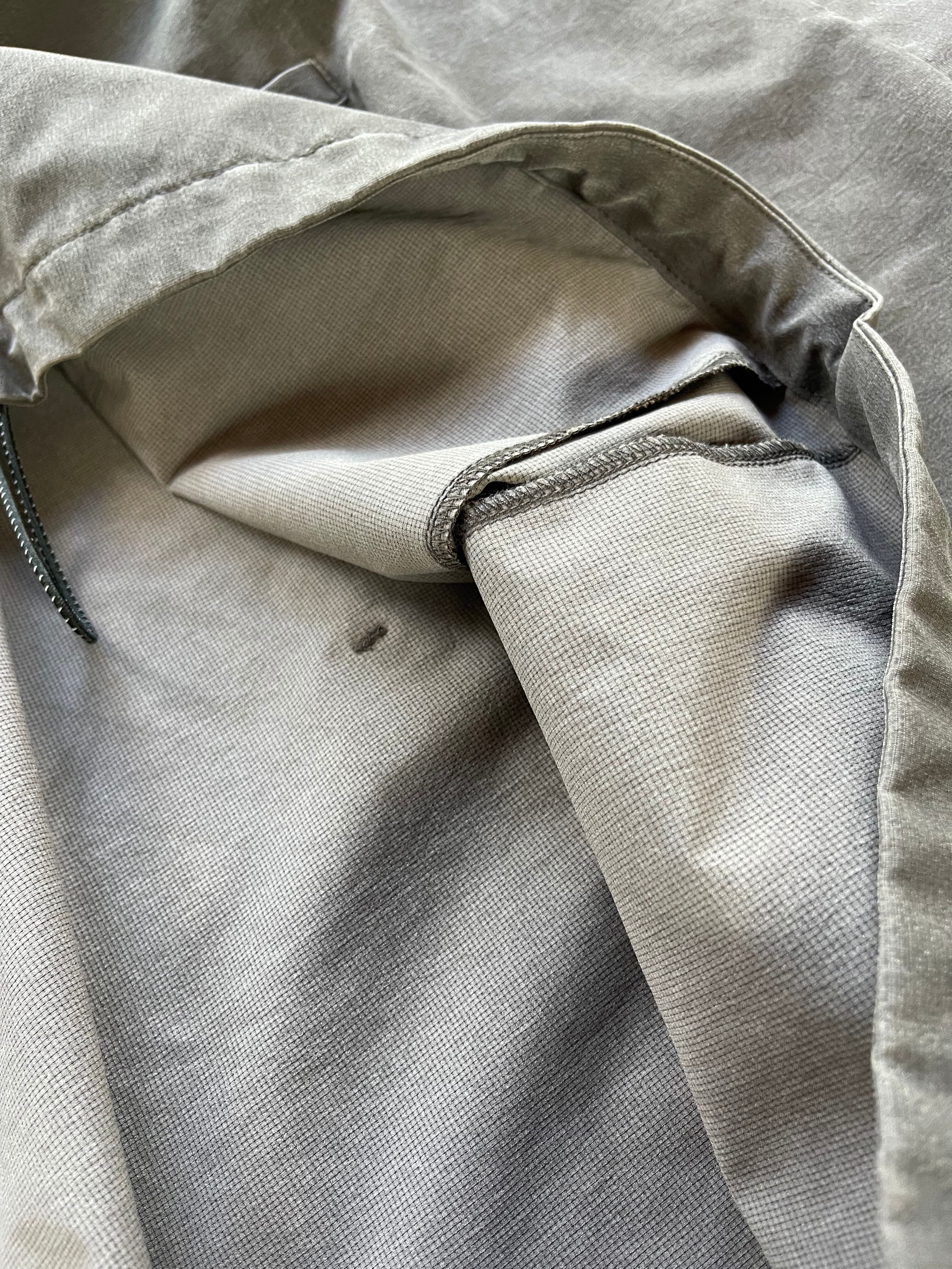 特殊技術により製造された細かい通気孔のある機能素材。通気性が高く衣服内の湿度を快適に保ってくれます。顔料プリントを施し洗をかけることでフェード感を表現しました。洗うごとに経年変化していく新しい機能素材です。
