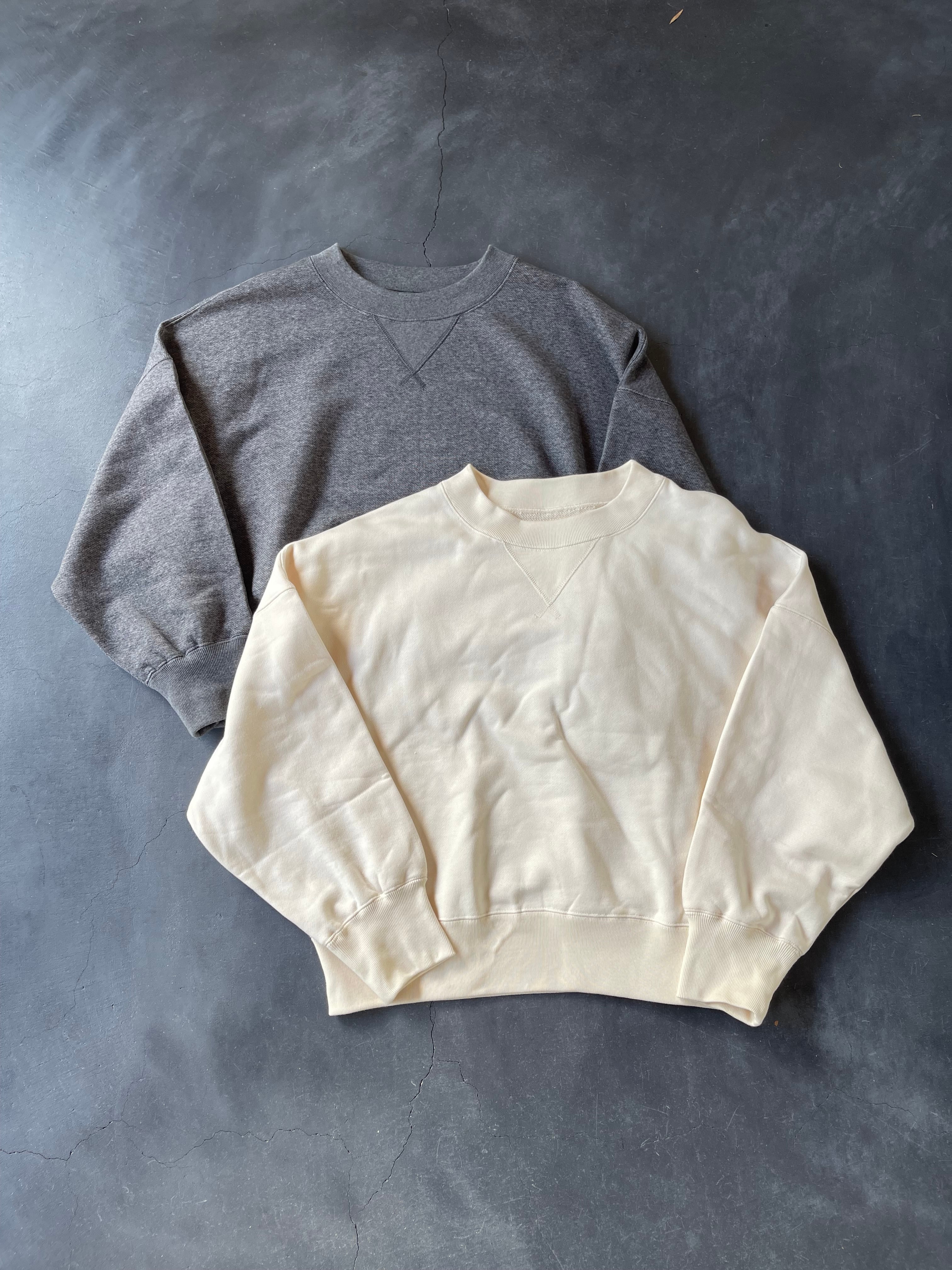 定番的度詰裏毛素材は、丁寧にガス焼工程(糸や織物の表面の毛羽をガスバーナーの炎で焼き取る加工)を繰り返すことで