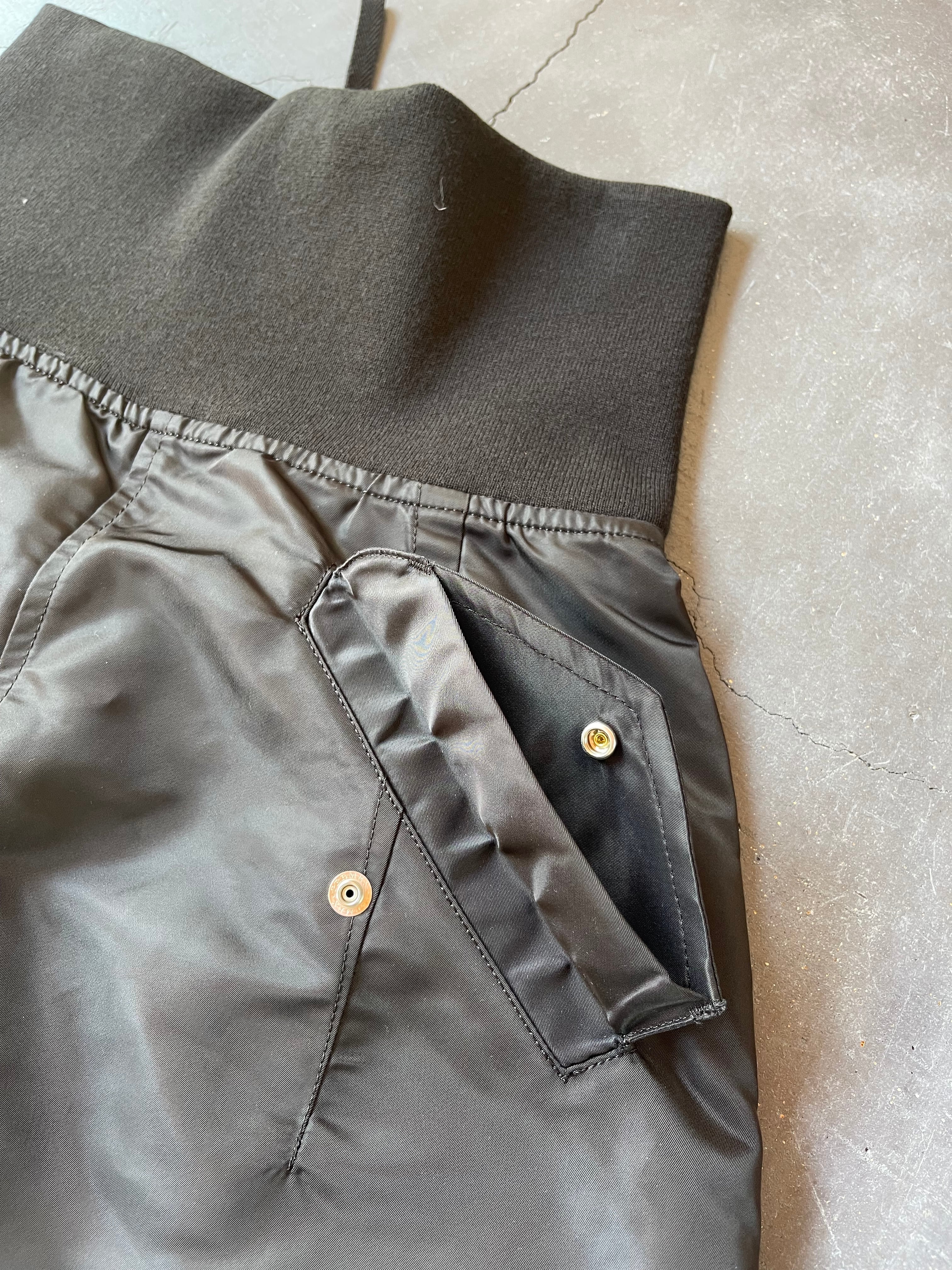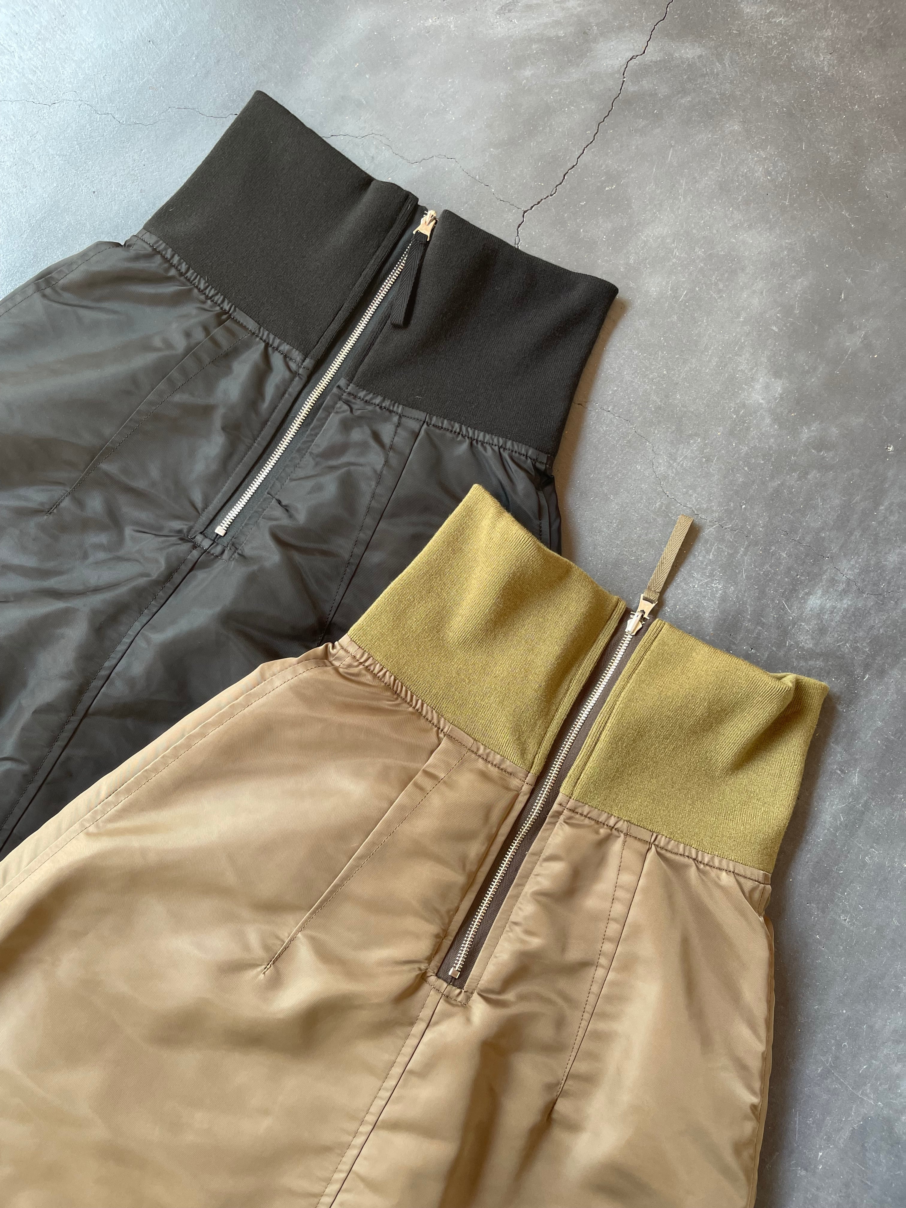 ウエストを高めにしたリブは、MA-1のディテールから着想。ひと折りして着用することで、コーディネートのアクセントにもなります。