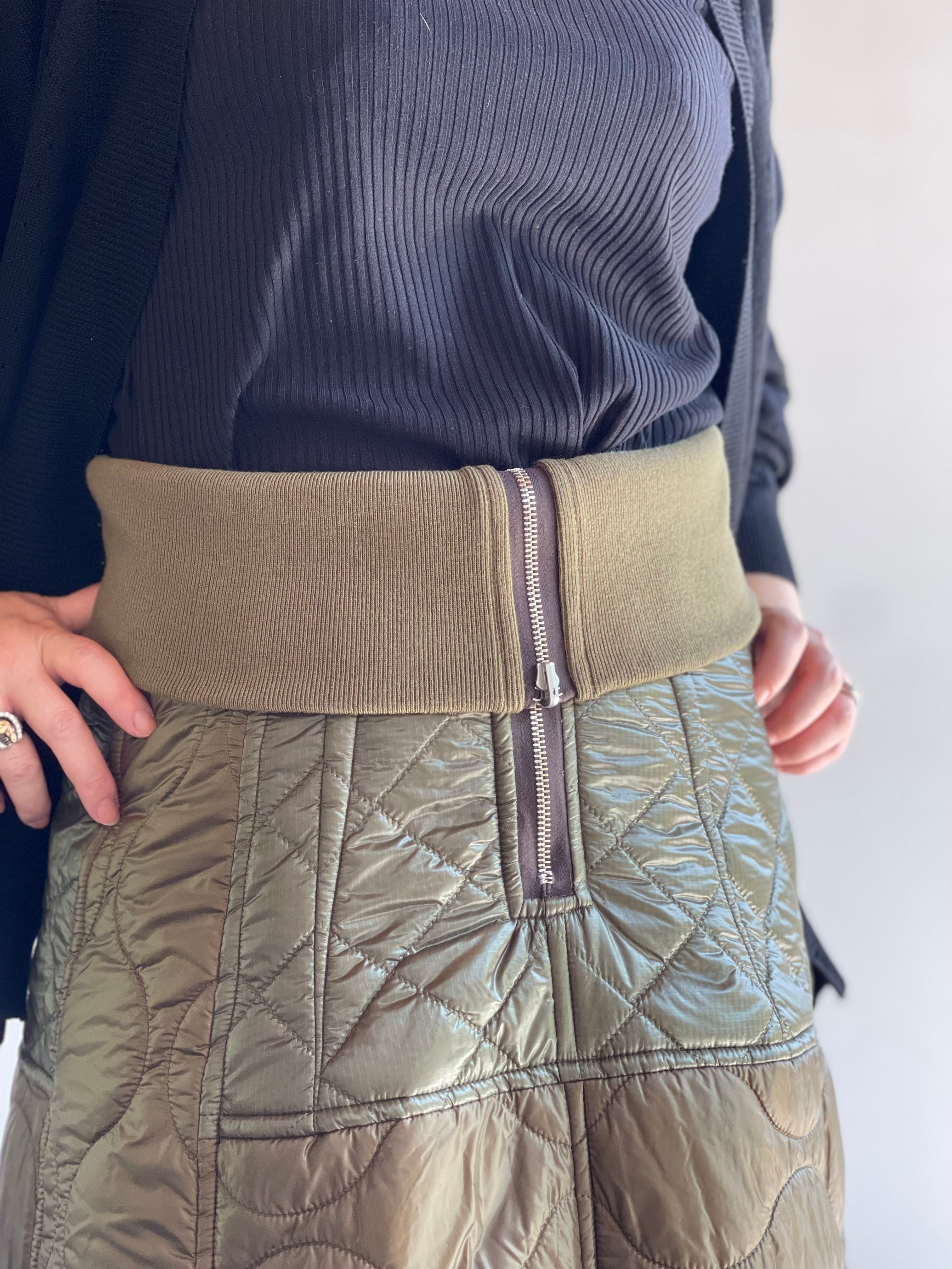 アイコニックな MODIFIED REVERSIBLE COATのデザインを、くるぶし丈のAラインスカートに落とし込みました。