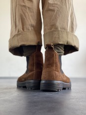 上質なワックスドスエードを使い、水や泥をものともしないタフな仕上がりが特徴です。天候を気にせず、フィールドでもシティでも、あらゆる環境で力を発揮する本格的なアウトドアブーツ。