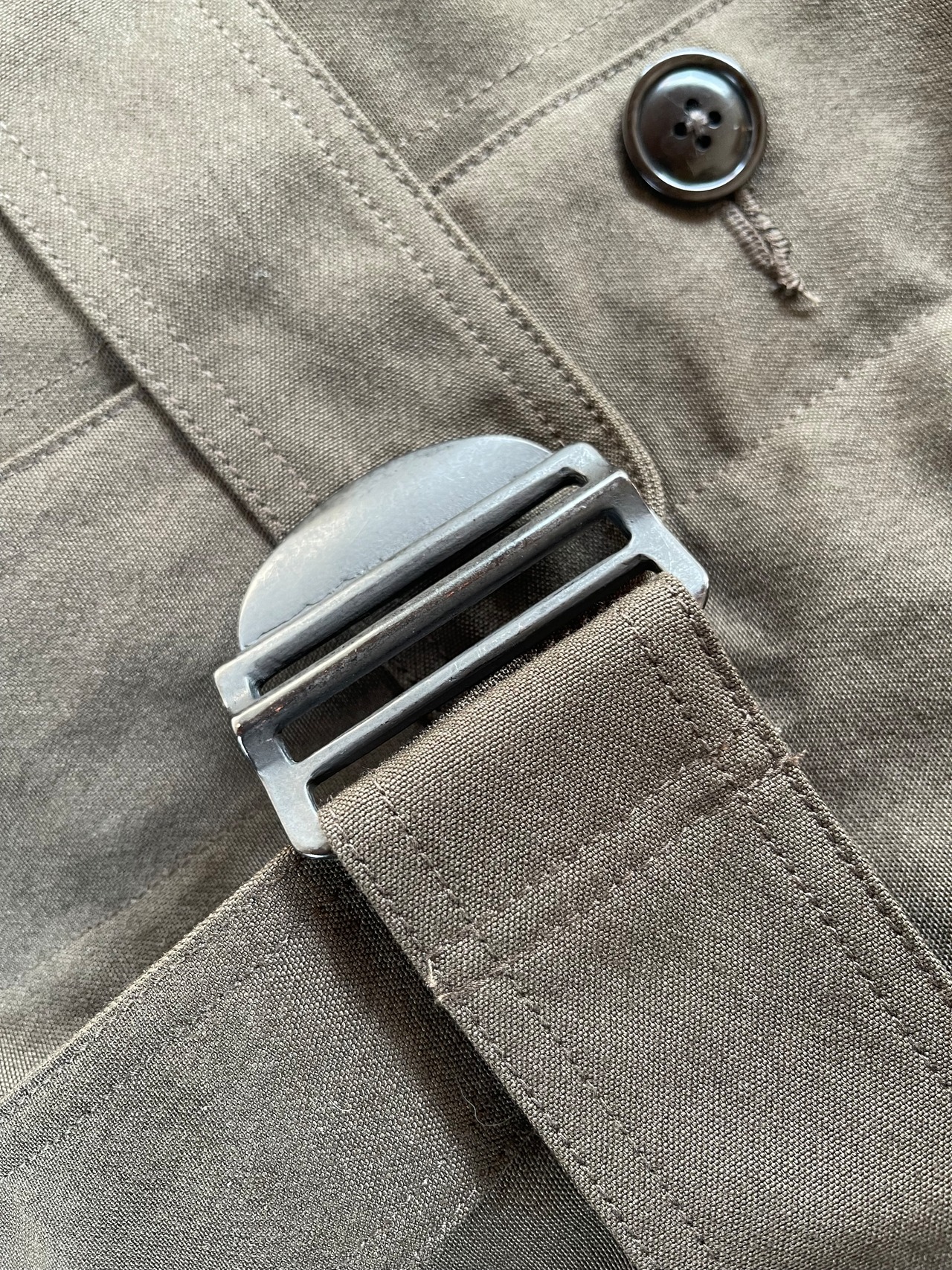 第一次世界大戦で活躍した日本人パイロット、ハリー・フサオ・オハラが着用していたフライトジャケットを着想源に再構築したコート。