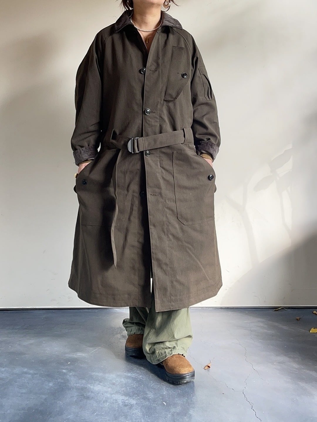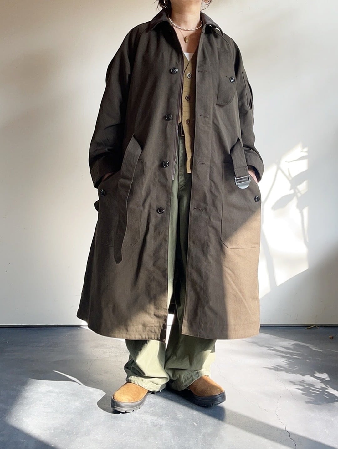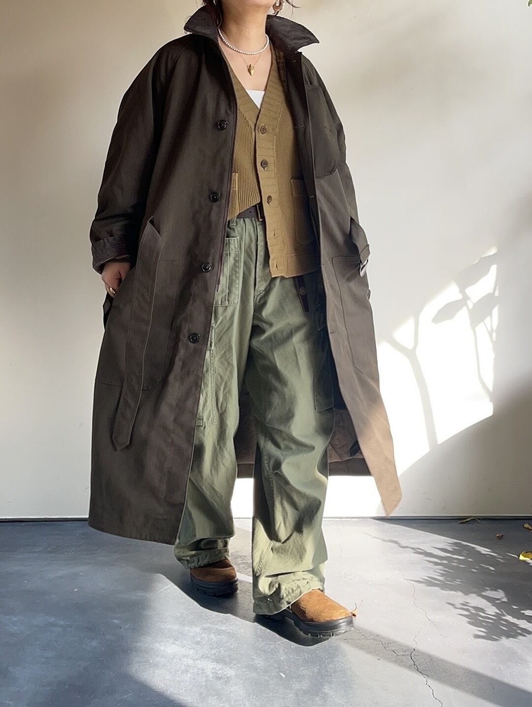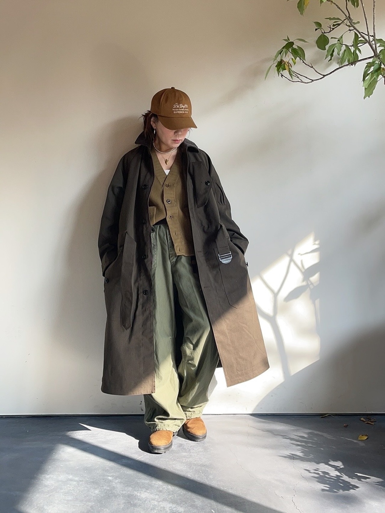 寒風を遮るためのロング丈に、ベルトを絞ることでシルエットにメリハリが生まれ、凛とした佇まいが際立ちます。