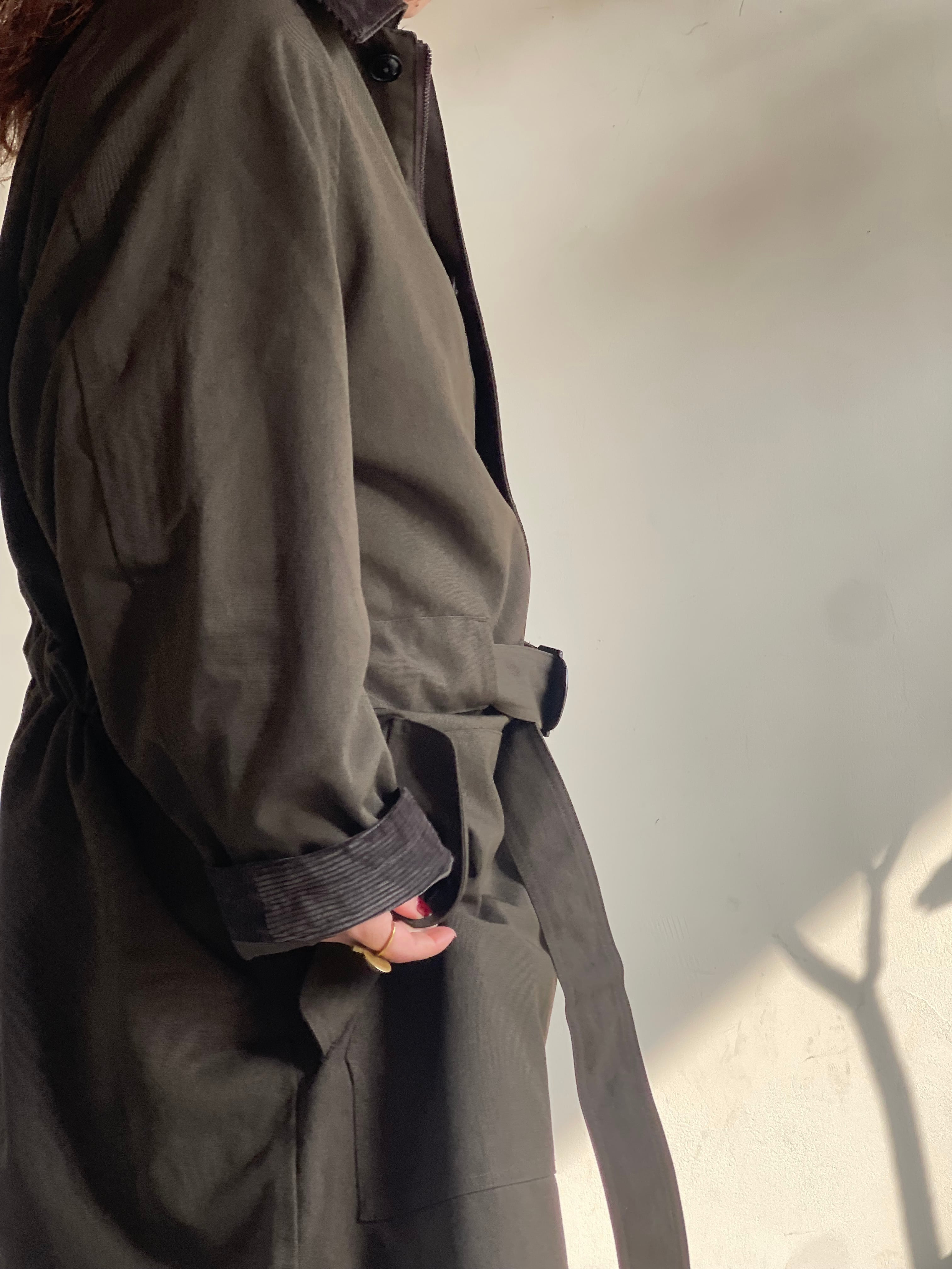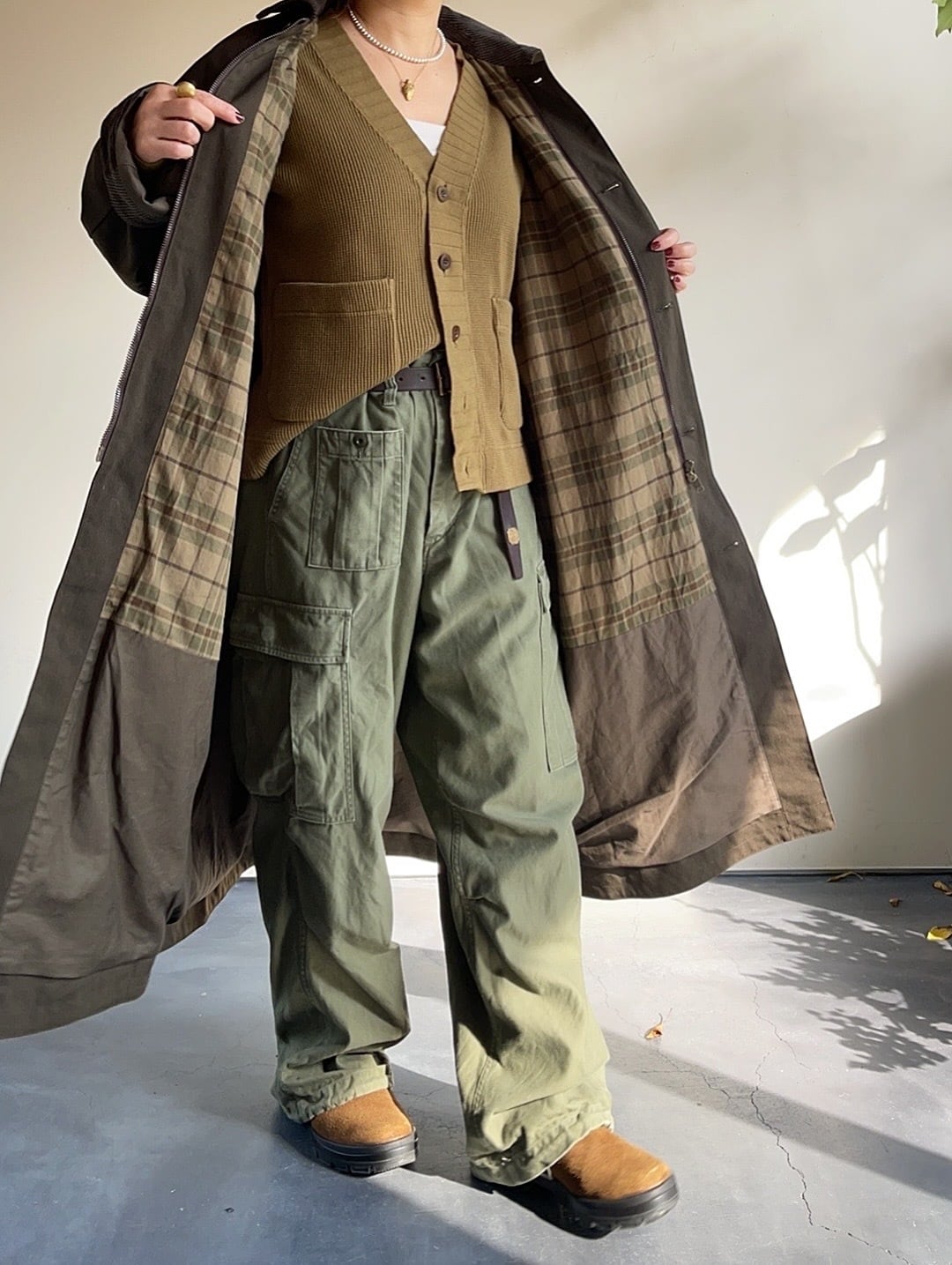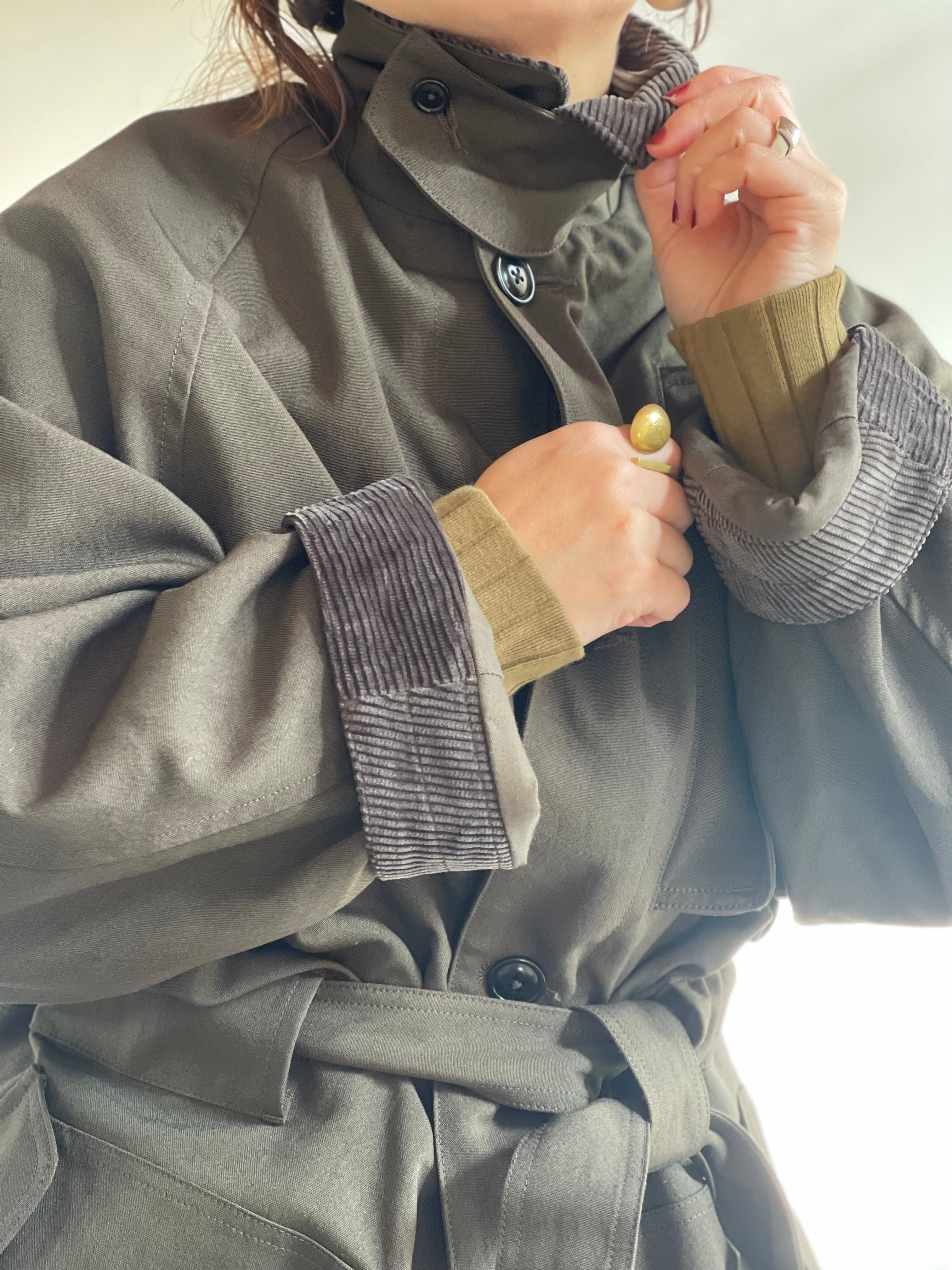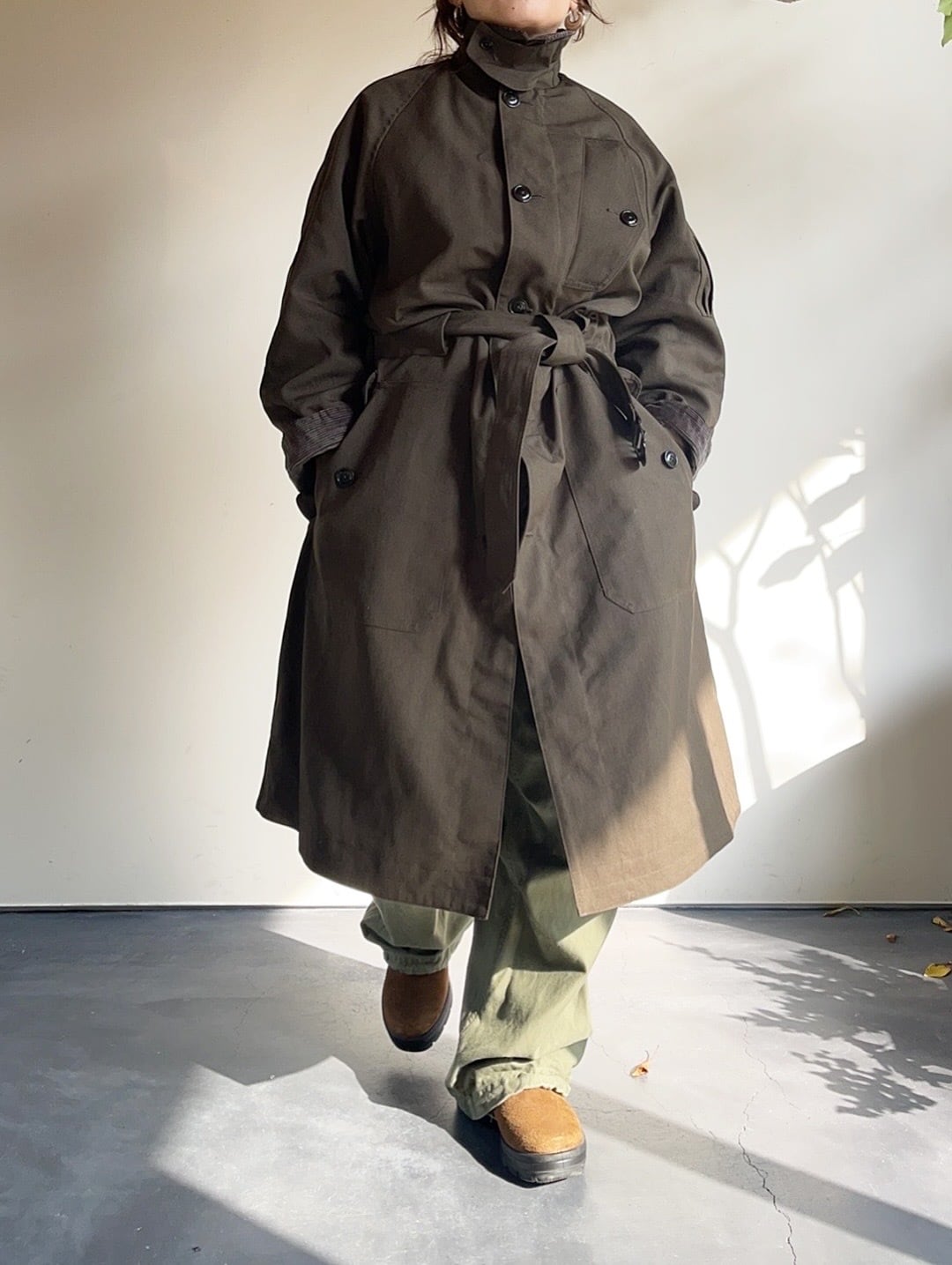 寒風を遮るためのロング丈に、ベルトを絞ることでシルエットにメリハリが生まれ、凛とした佇まいが際立ちます。