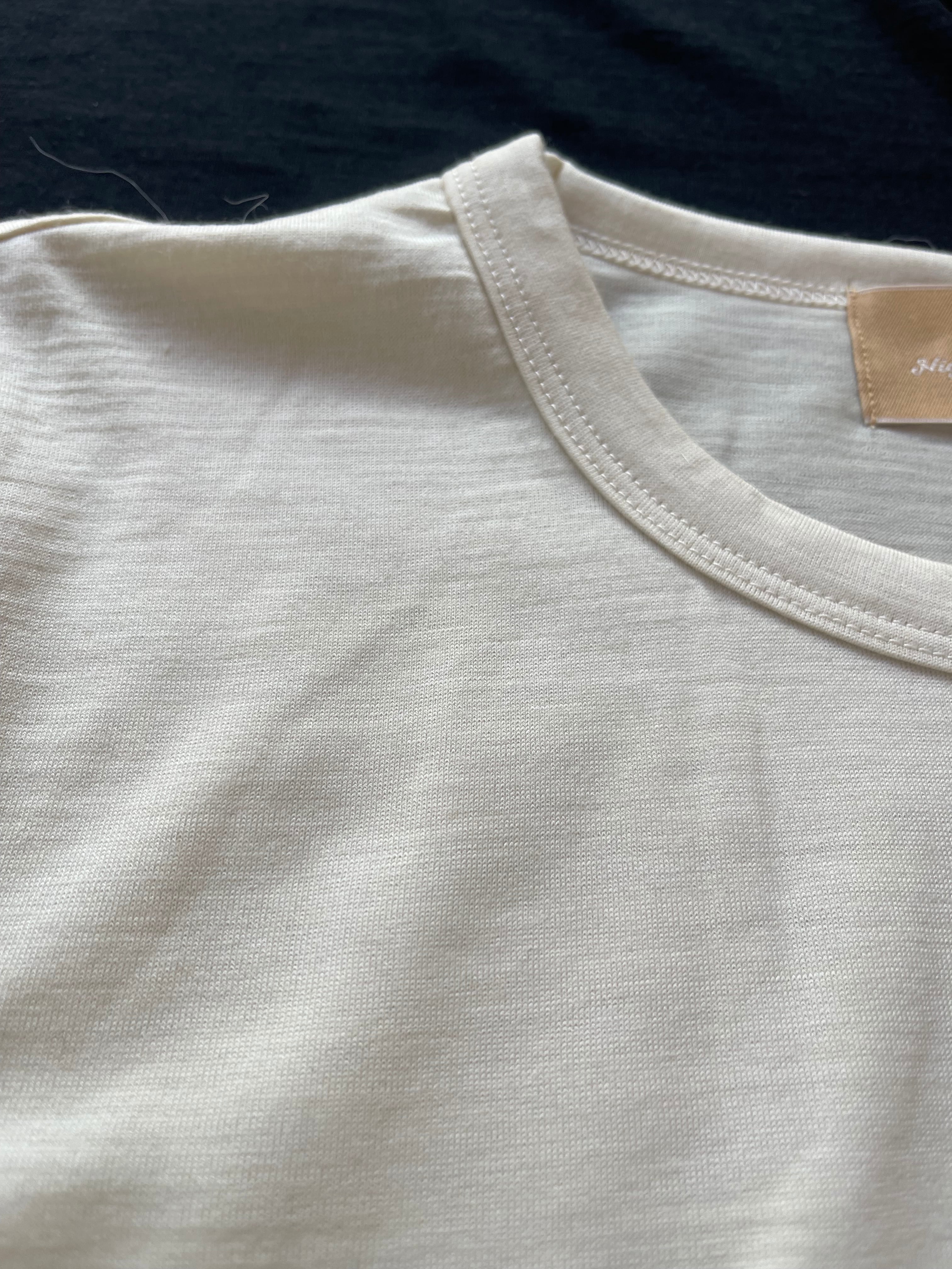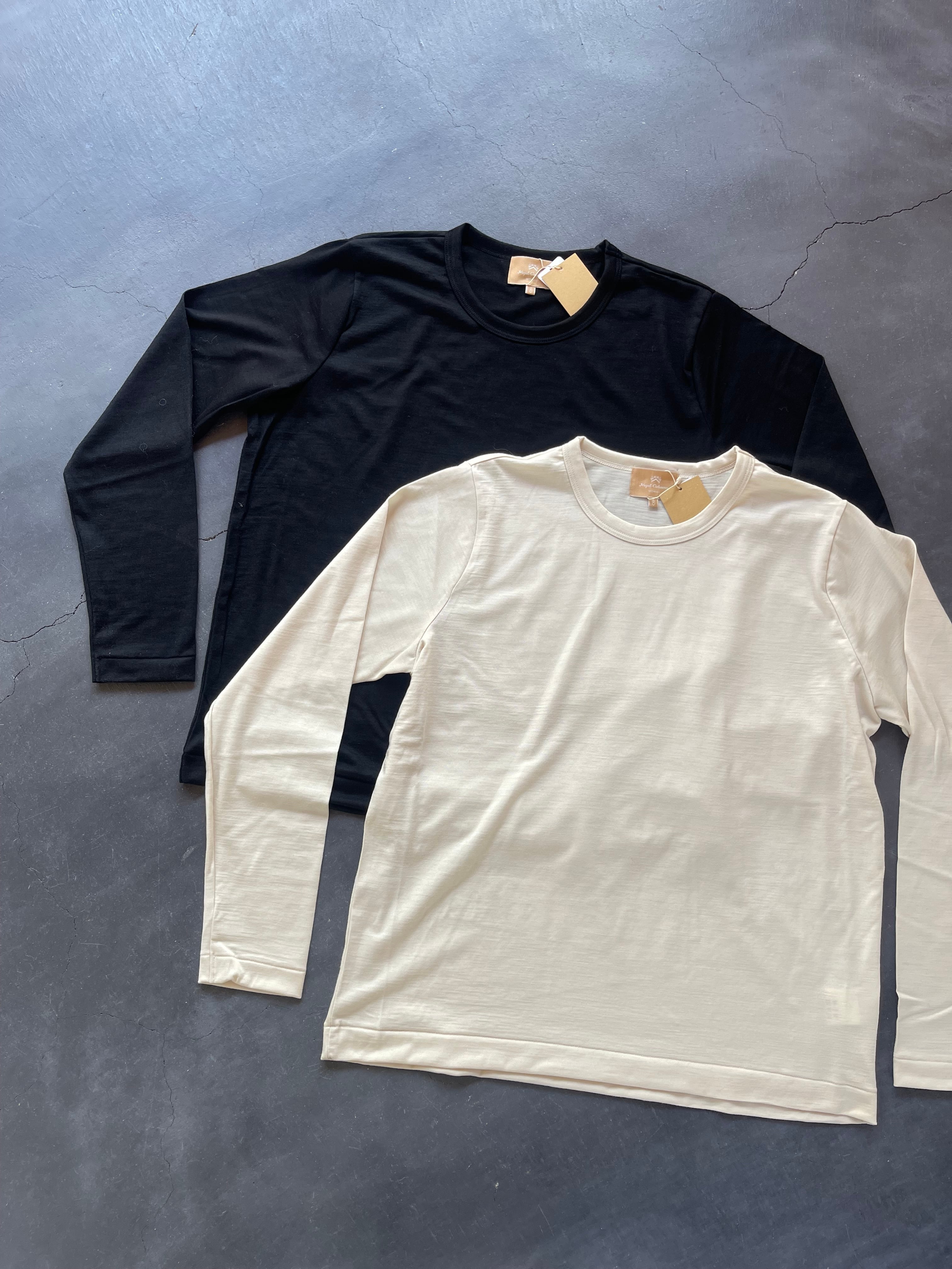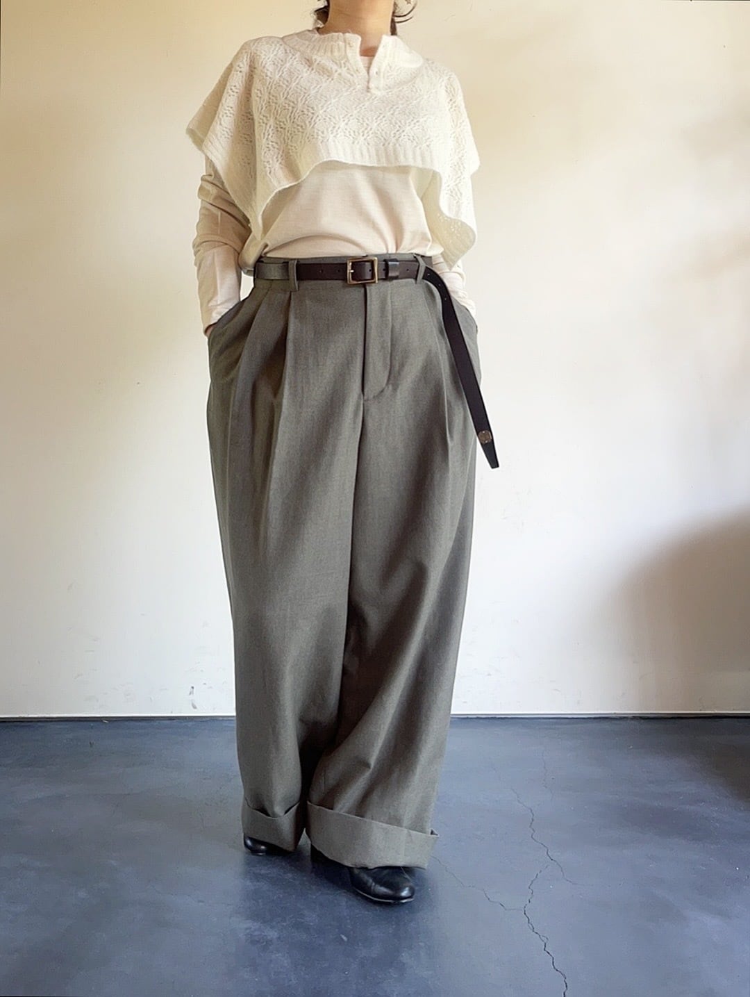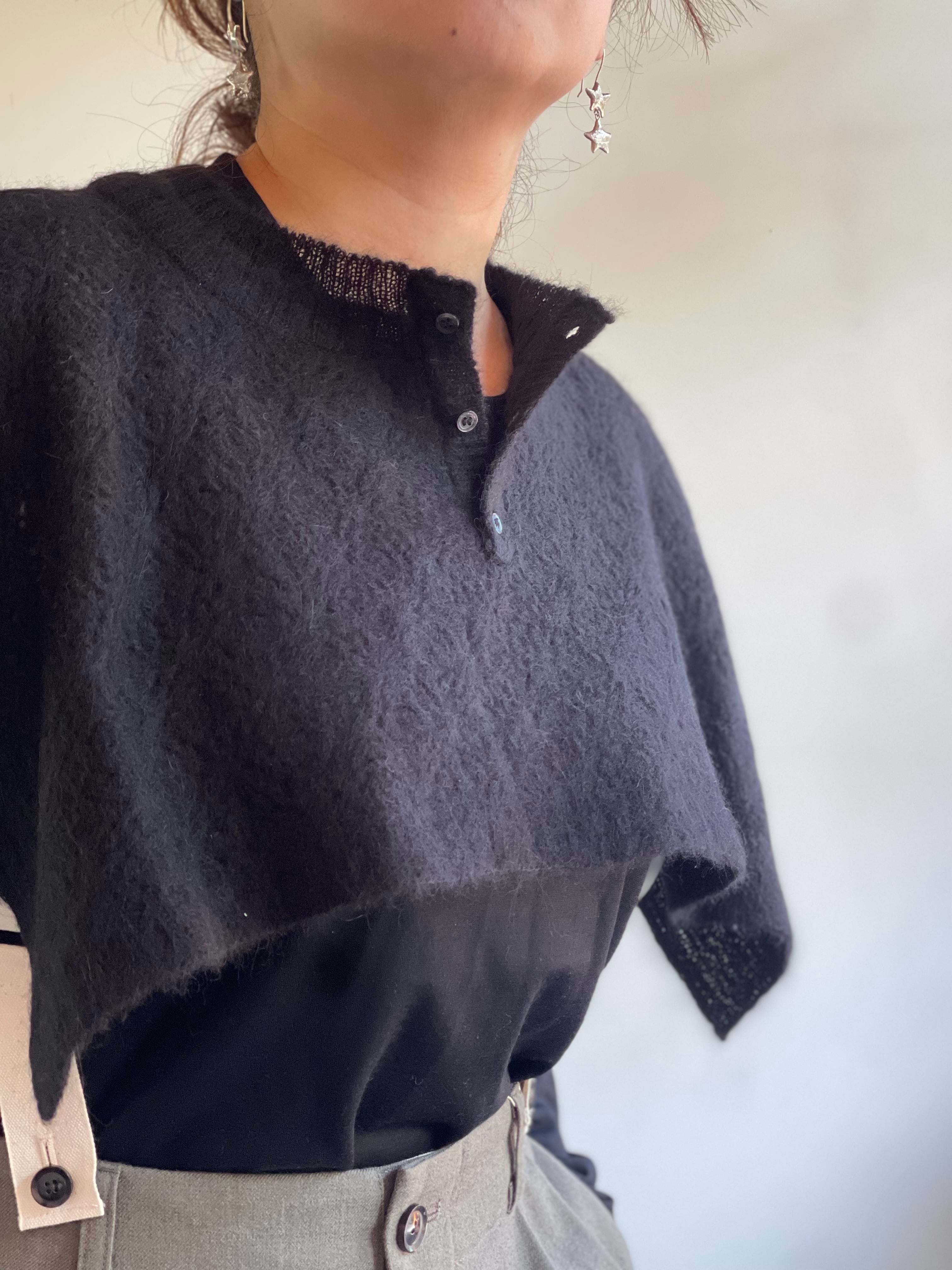 イギリスの歴史あるレースの柄をアルパカウールで表現したケープに、上質なウール天竺のロングスリーブTシャツを組み合わせたセットアイテム。