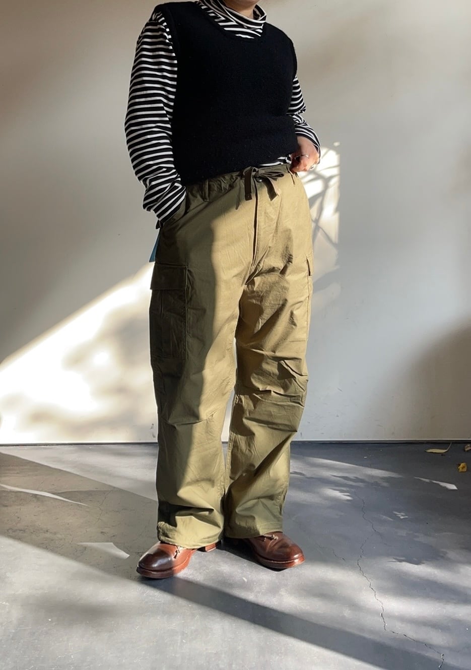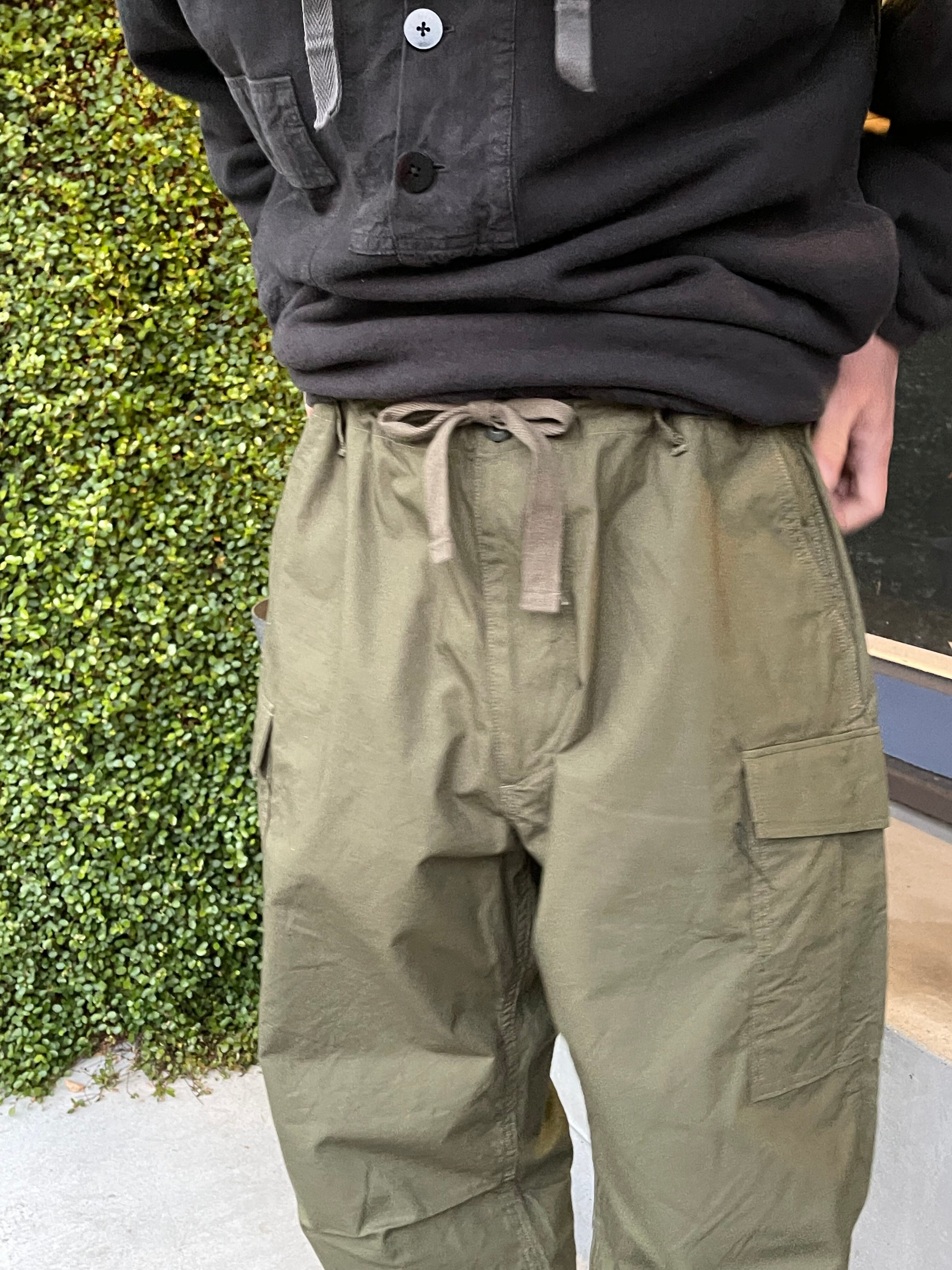 余計なパーツを取り除き、ドローコードを付けることで気軽に使えるTSLらしいカーゴパンツ。