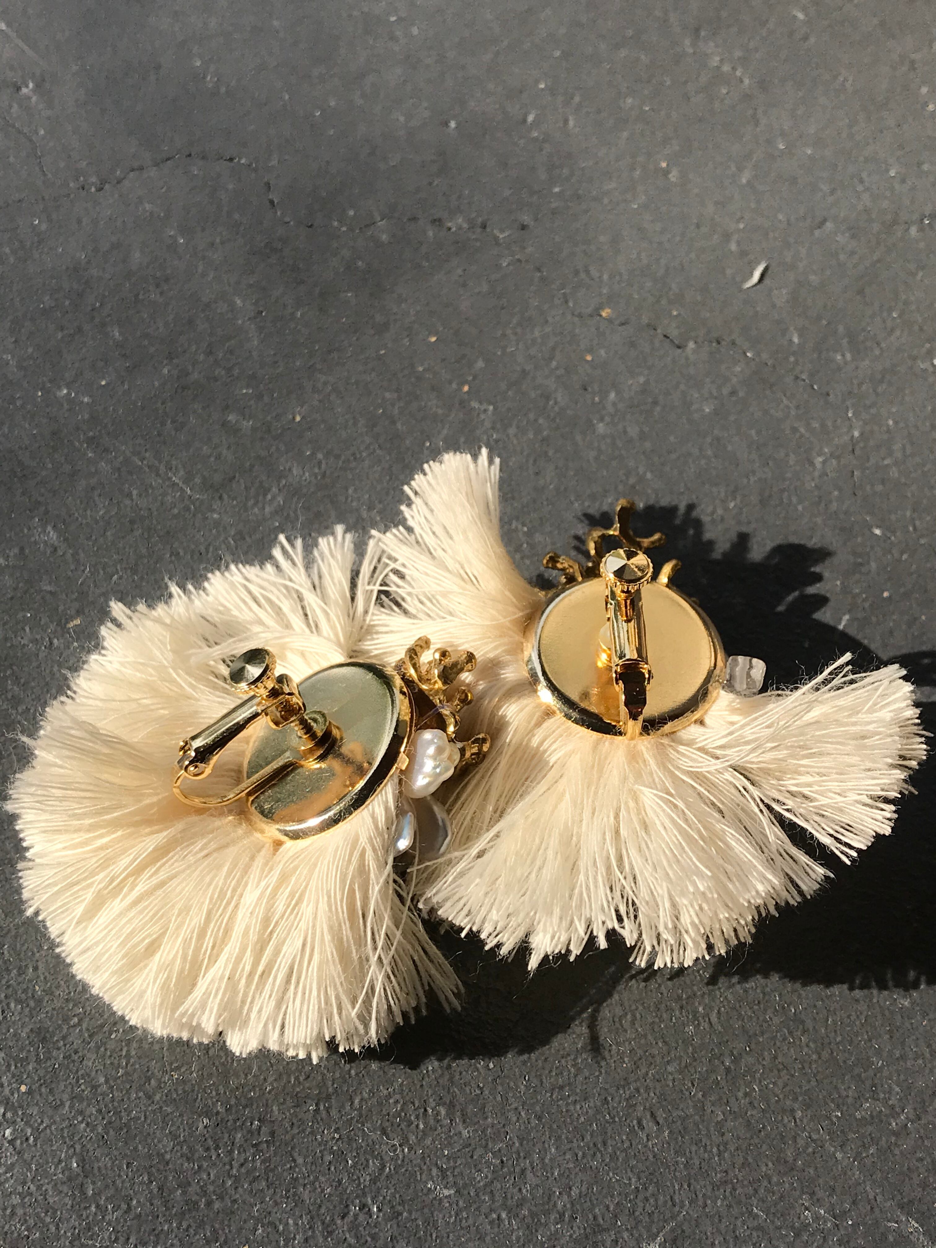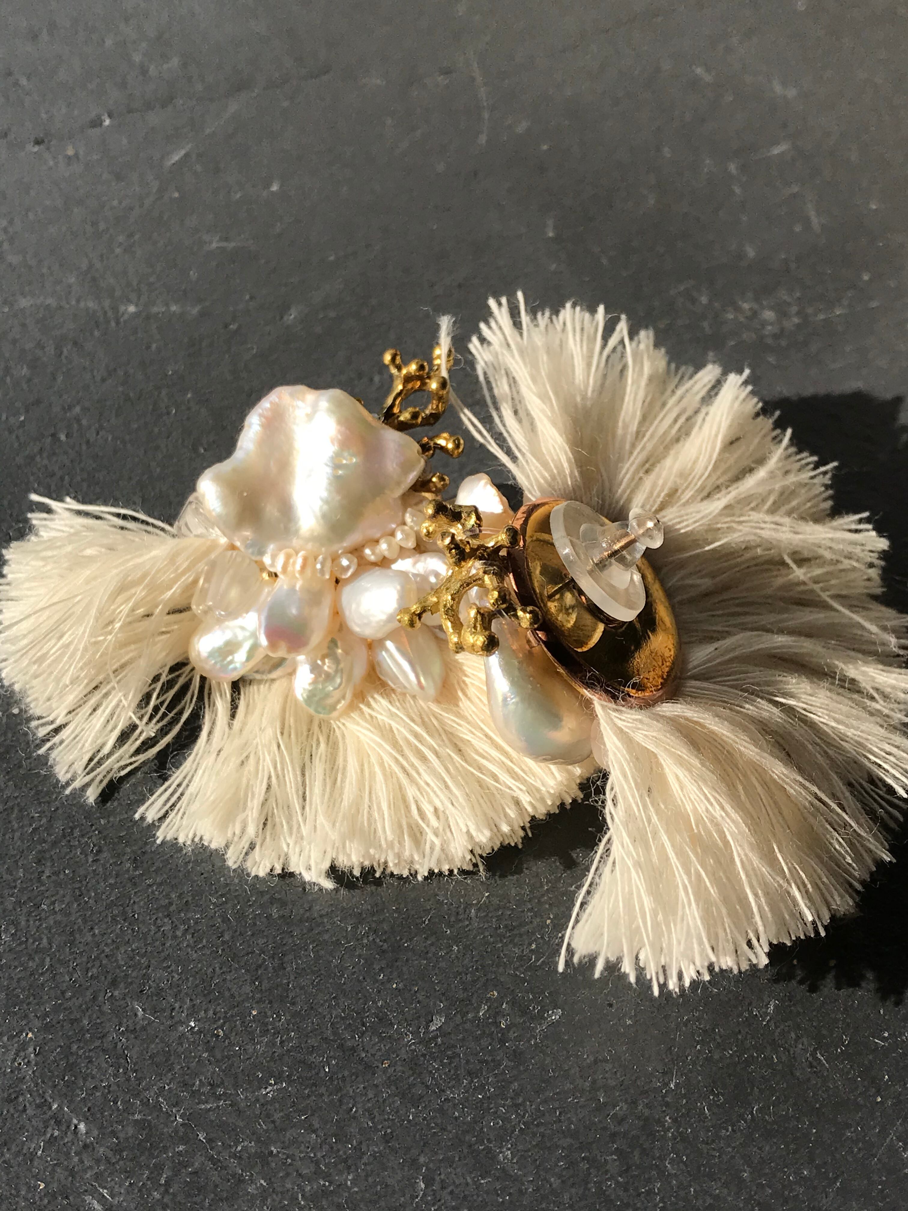 淡水パールや水晶などをつかいボリュームのあるピアス、イヤリング