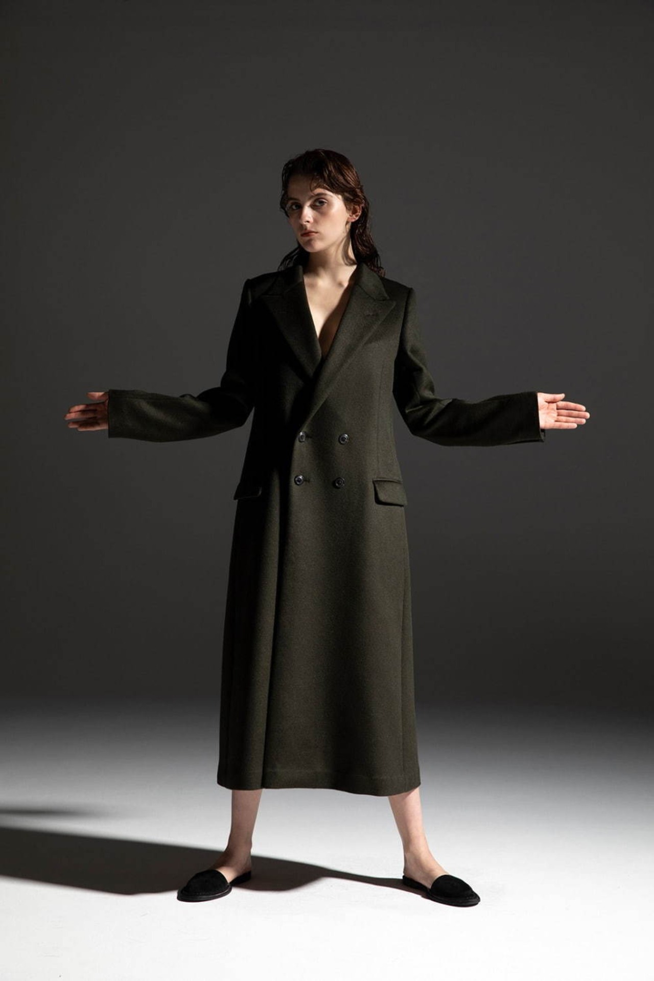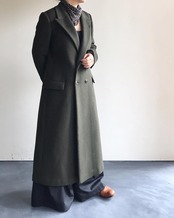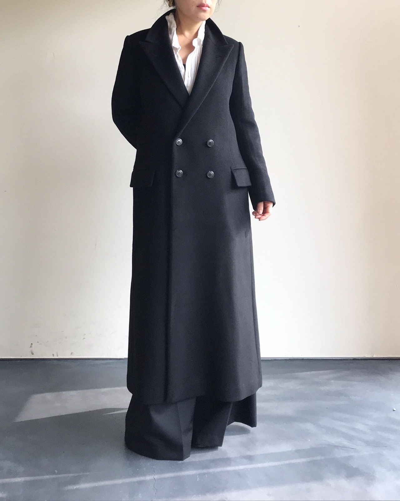 ヤクウールビーバーを使用した、艶感のある美しいコートです。ダブルのデザインでマニッシュな印象ですが