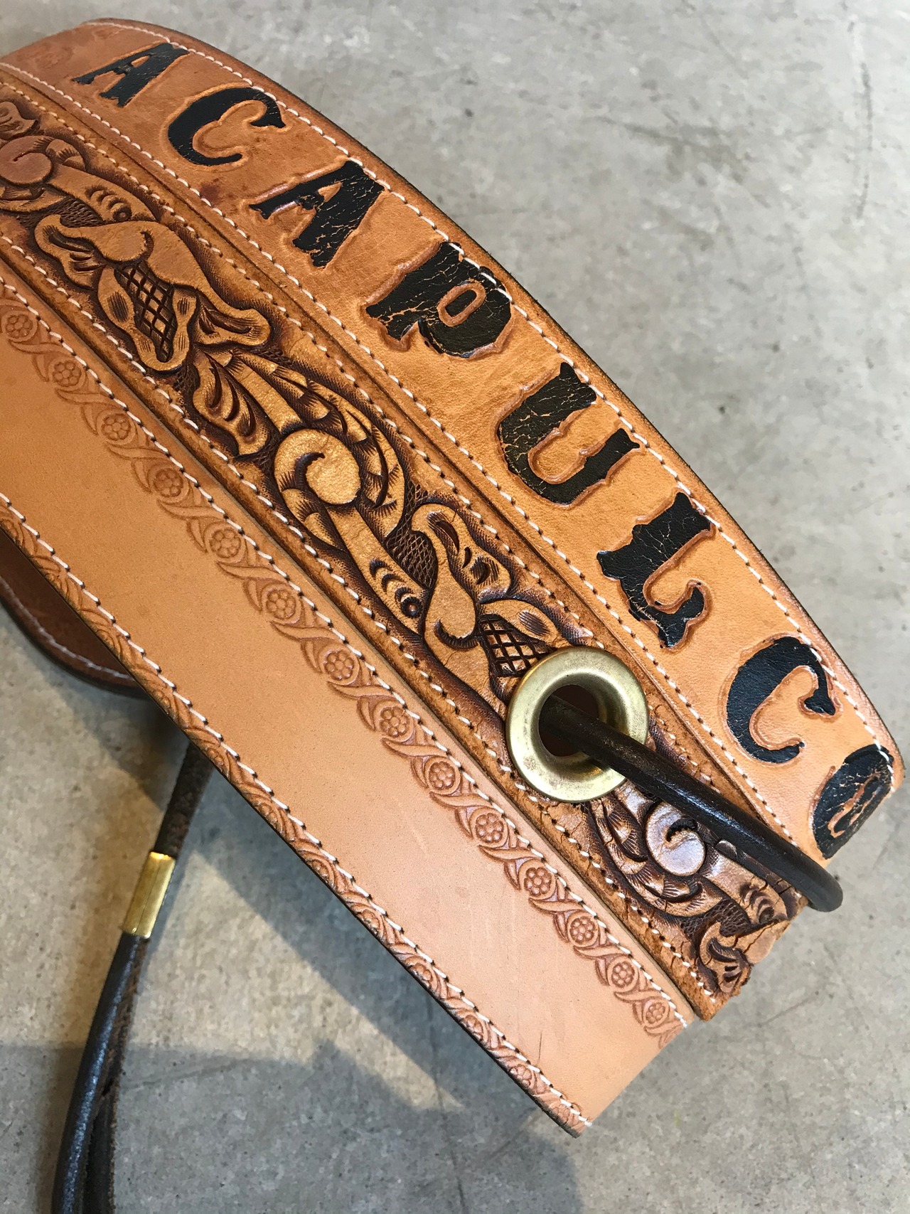 アンティークのレザーベルトを3本繋げて作られたベルト。他にはないオリジナルのベルトは、アクセントになります。
