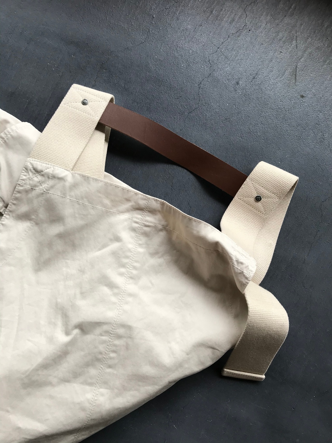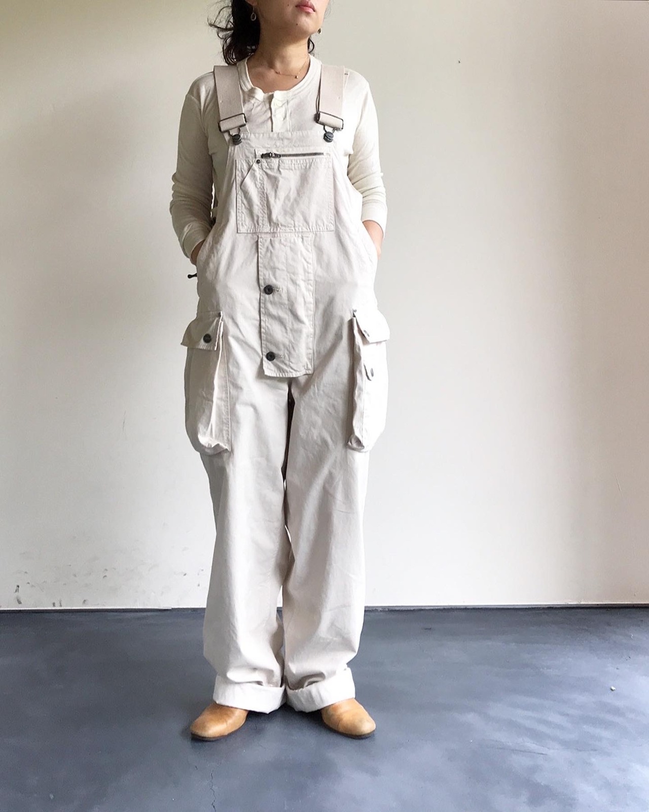 第二次大戦中に甲板で作業する海軍将校の防護服がデザインモチーフの、LYBROを代表するアイテムです。 クリップボタンやレザーストラップなどの当時のディテールを踏襲しつつ、オリジナルのジップポケットやペンポケットを配したデザインです。
