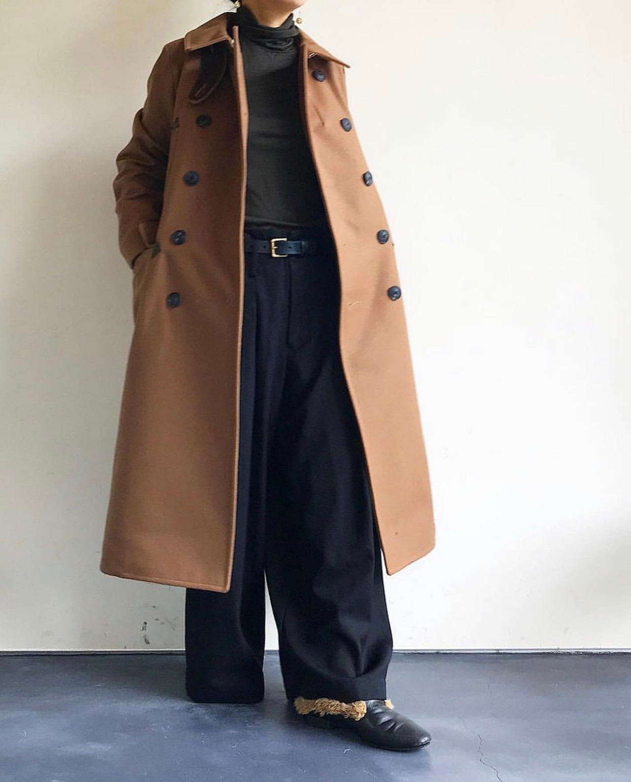 海軍のピーコートをモチーフにしたNigel Cabournでも定番のピーコート。 カシミア混のライトなメルトン素材を採用しているため、その見た目とは異なり驚くほど軽やかで何より暖かい。上質なカシミアを含んだ状態で圧縮、さらにはメルトン加工することで、より滑らかで光沢感のある洗練された仕上がりを実現しています。 無駄のないサイジング。ゆとりがありながらすっきりとしたIラインシルエットは、もたつかずにすっきりとしたシルエットで着こなすことができます。