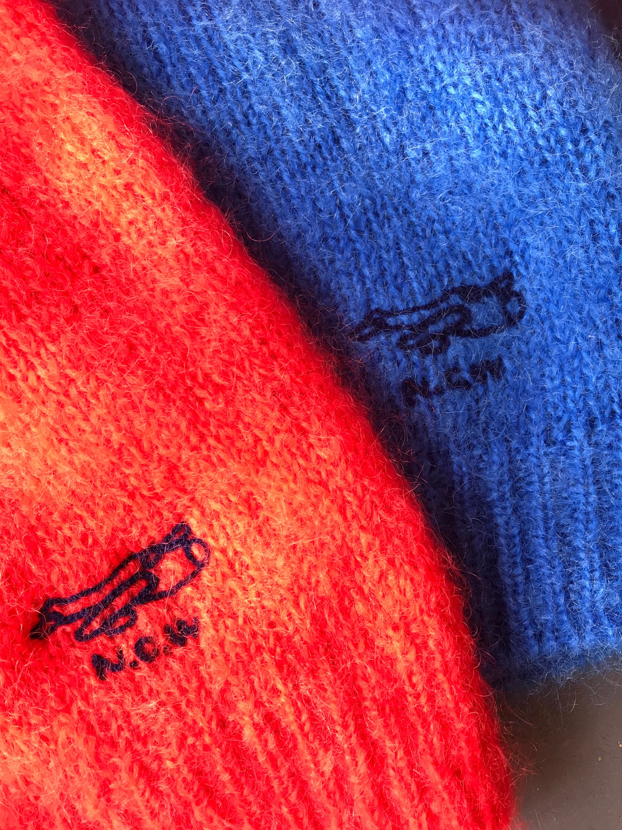 ナイジェル× ハーレーオブスコットランドのモヘアセーター。