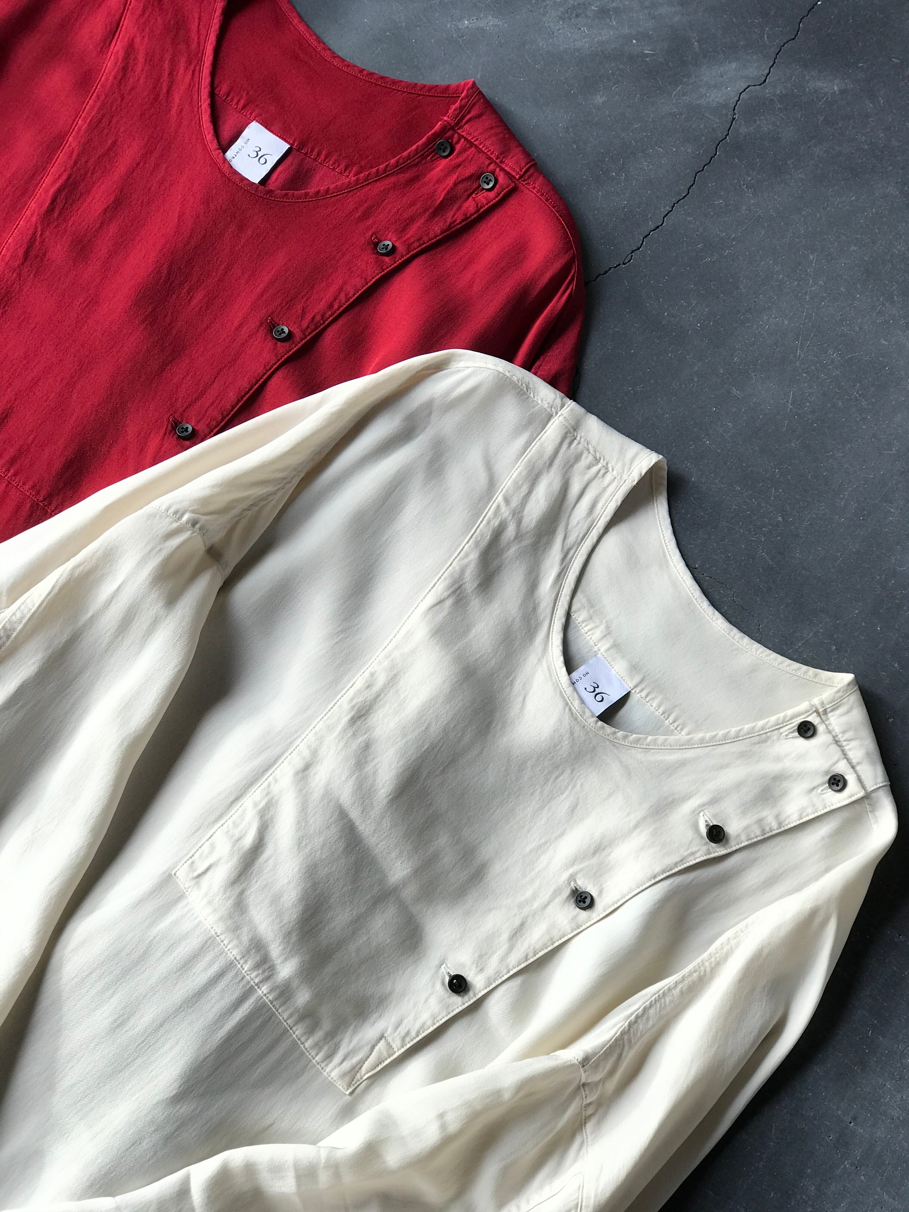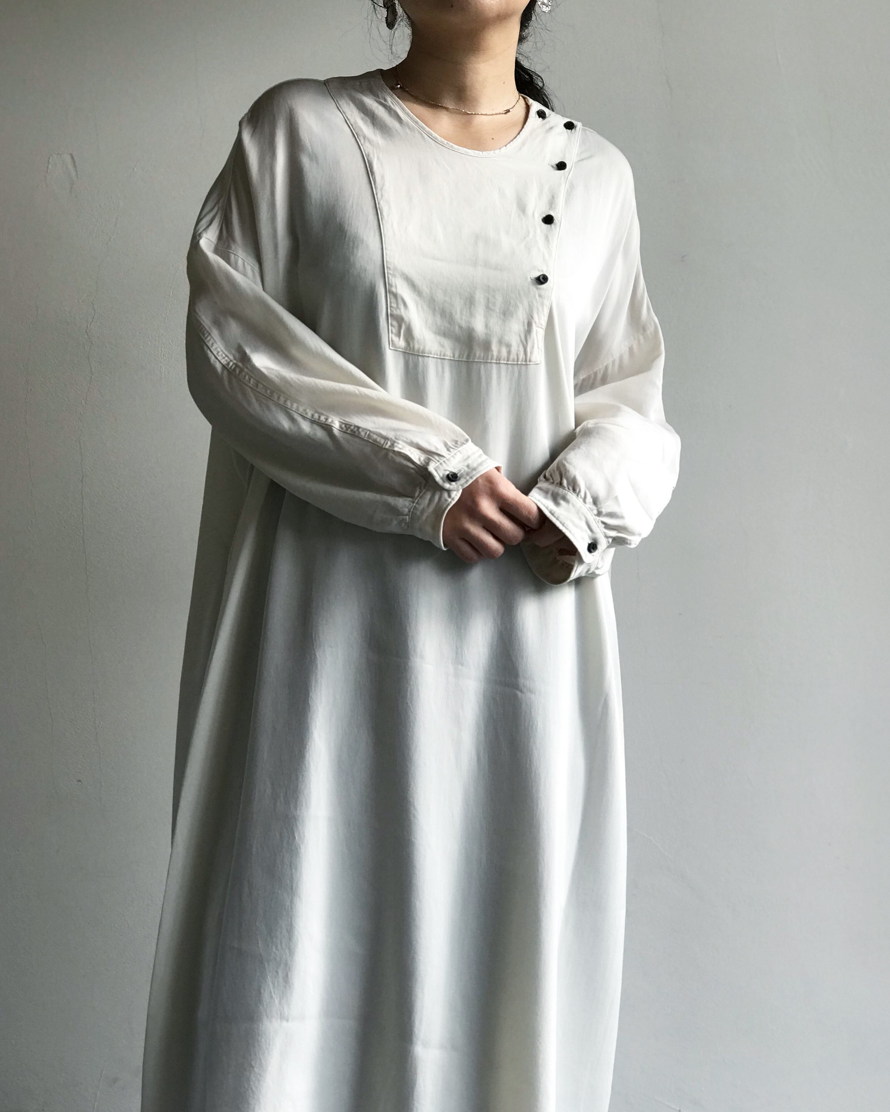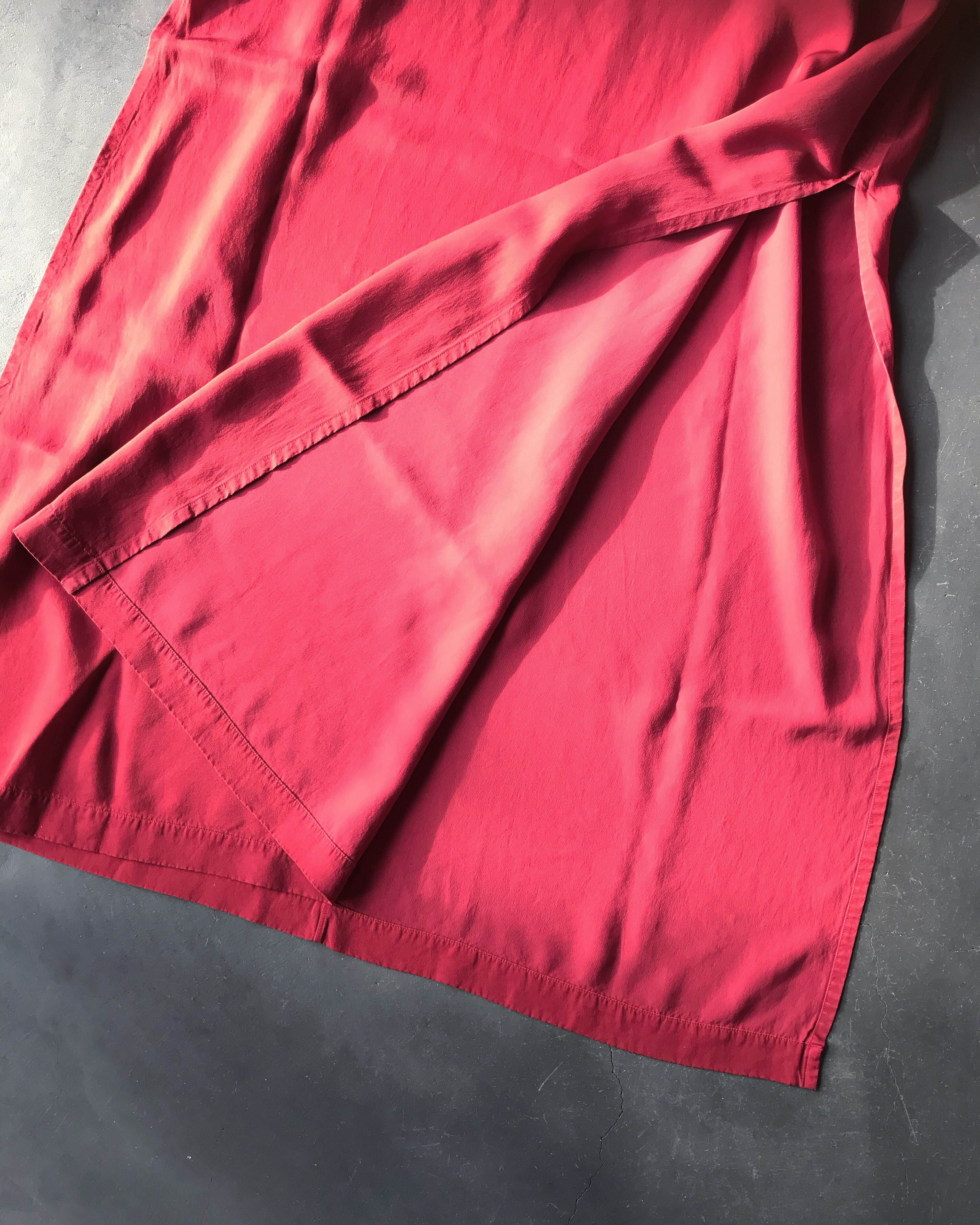 キュプラとレーヨンをミックスしたカルゼ織りの生地を製品染めしているロングプルオーバー。