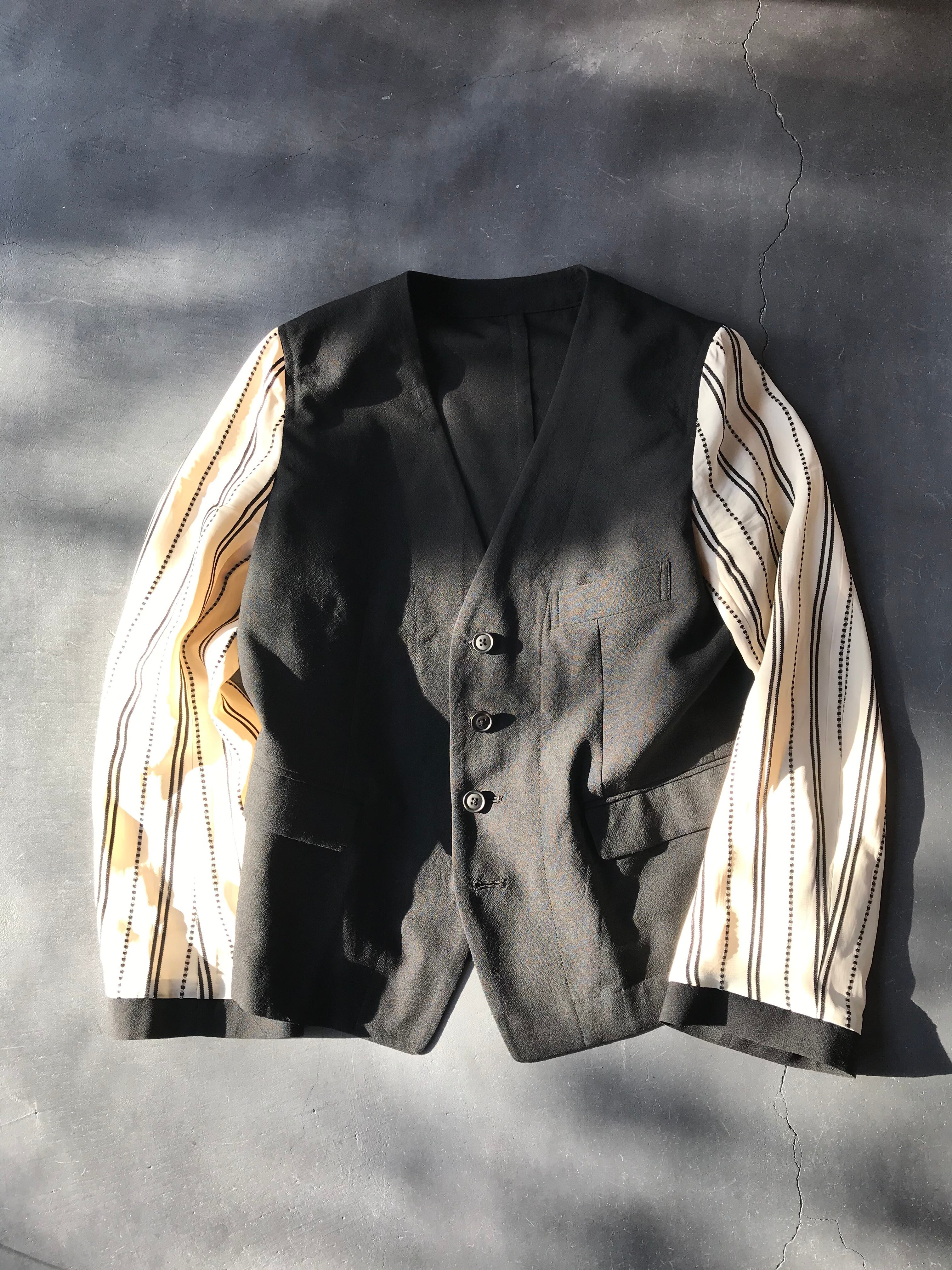 Robes&confections Albatros wool + rayon dobby stripe vest cut jacket