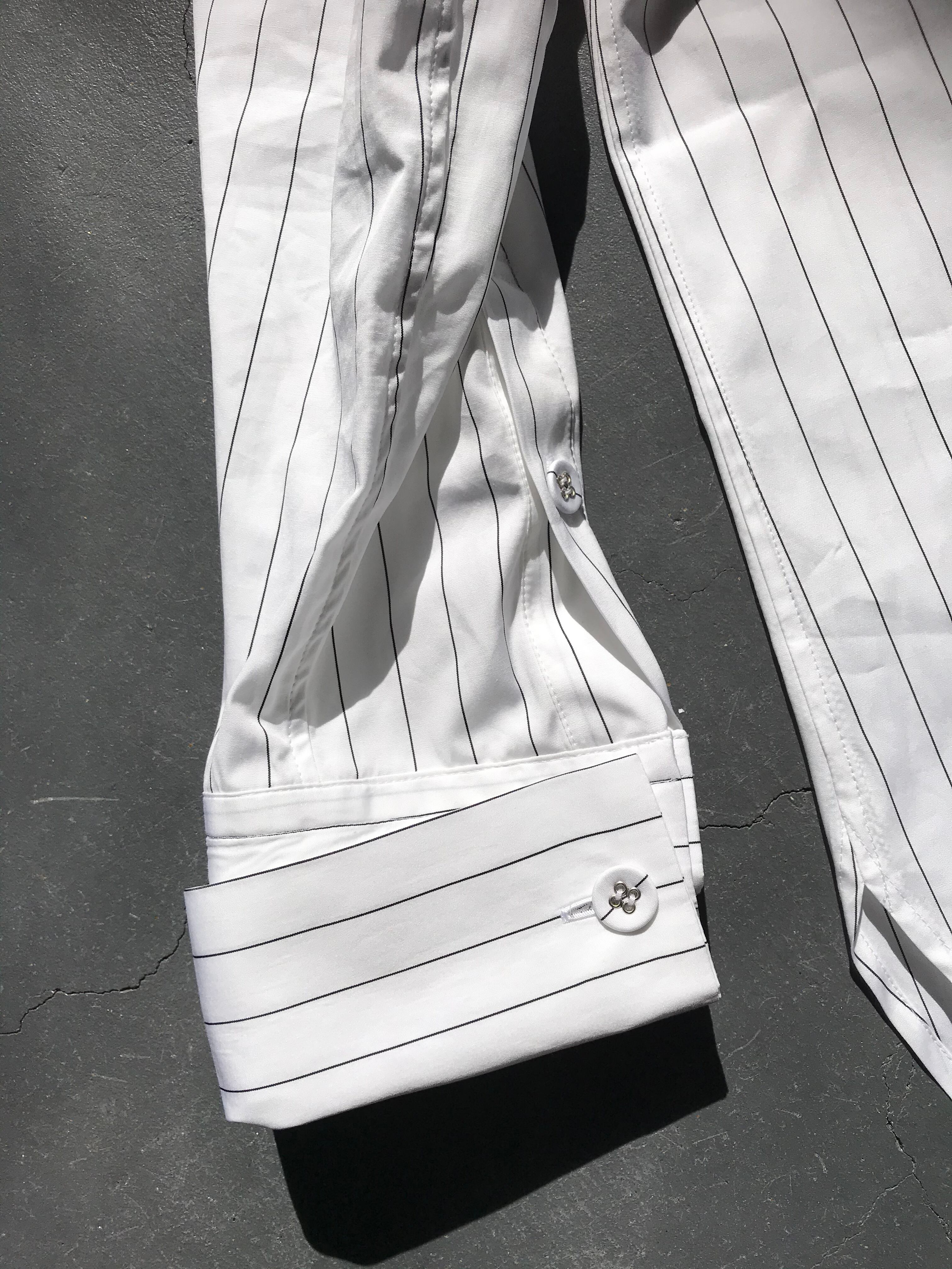 最高品質のシャツファブリックメーカー「THOMAS MASON(トーマス メイソン)の生地を使用した、ダブルカフスシャツ。