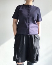 肌触りが良く、伸縮性のある天竺の見頃に、布帛の衿と前立てが付いたヴィンテージに見られるデザインを、カーディガンにアレンジしています。