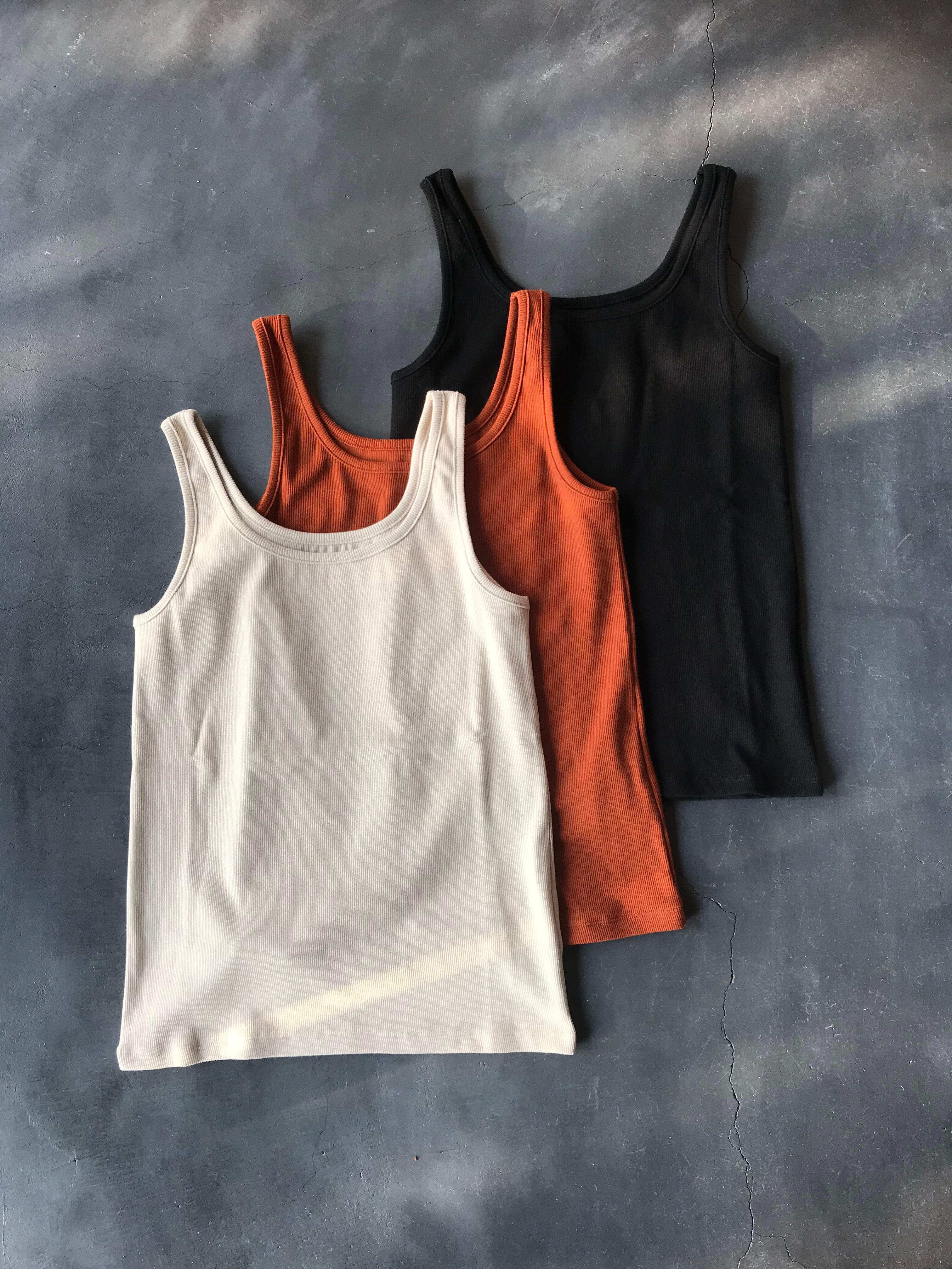 伸びが良くしなやかなベアテレコ生地を使用したタンクトップ。