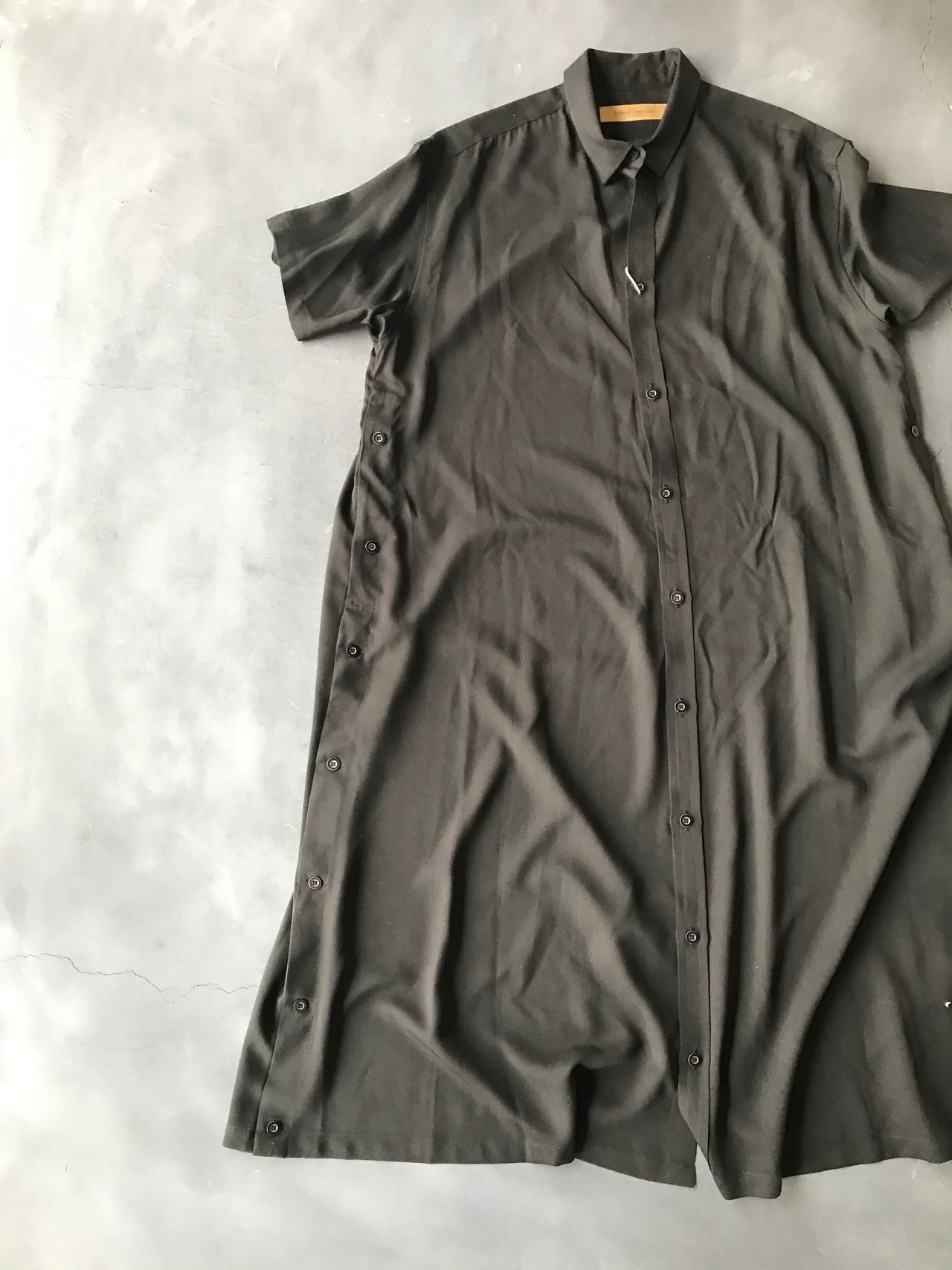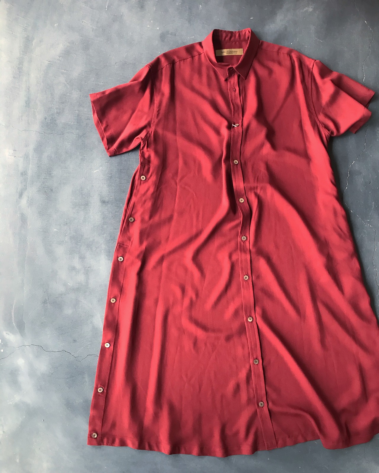 落ち感のあるトロンとした生地が美しいロングシャツ。
