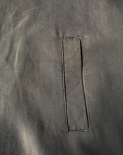 経糸に強撚したレーヨンを使用し、緯糸に綿ポリエステルの糸を使用した高密度のラチネ織の生地です。強撚したレーヨンを使用しているので落ち感とシャリ感があり、ラチネの織りと相まって綿の天然感も持ったハイブリットな質感の独特な生地です。薄い肉感ですがハリも少し持たせているため形も綺麗に出て透けも無いので着やすい生地です。