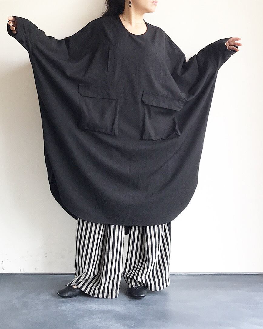 落ち感のあるさらりとした生地感で、動きの出るドルマンプルオーバー。