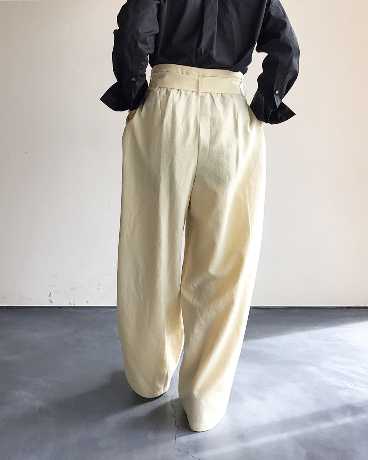 また、ウエスト部分にはゴムが入っており、きちんとした見え方ながらイージーかストレスフリーな履き心地です。