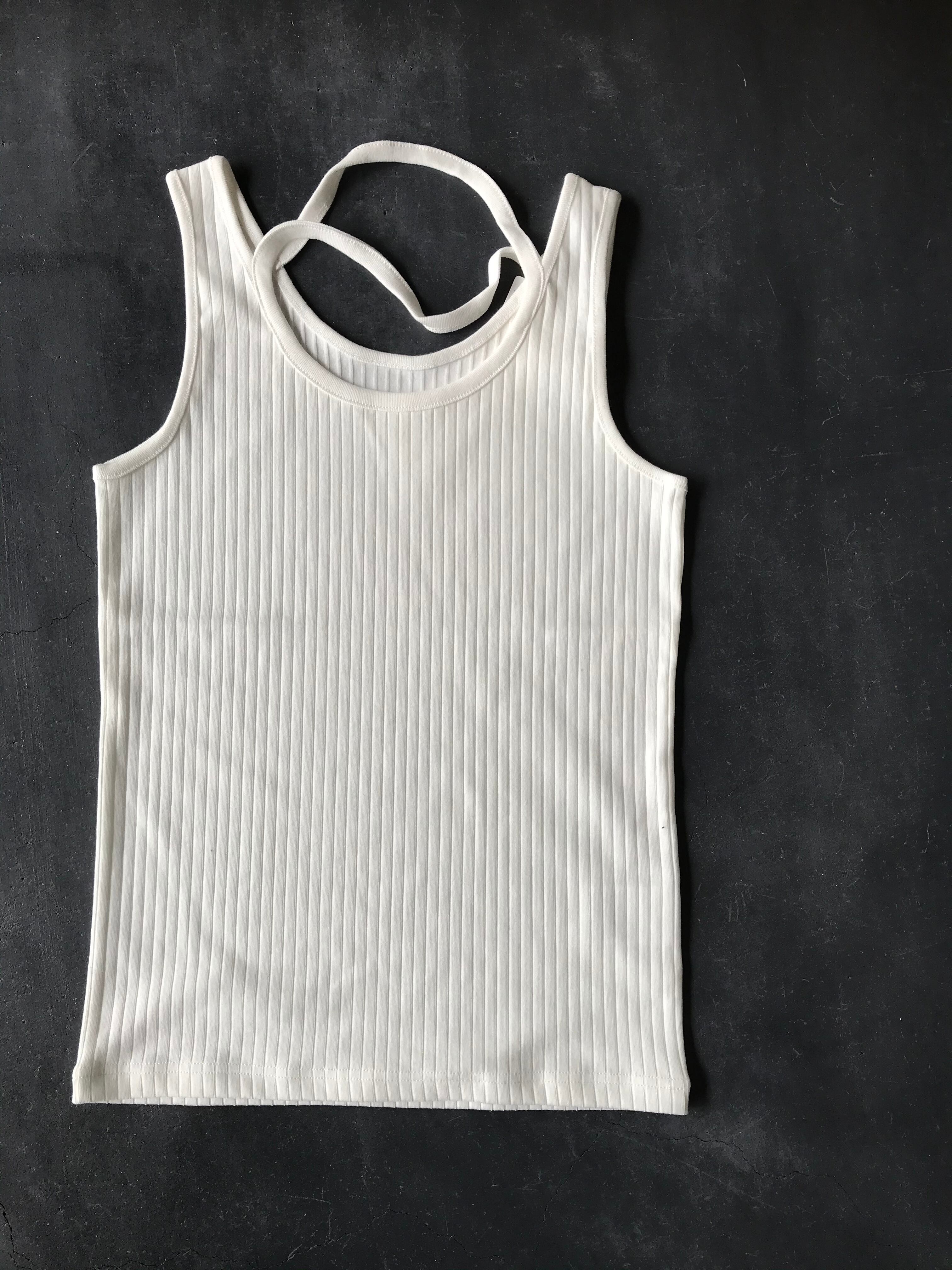 また、バックに程よくスポーティーなクロスデザインが施されており、首の開いたデザインのトップスとも好相性です。
