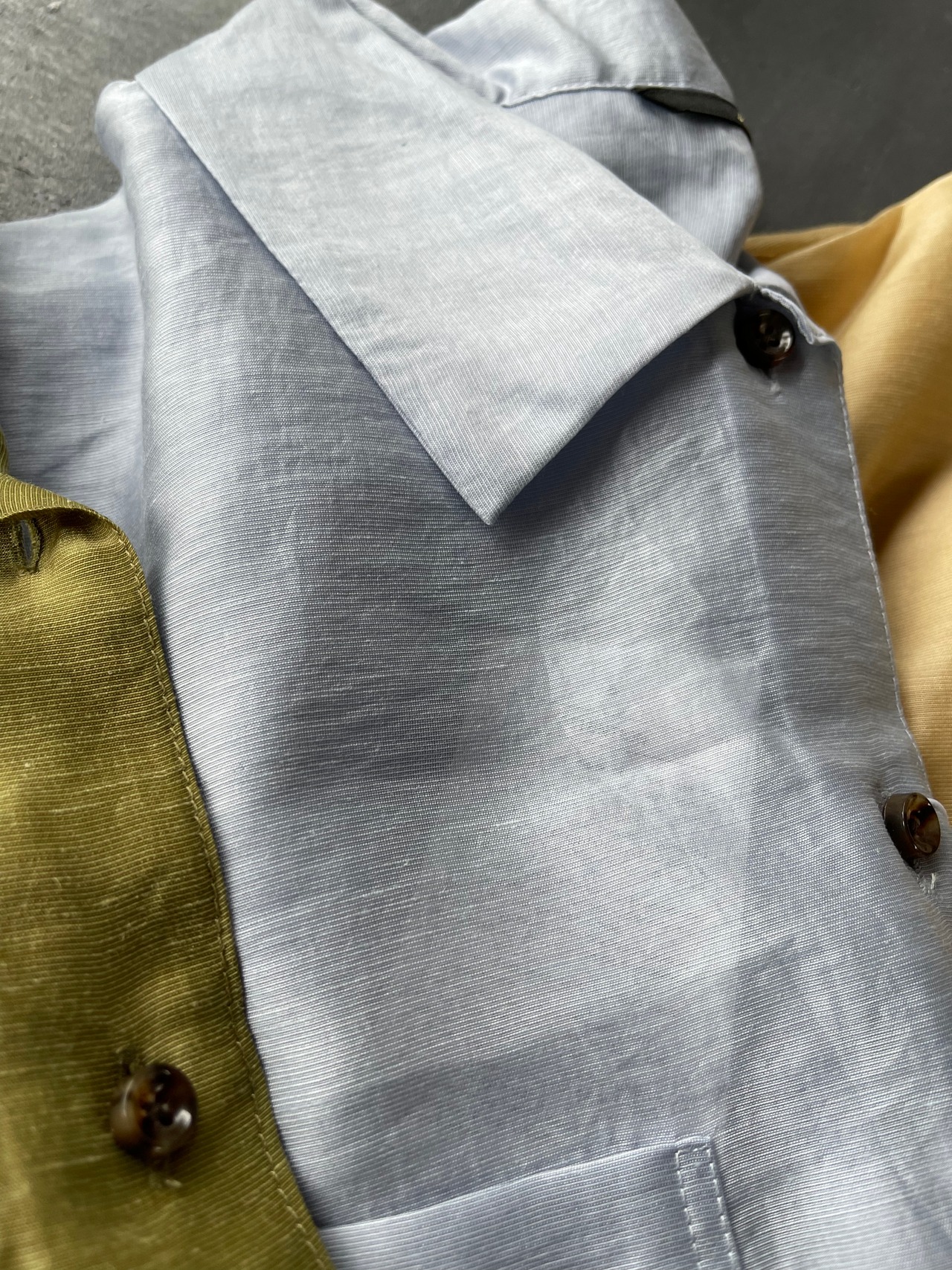 シアーな素材感が女性らしい雰囲気ですが、適度にメンズライクなデザインを残したアイテムです。