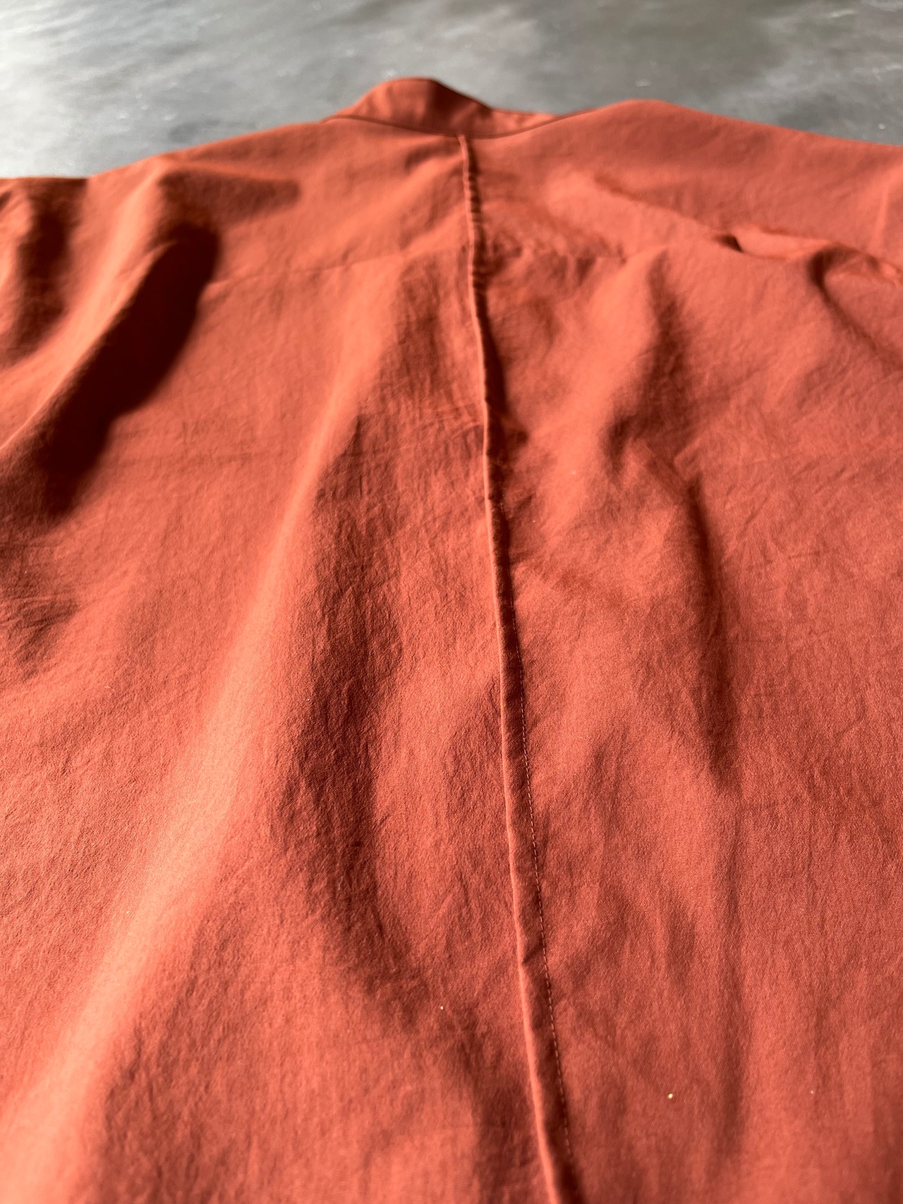 経糸にテンセル糸、緯糸にポリエステル糸の高密平織(ポプリン)で、もみ洗いの加工を施してテンセルをフィブリル化させ、マットでパウダリーなタッチを出した生地です。