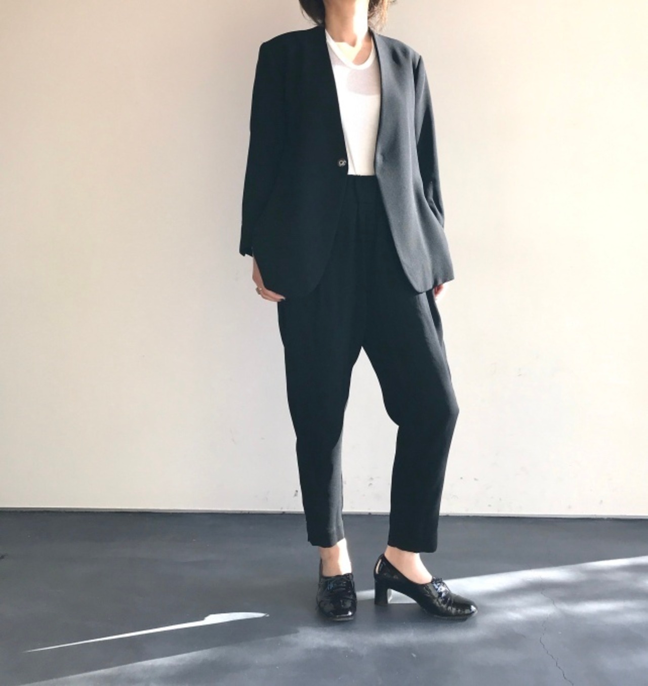 伸縮性があり、シワになりにくい特性の生地感で、通年を通して着用いただけるので、オンオフ問わず様々なシーンで活躍。