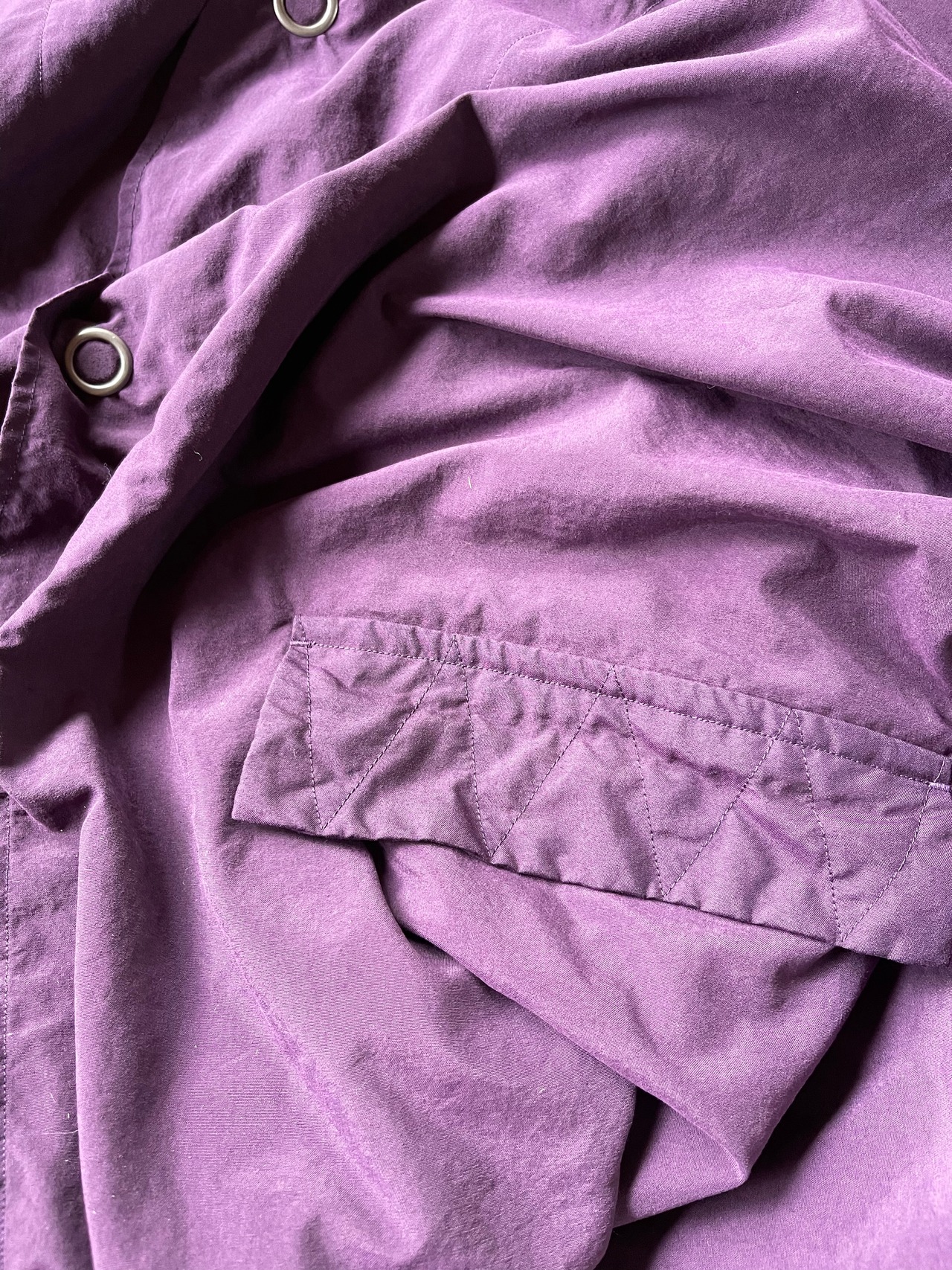 経糸にやや太めの糸を使うタッサー織の為、少し横畝があり、起毛加工が施されているのでナイロンでありながらソフトなタッチの生地です。
