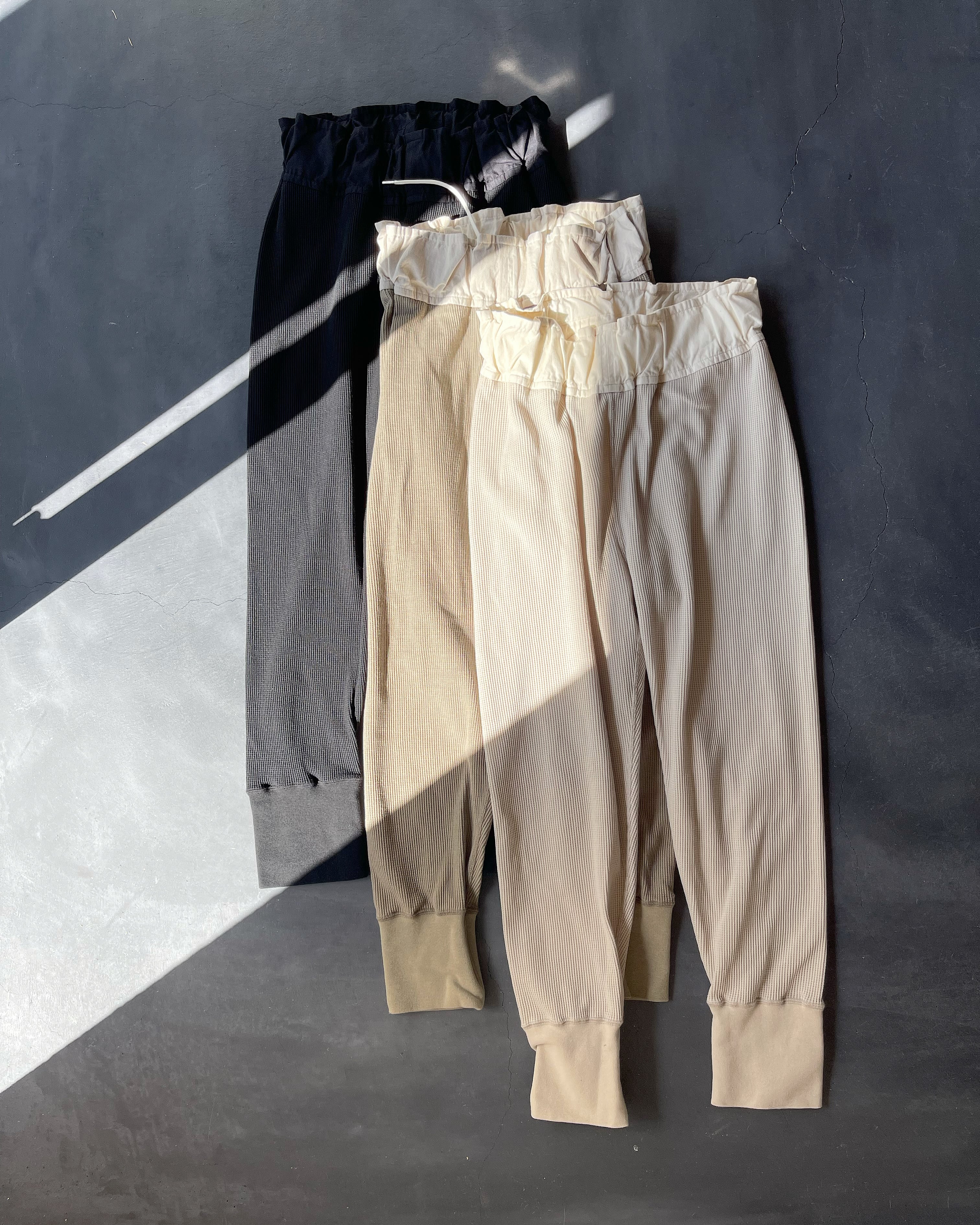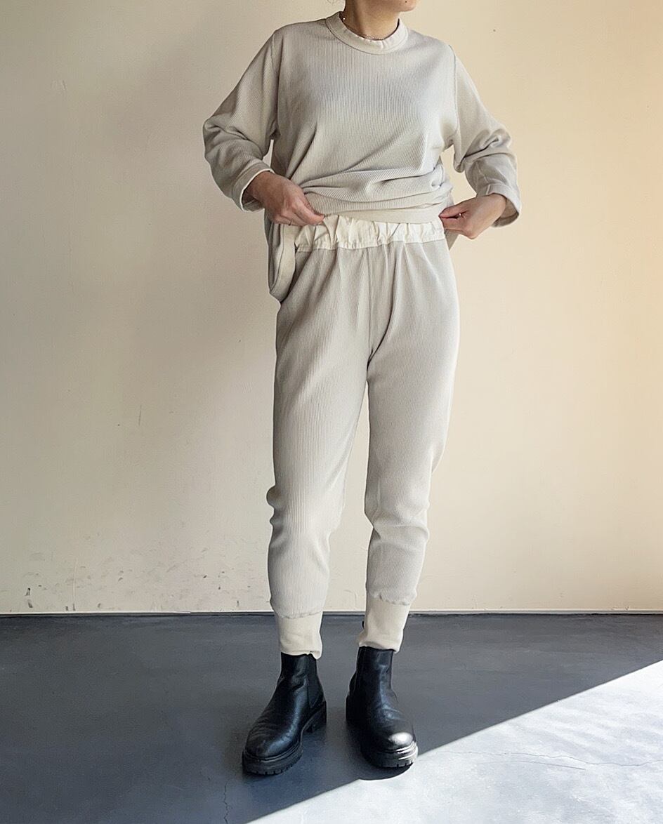 Firmum 20s cotton & polyester waffle knit rib pants