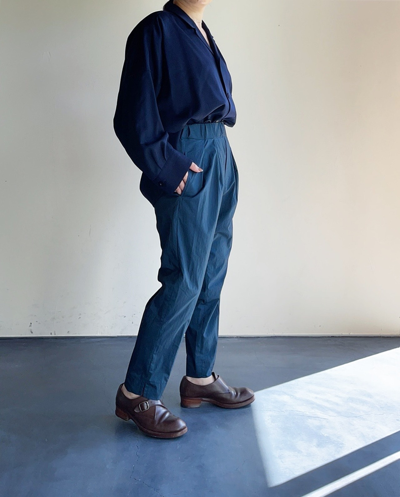 ウエストゴムでイージーですが、美しいシルエットと光沢感でとても綺麗に履いていただけます。