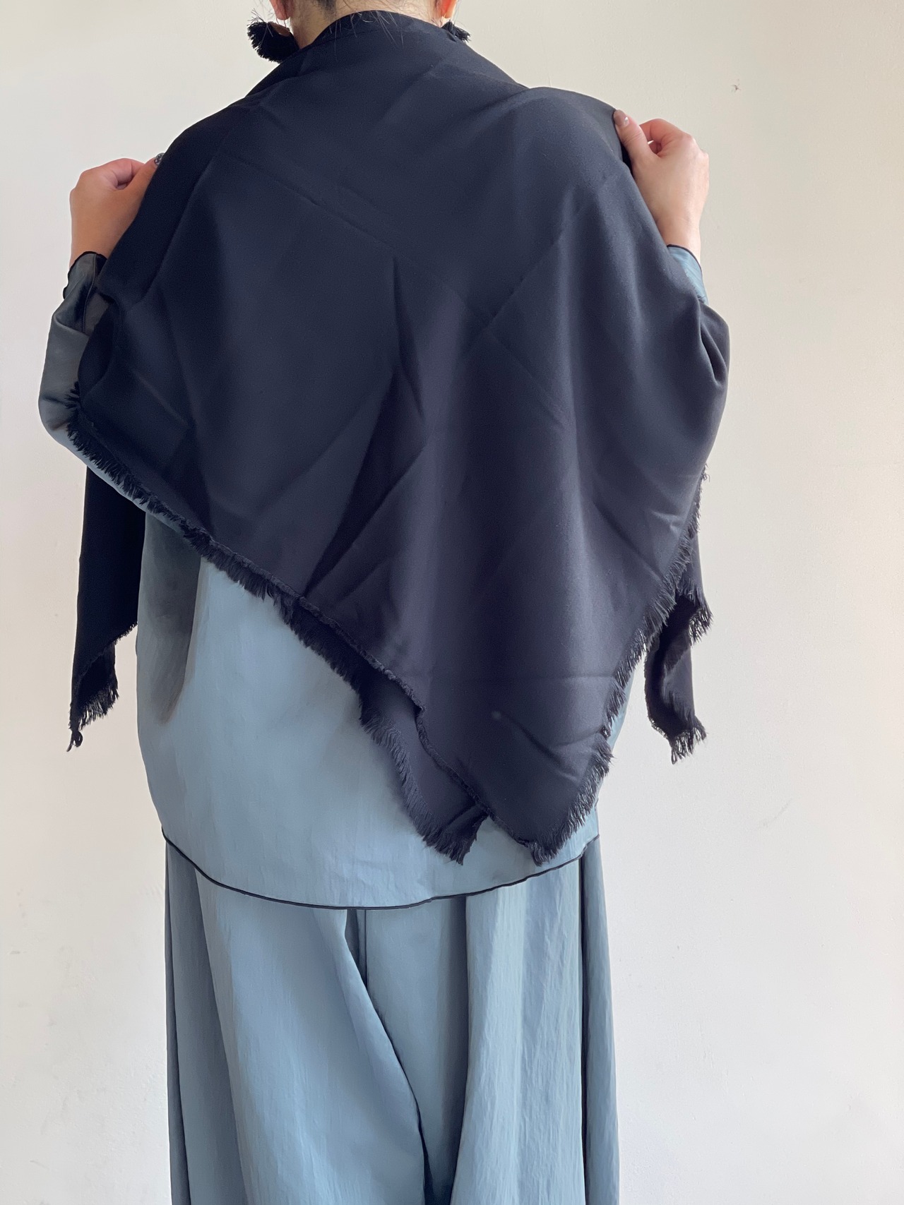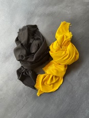 20/1のレーヨン100%の綾織ビエラの生地を整品染めしてコシを抜き、ドレープ性をもったふんわりとした柔らかなタッチに仕上げたストールです。