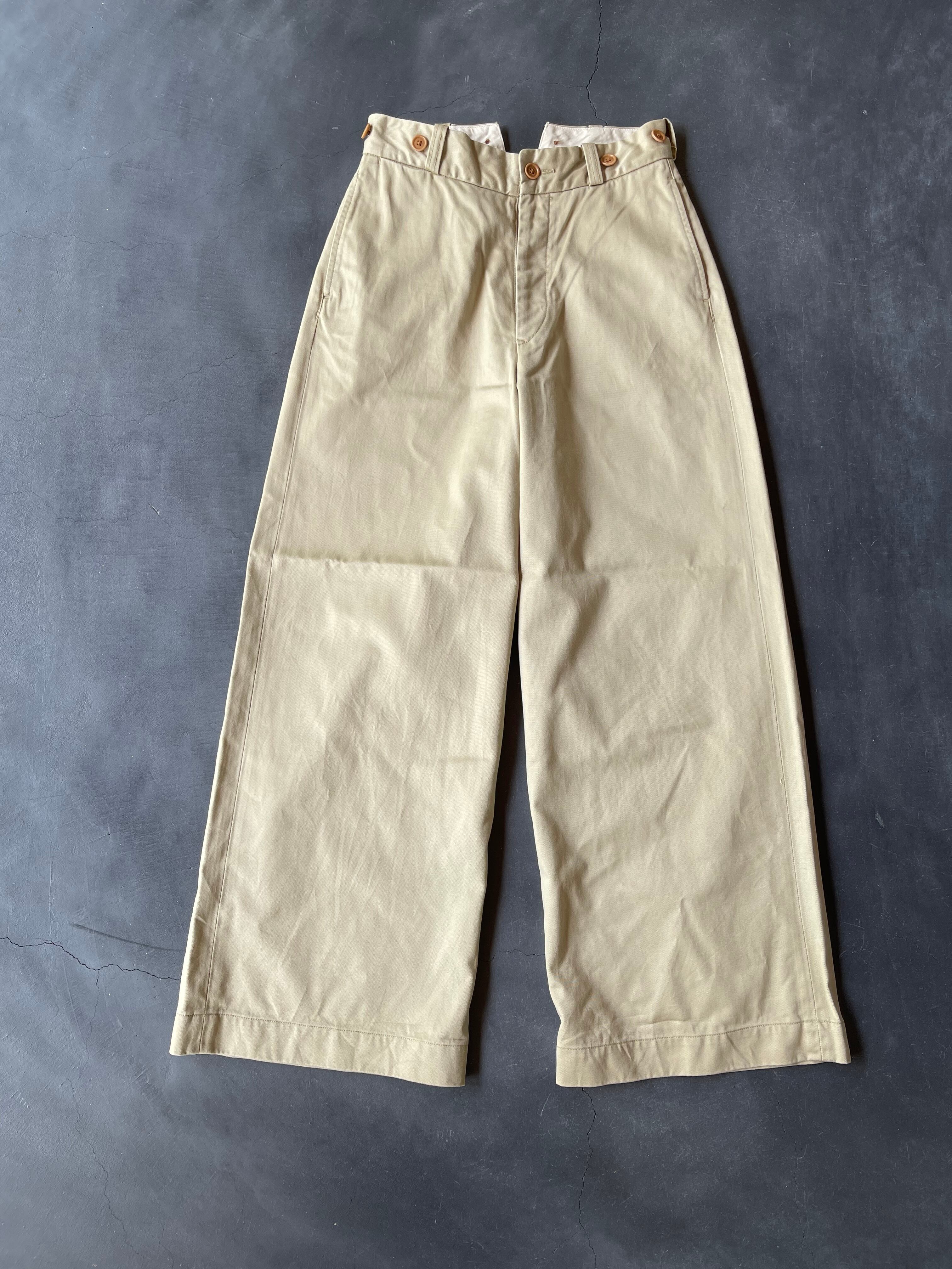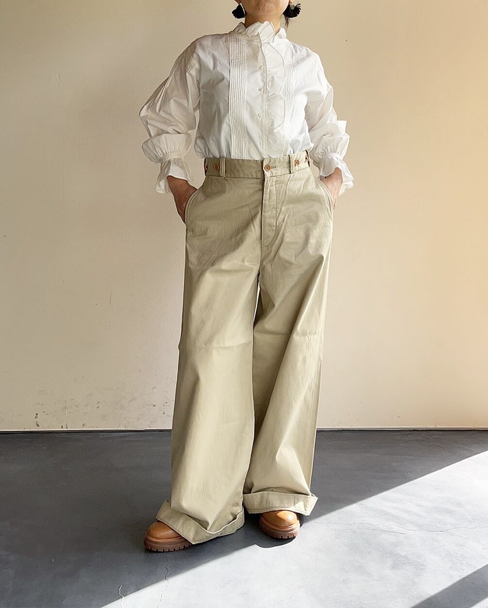 ゆったりとしたワイドシルエットですが、腰回りはもたつきのない洗練された、定番ワイドチノパンツです。