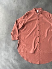 経糸にテンセル糸、緯糸にポリエステル糸の高密平織(ポプリン)で、もみ洗いの加工を施してテンセルをフィブリル化させ、マットでパウダリーな、タッチを出した生地です。緯糸にポリエステル糸を使用している為、シワになりにくい素材です。