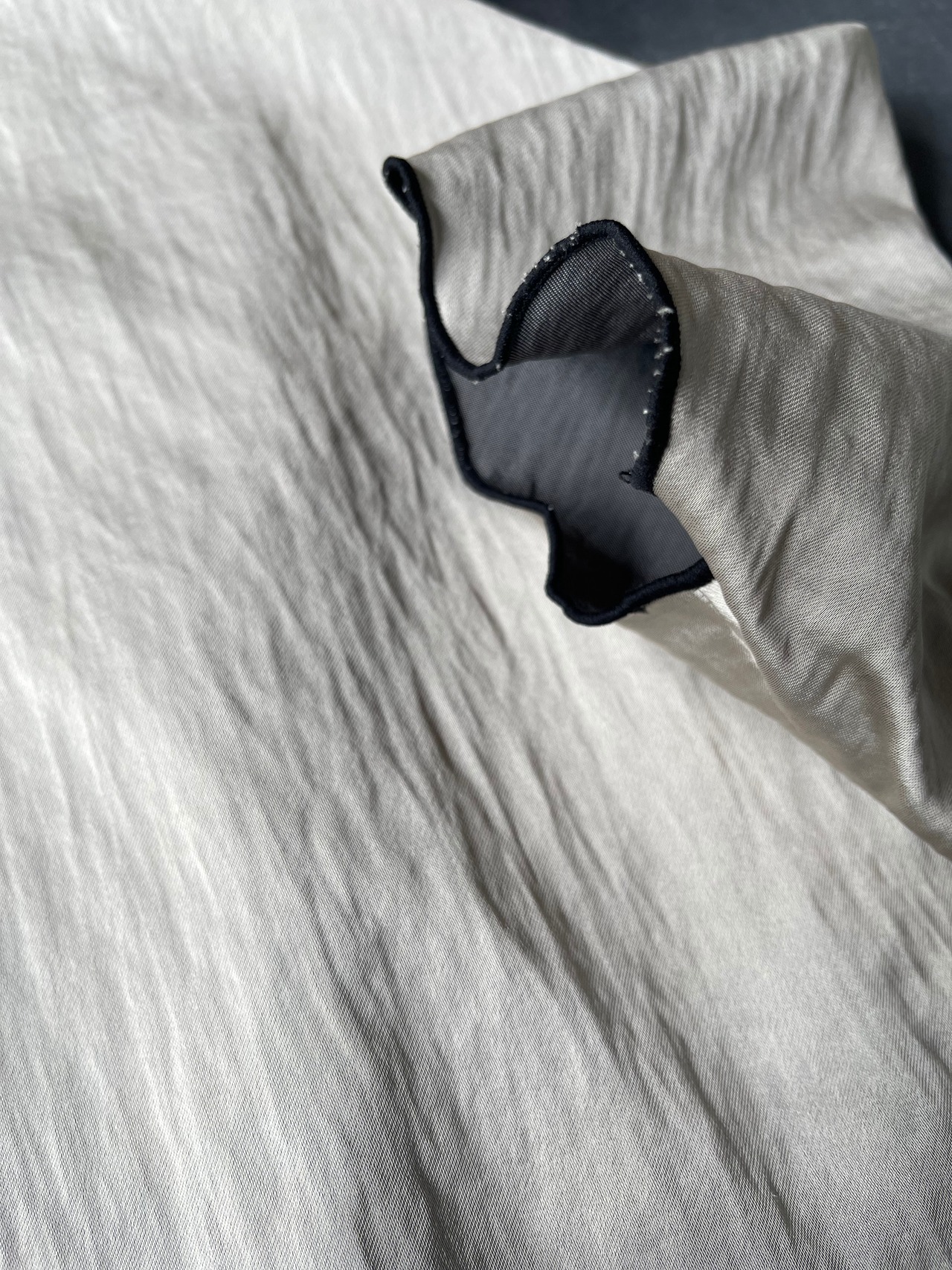 ビスコースの光沢感とナイロンの皺感が合わさったハイブリッドな風合いでありながら、ナチュラルな雰囲気を持ち合わせた生地感です。