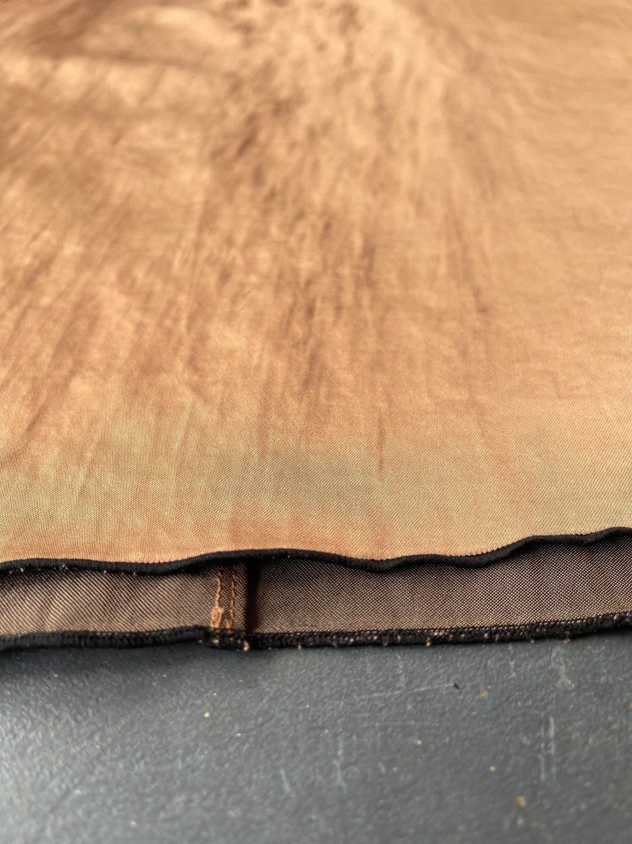 ウッドパルプ100%の原料を使用したビスコースを経糸に、140Dのナイロンの双糸でしっかりしたサテンに織り上げた生地です。