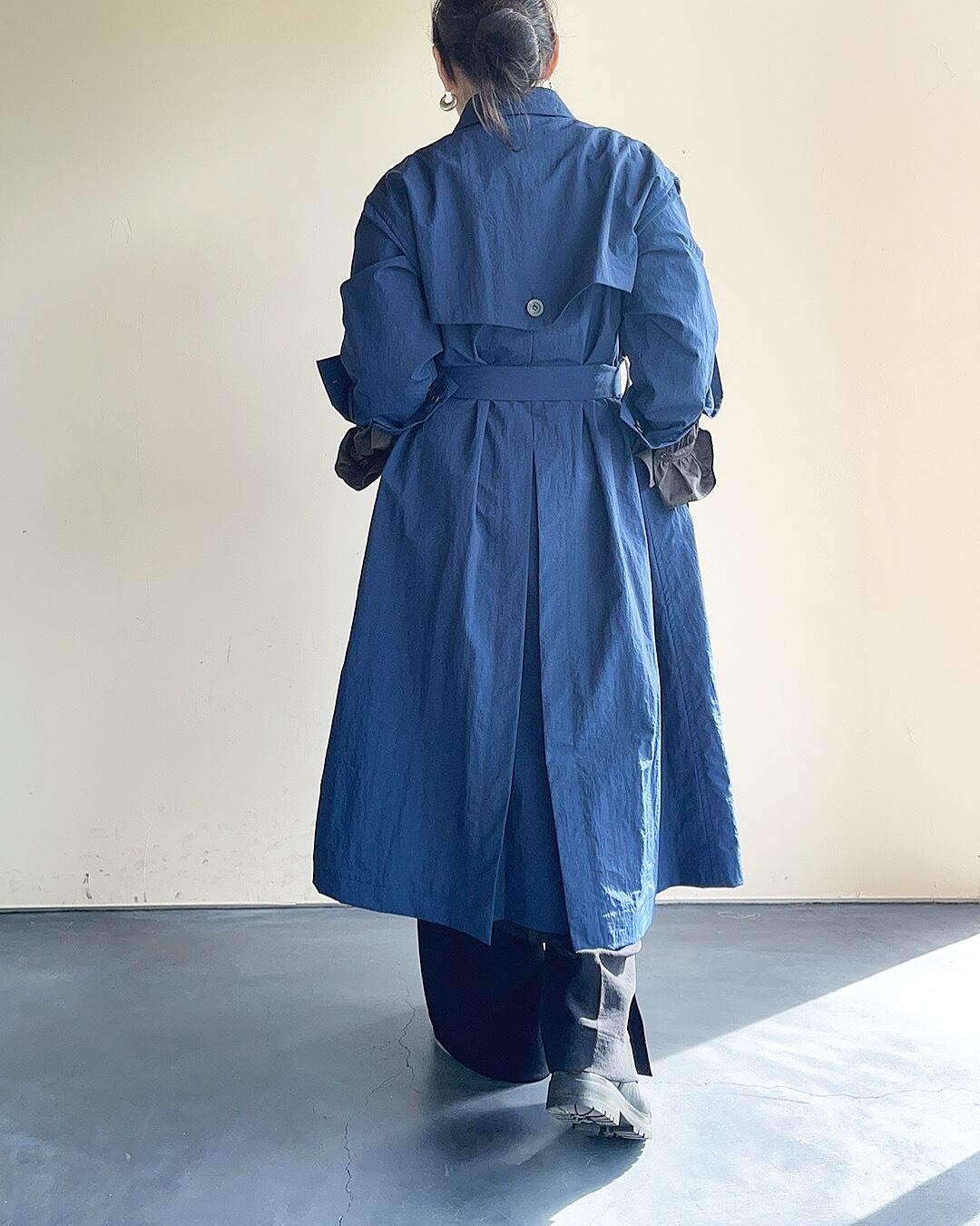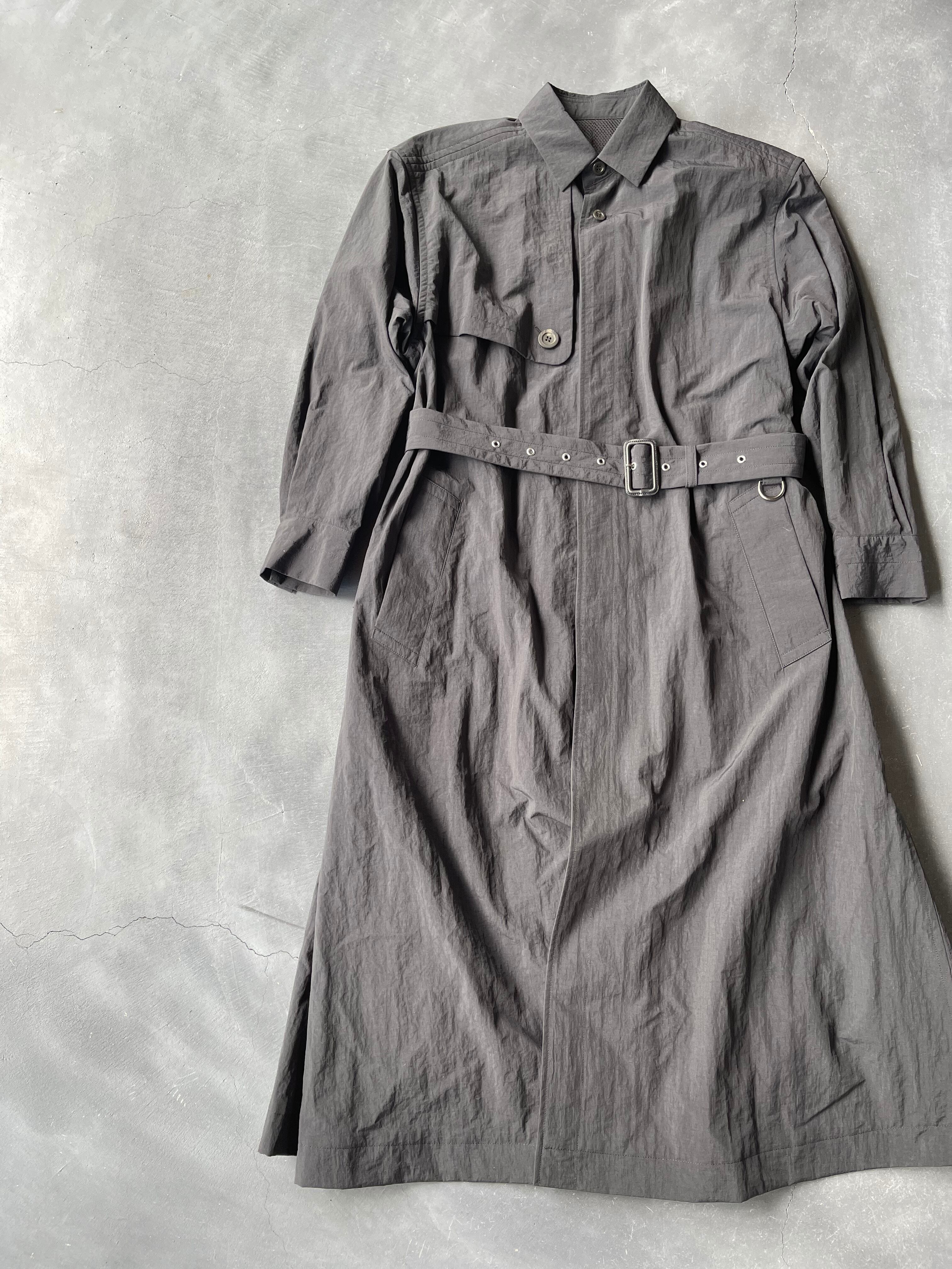 撥水ナイロンリップストックのトレンチコート。