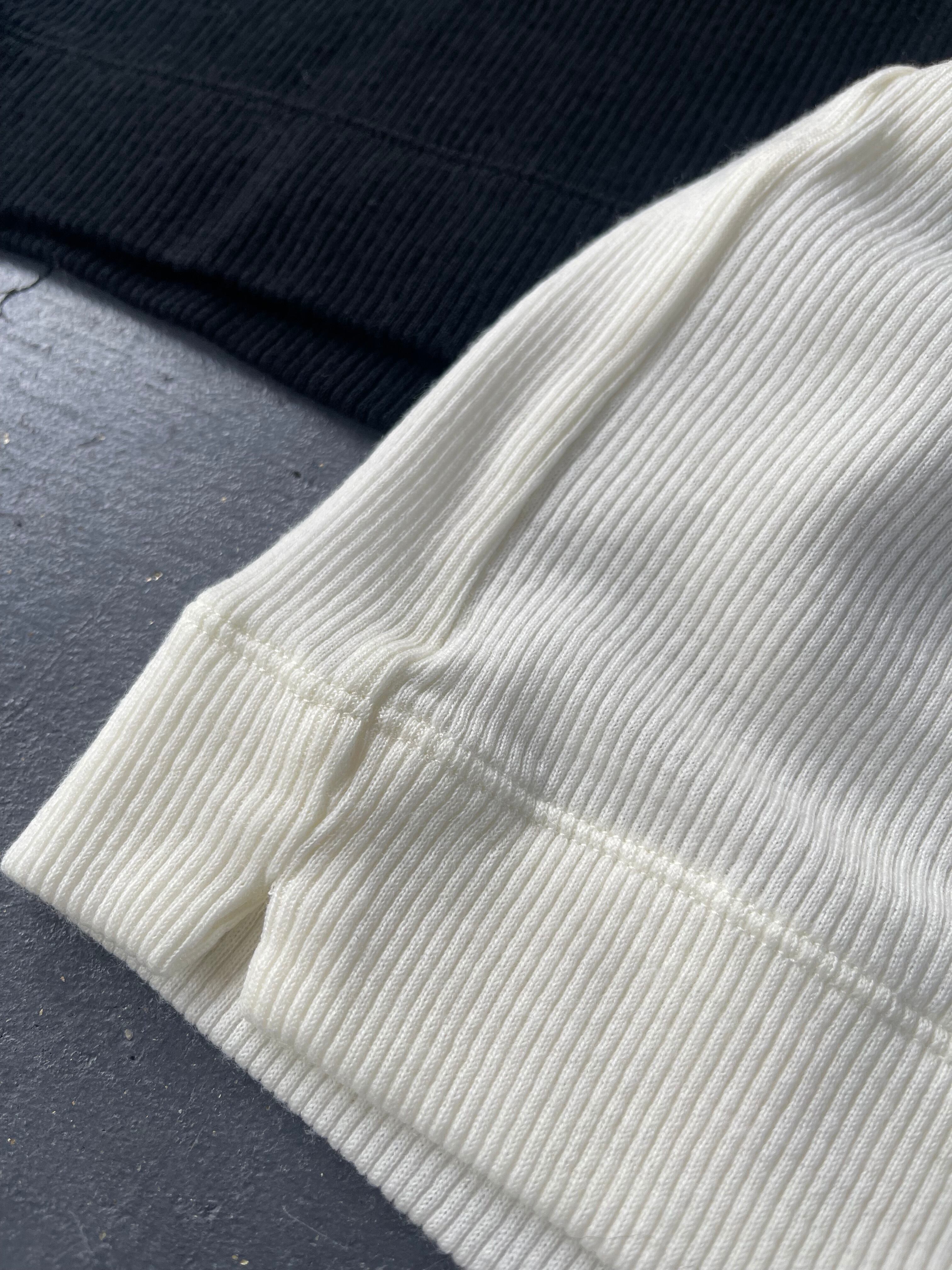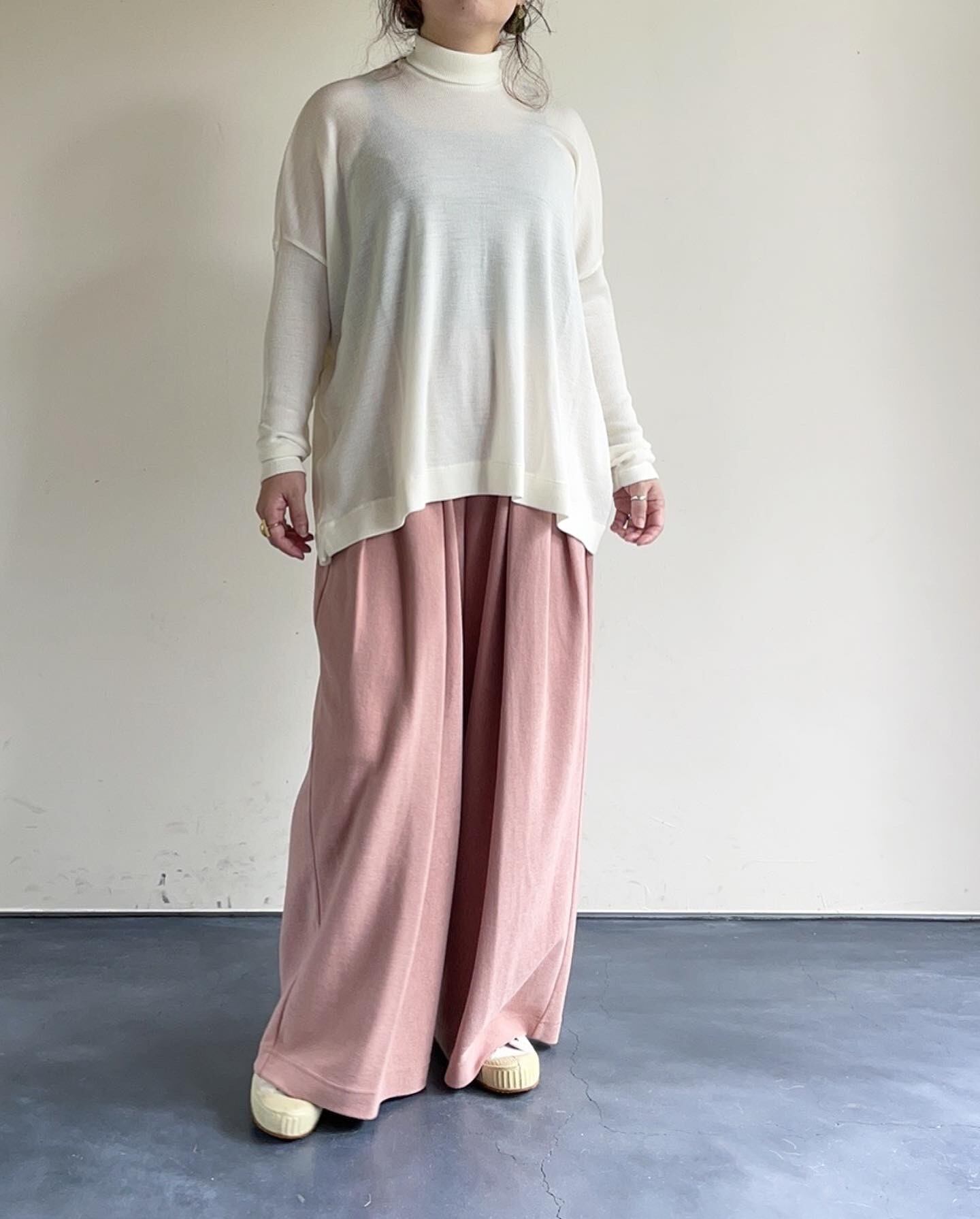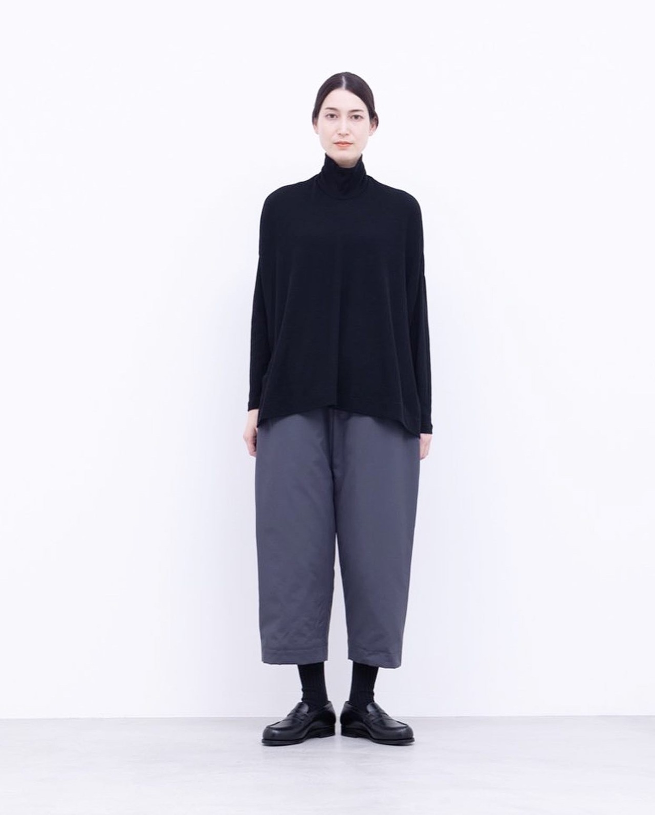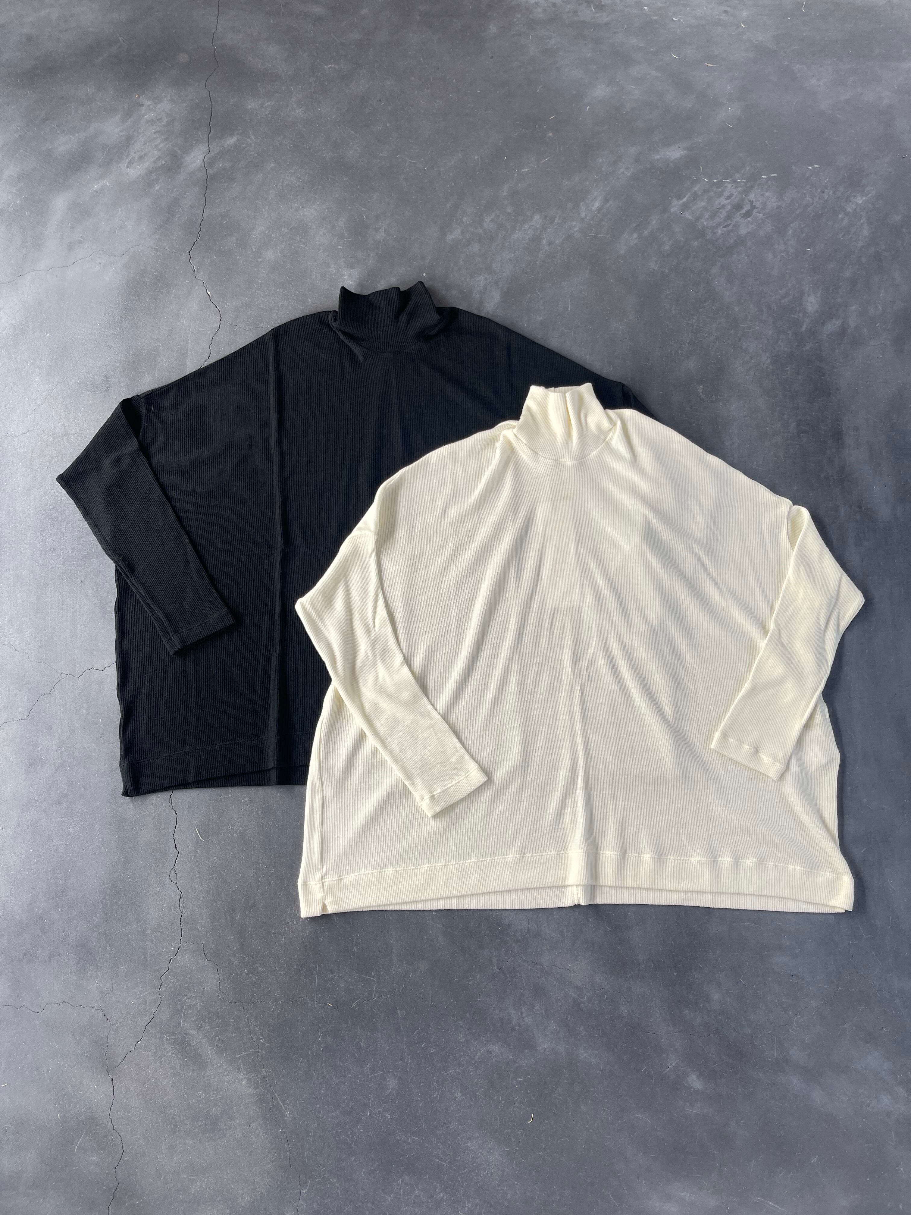 細番手の72番双糸の梳毛で編まれたテレコのタートルネック。