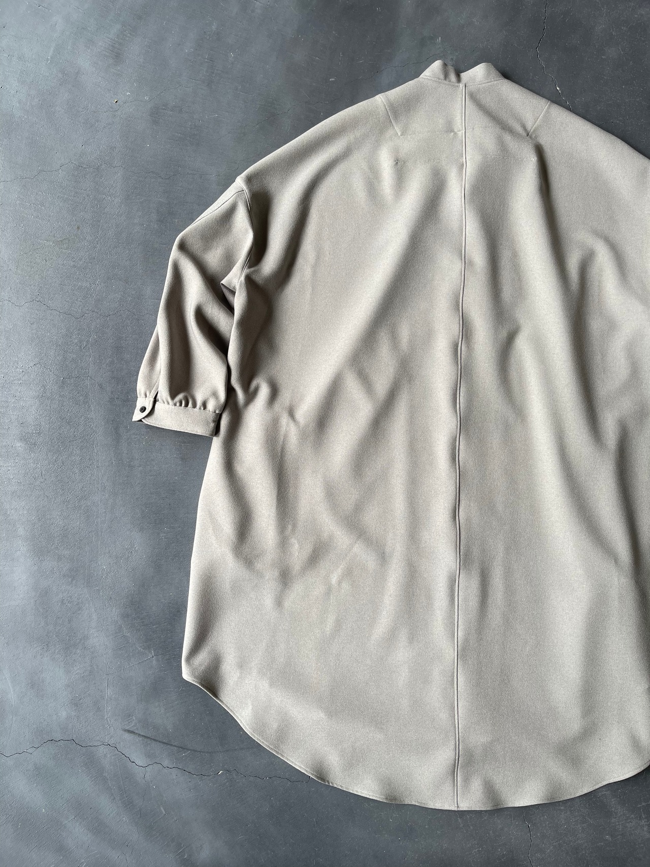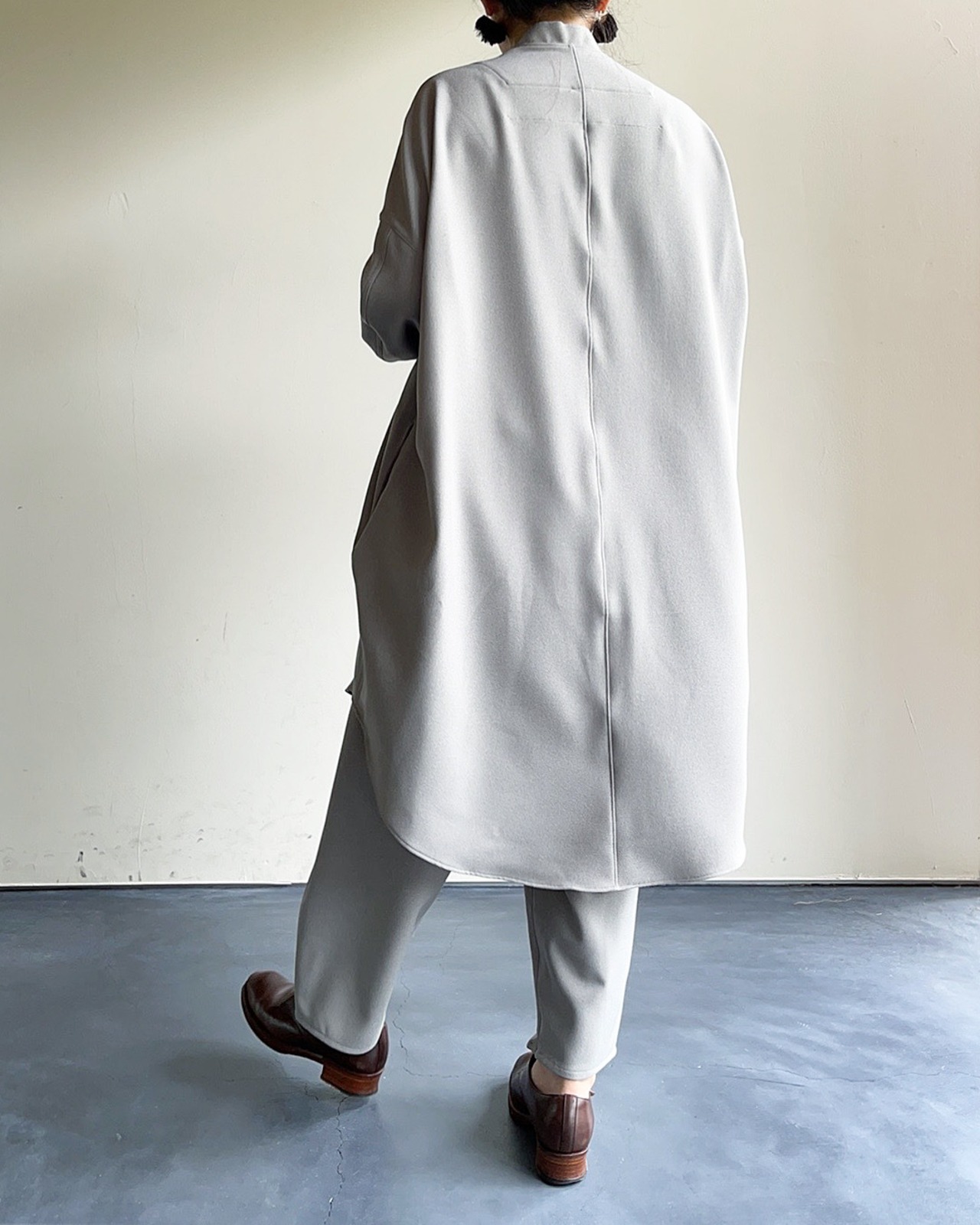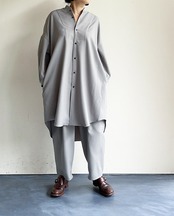 やや太番手の糸で織ったアムンゼン(梨地)生地のロングシャツ。