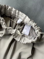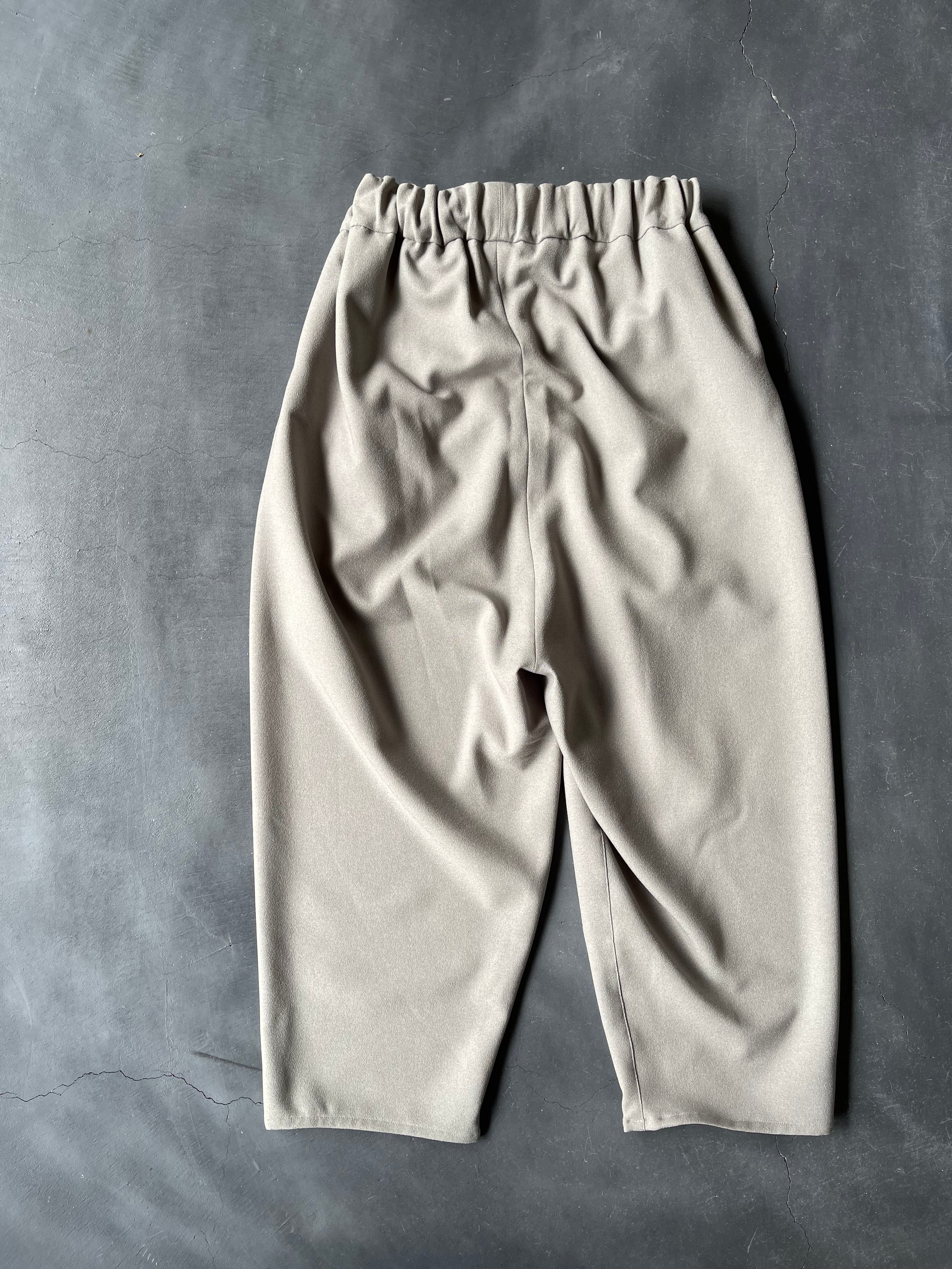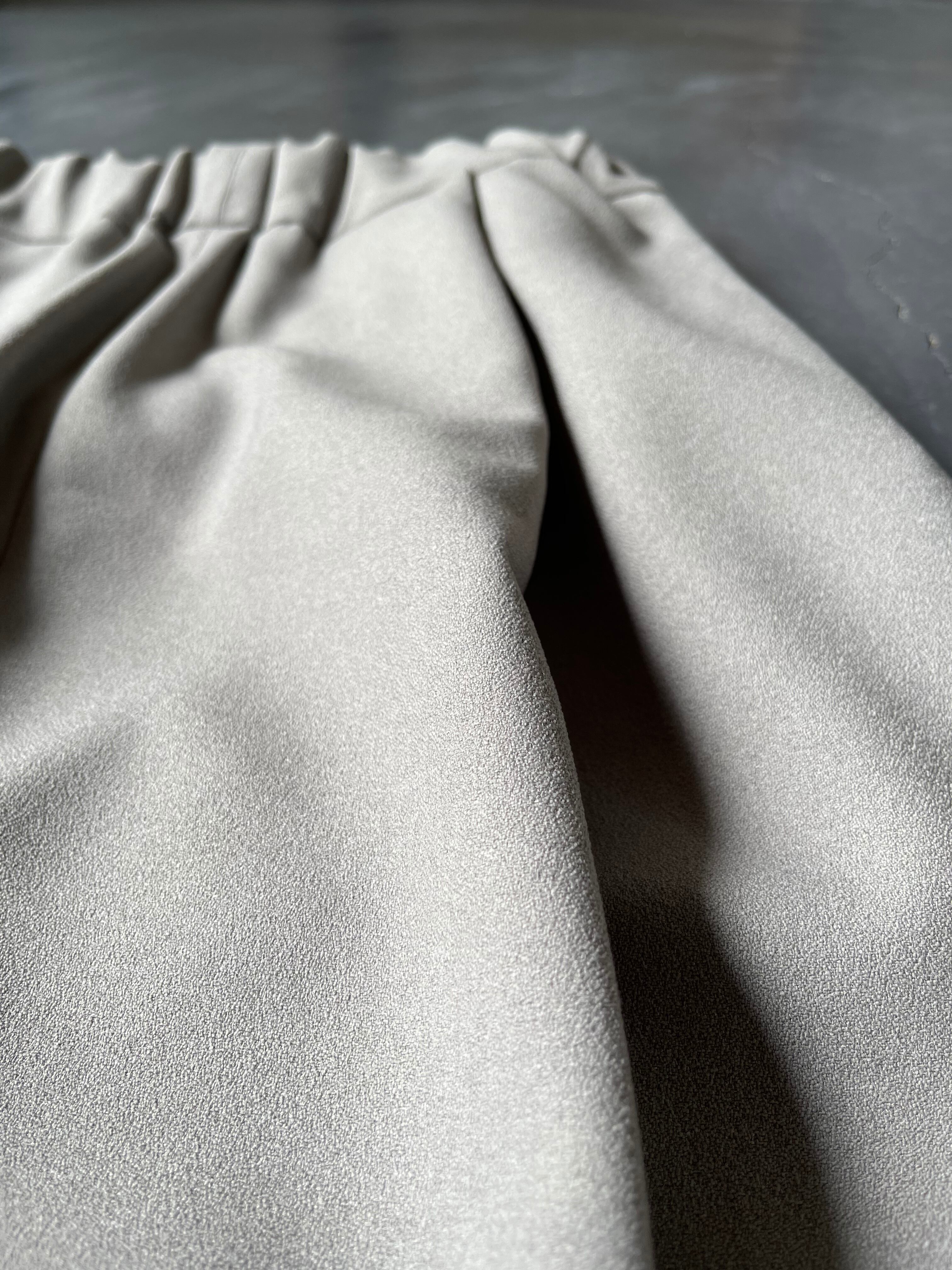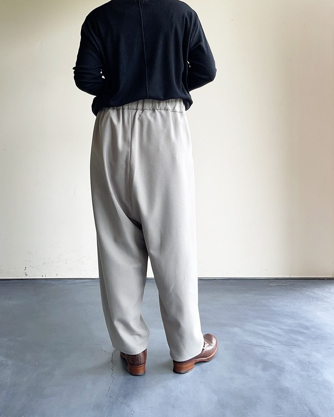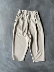 やや太番手の糸で織ったアムンゼン(梨地)生地のサルエルパンツ。
