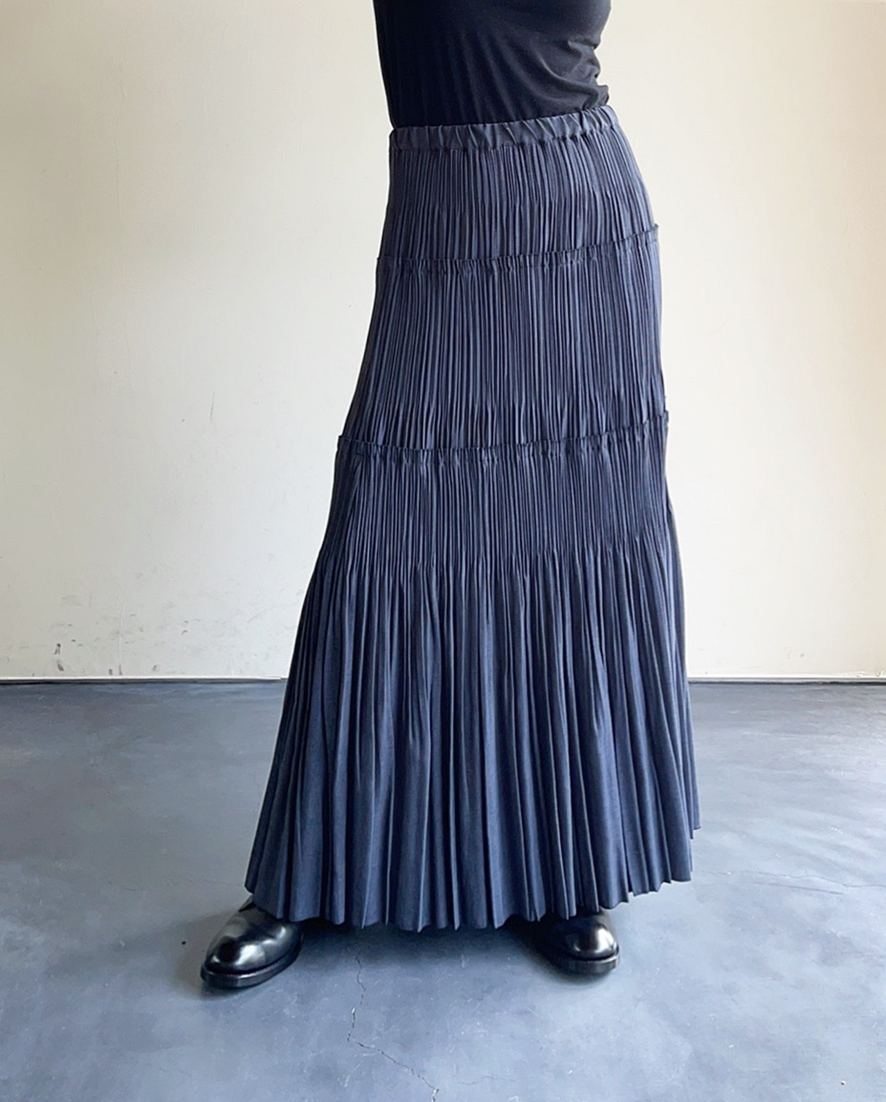 山岳民族服をイメージした、細かいプリーツのティアードスカートです。