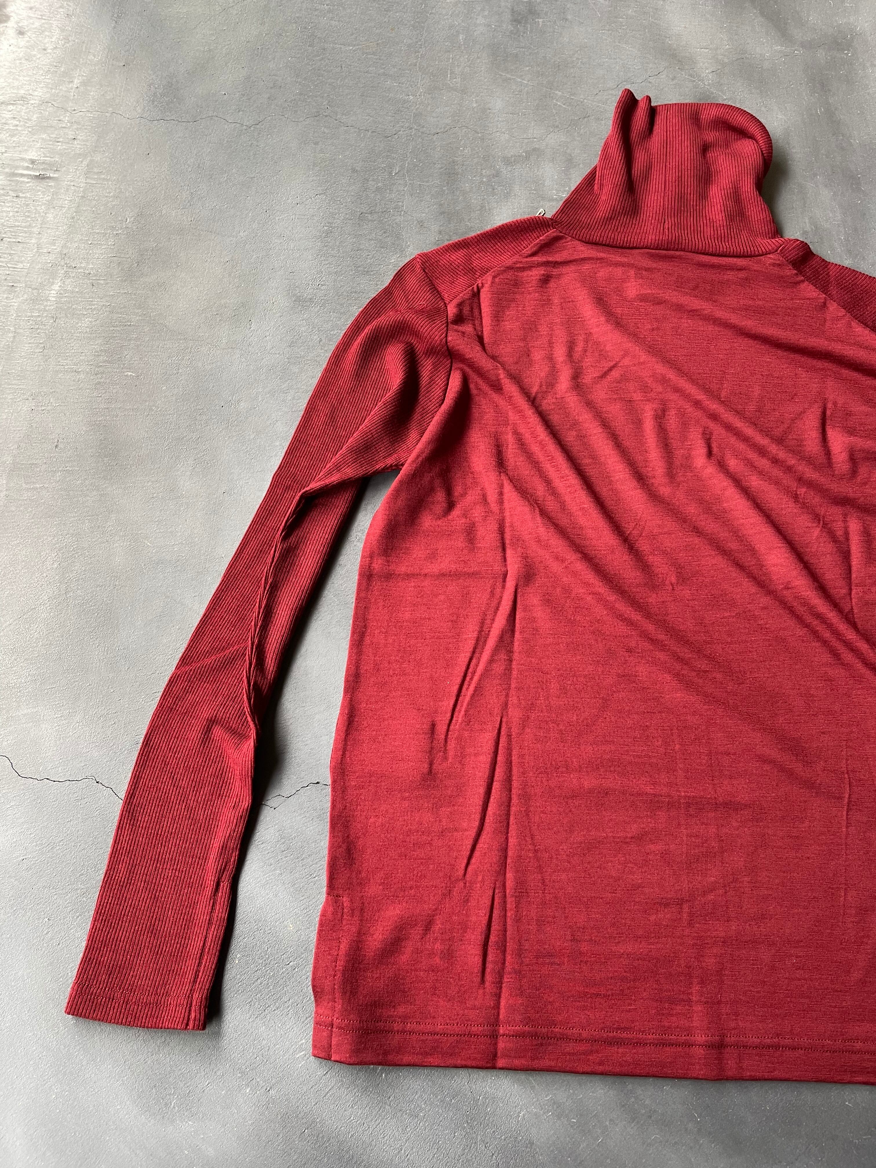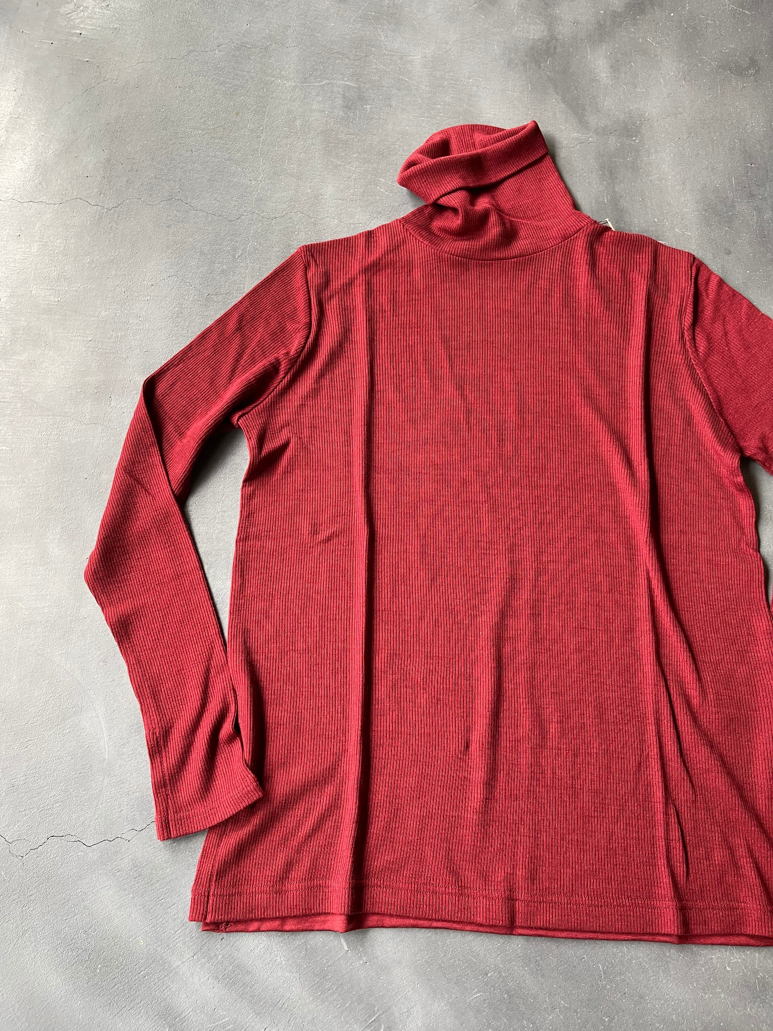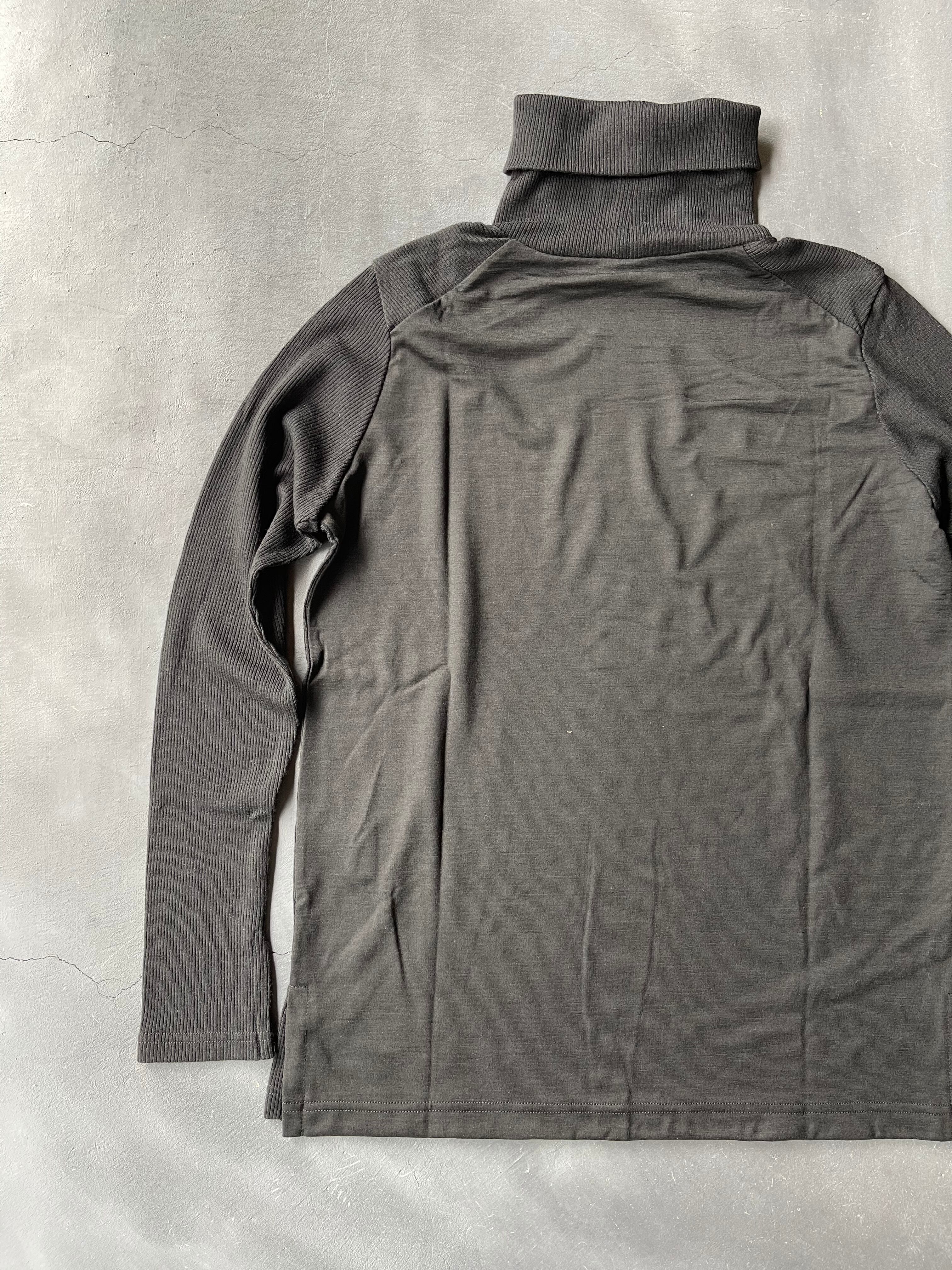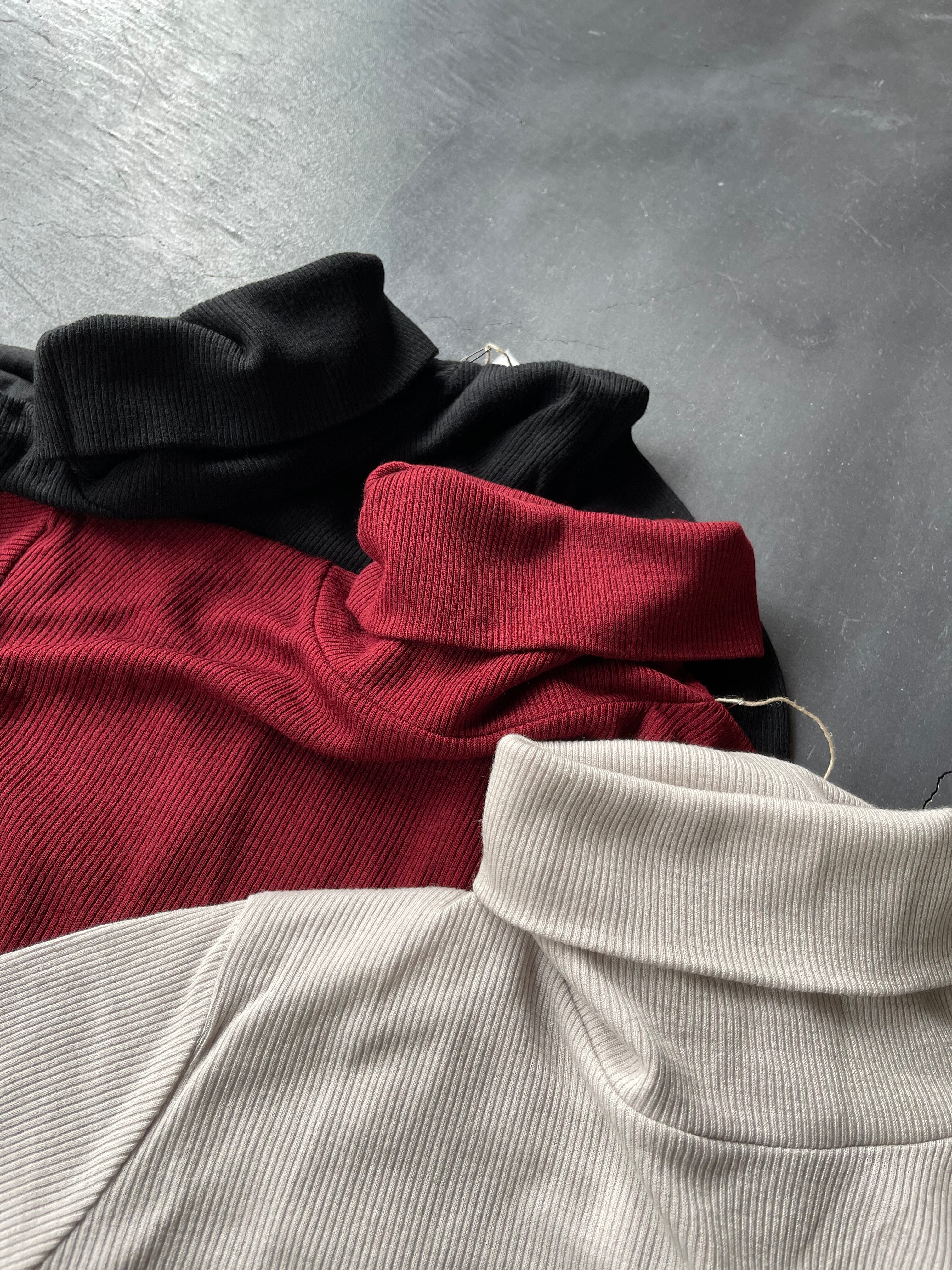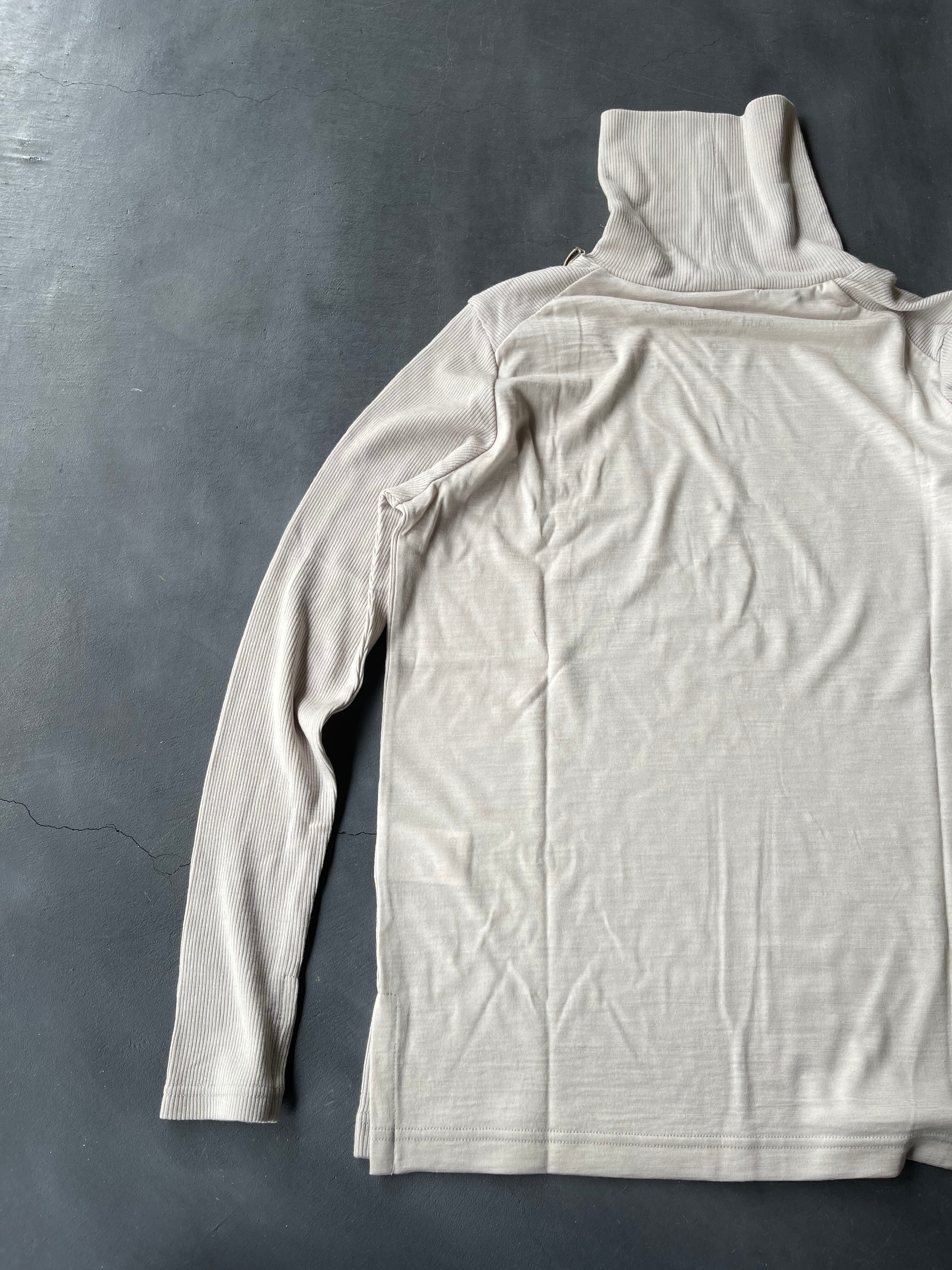 2/72細番手ウール糸で毛羽立ちなく、柔らかで膨らみのあるウール本来の良さを生かして編まれた肌触りの良いテレコ+天竺2種の編み地を組み合わせてデザインされた、モイスチャーな質感が醸し出す高級感が特徴のハイネックです。