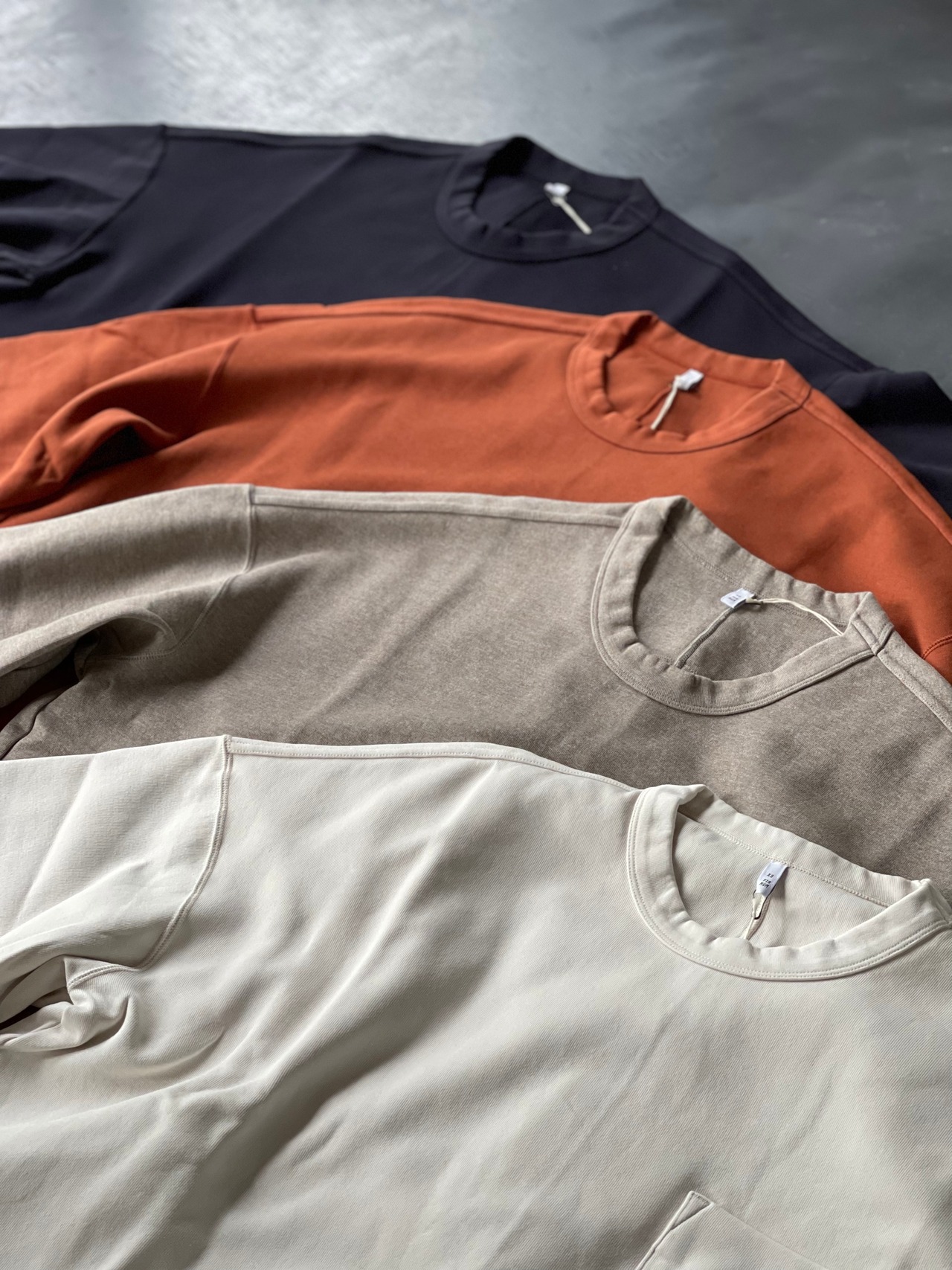 外観は裏毛のようですが、芯がしっかりしているのが特徴でカットソーでありながらしっかり形が出る素材です。