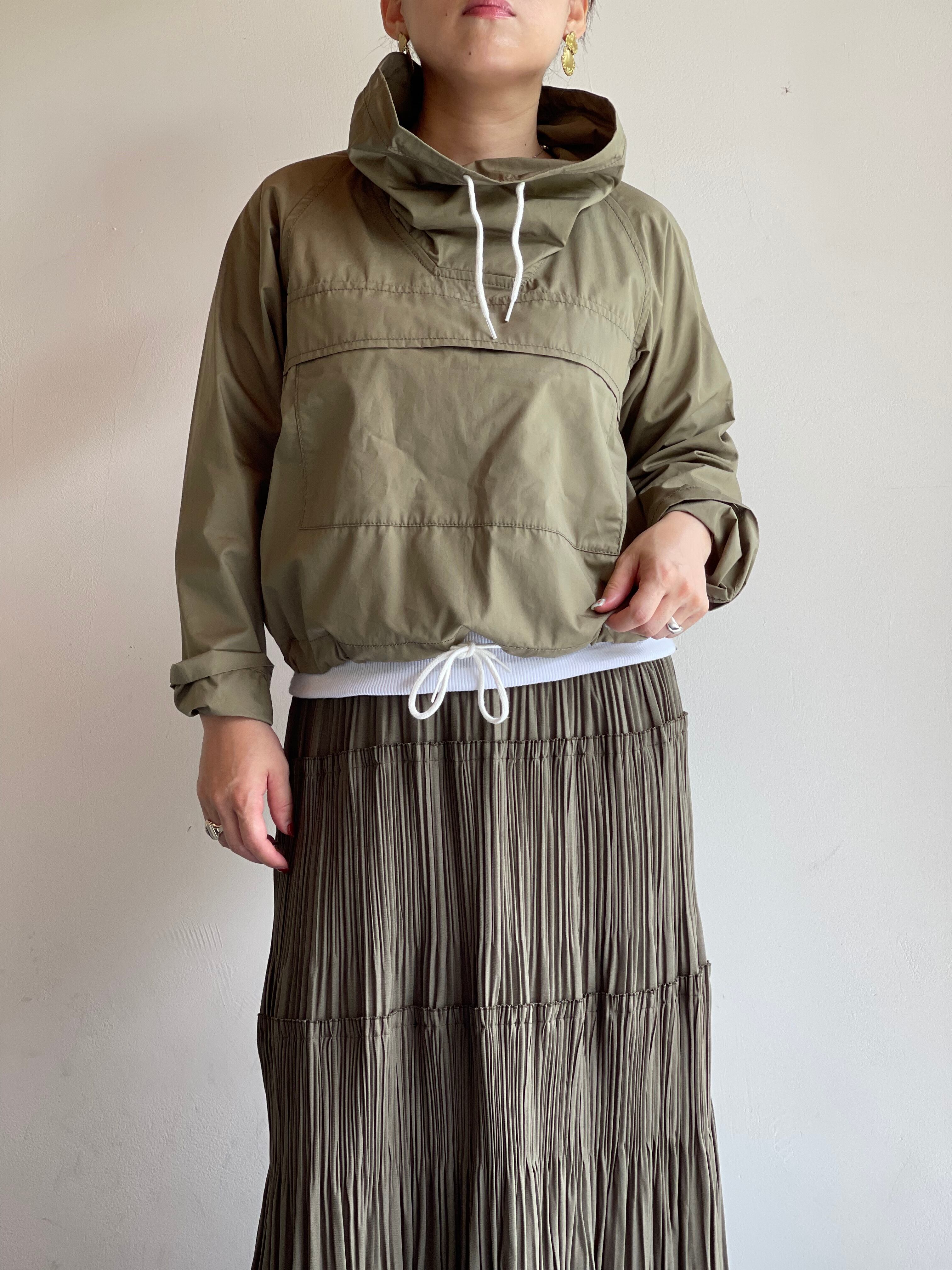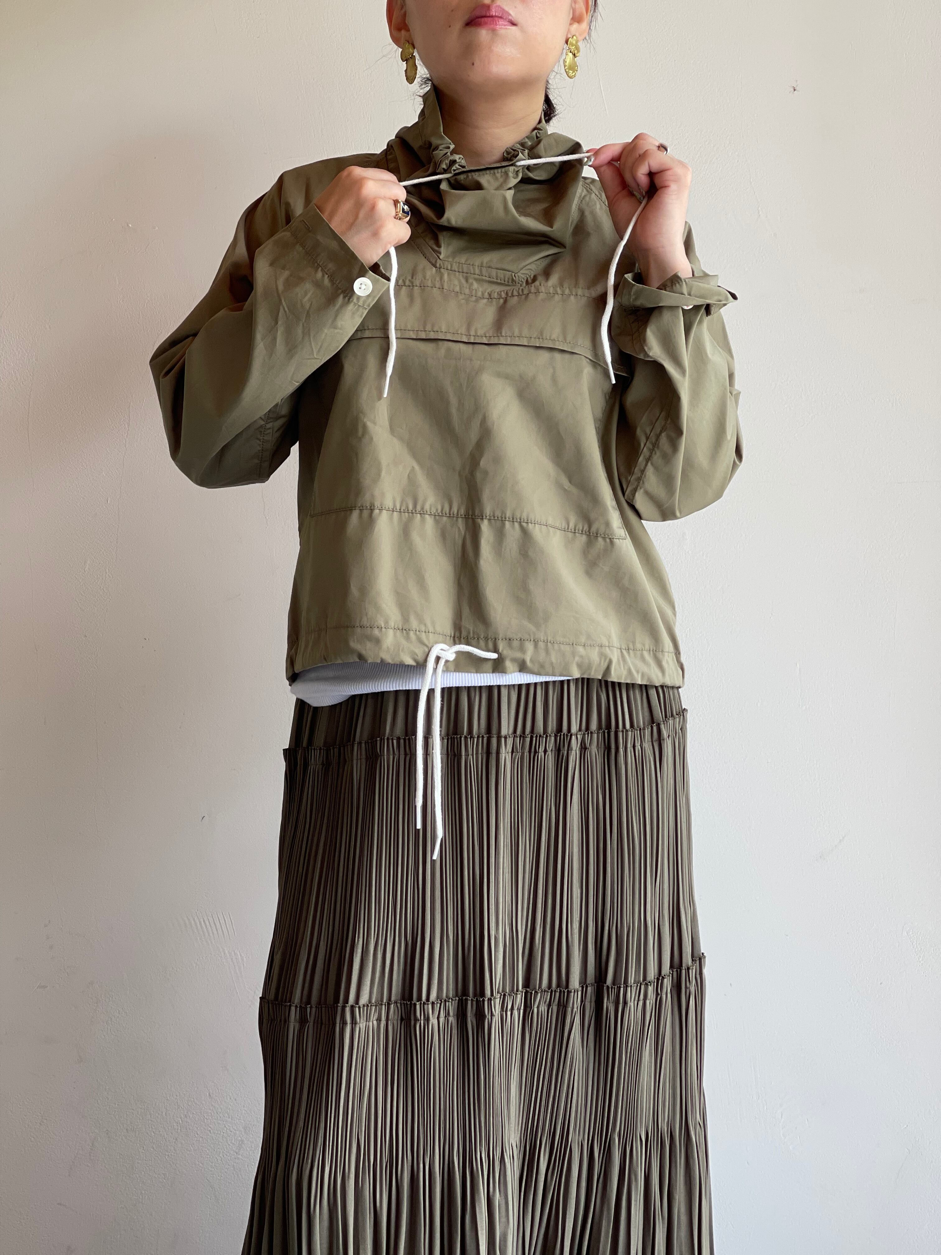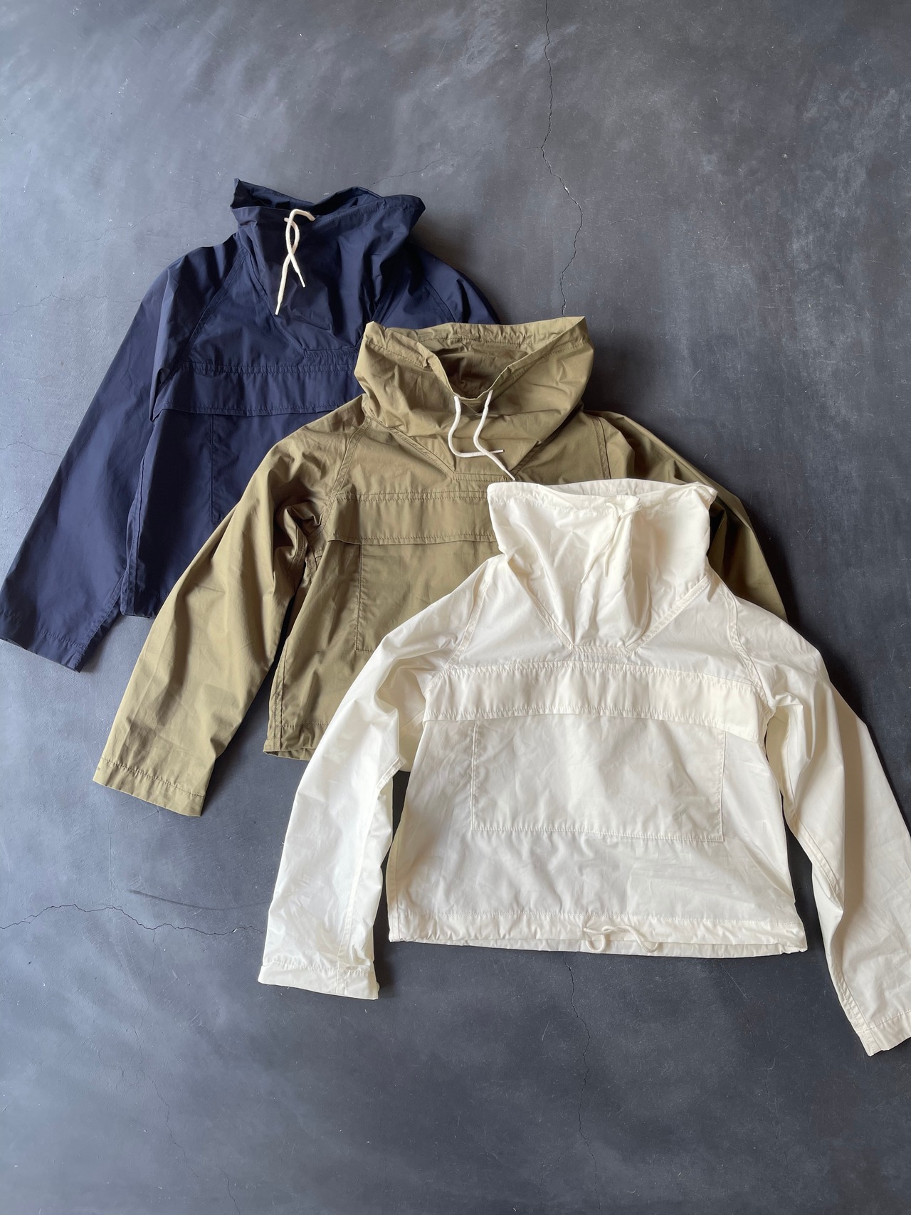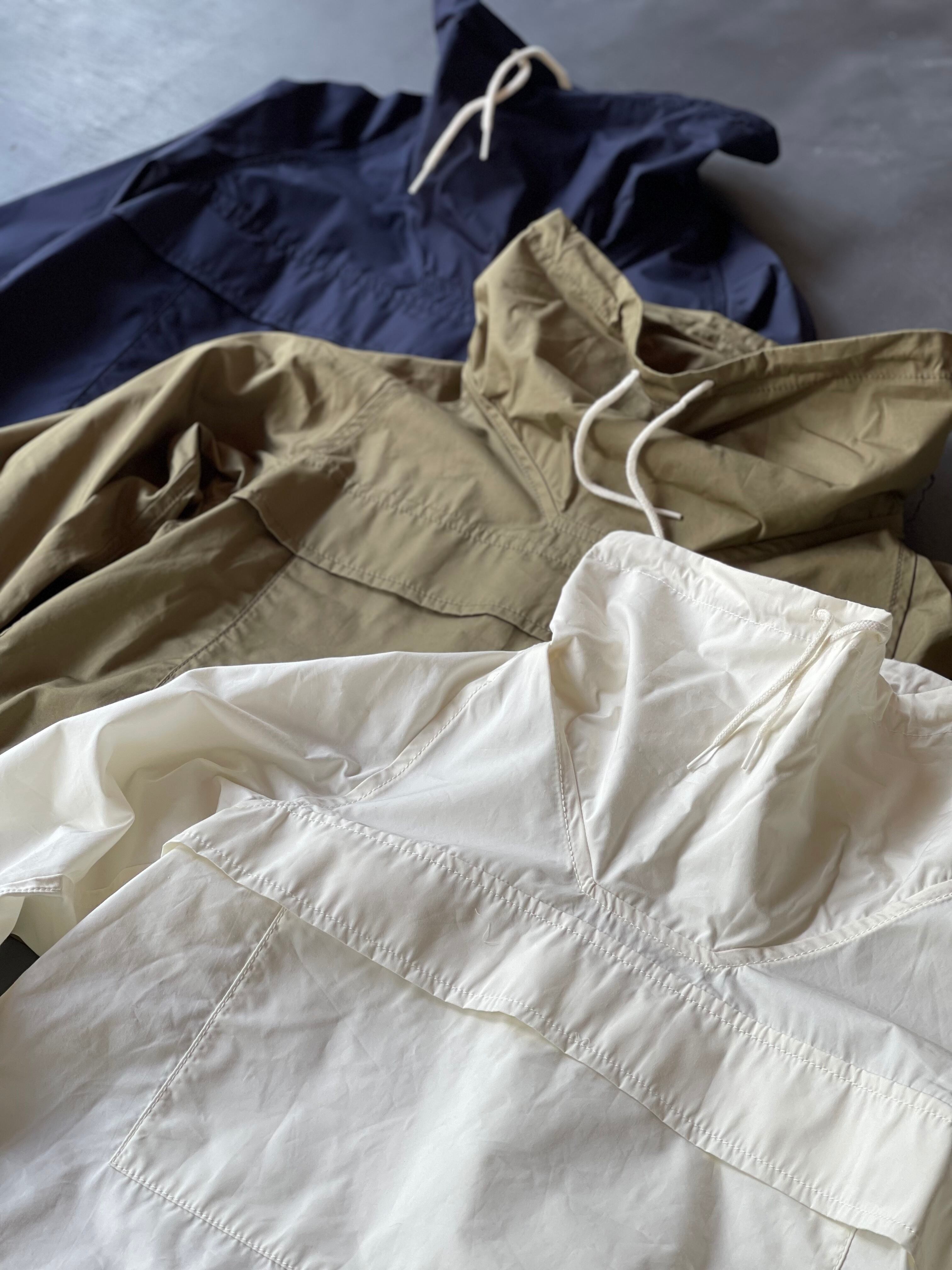 コットンタイプライター使用し、ネパールのシェルパが着用していた、マウンテンスモックをシャツにアレンジ。コンパクトなシルエットなので、インナーにコーディネイトでき新鮮です。