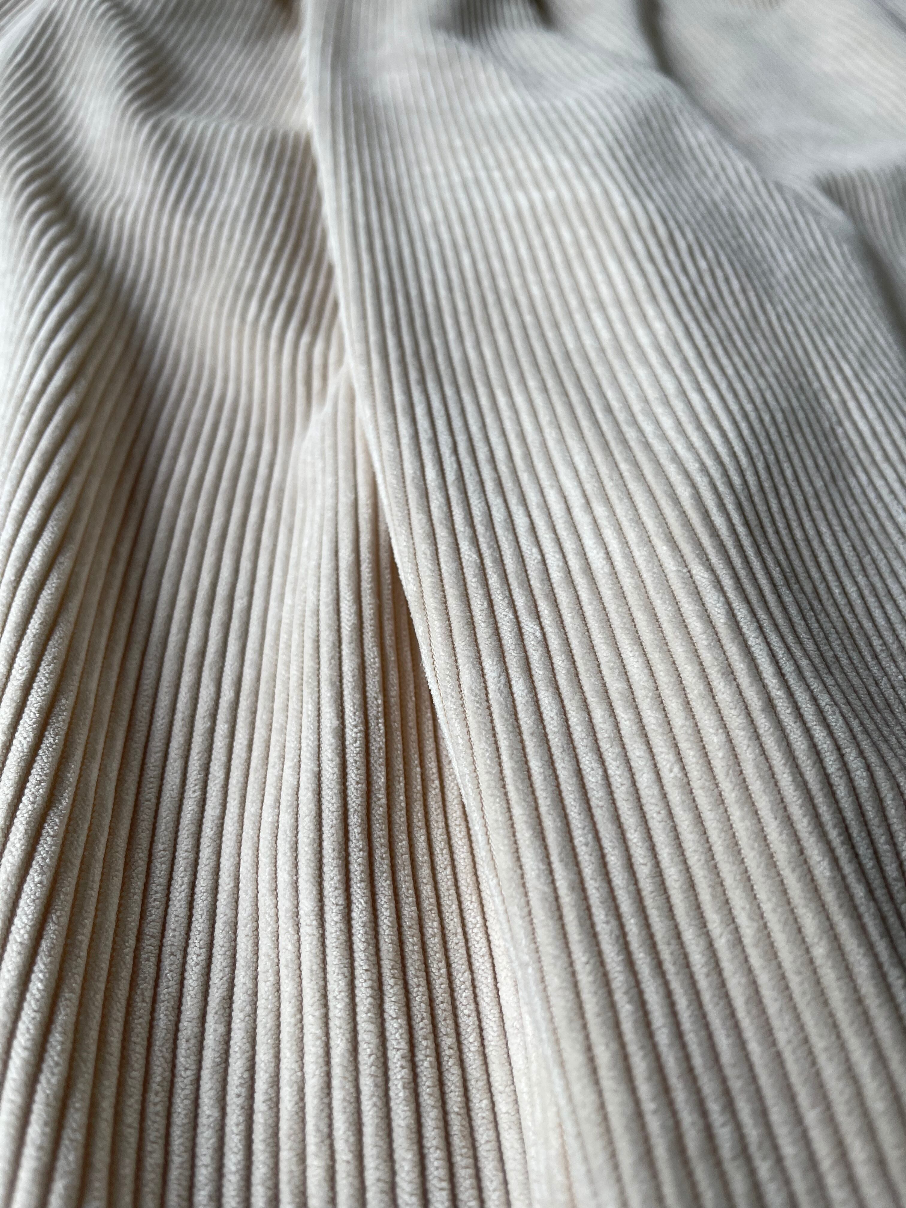 綿のコーデュロイに比べると腰がなく柔らかく落ち感が有ります。
